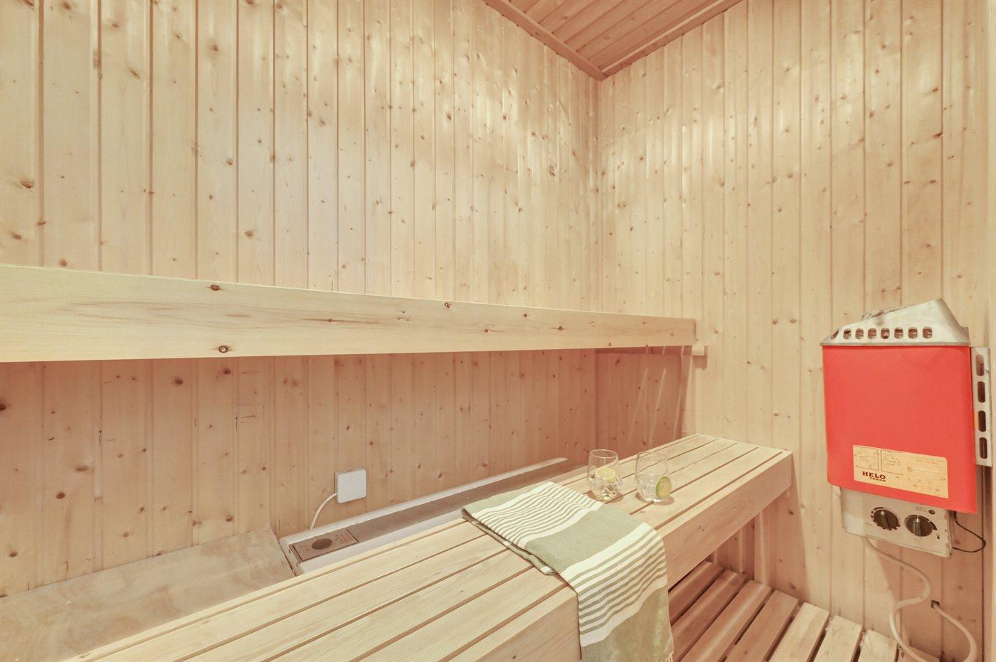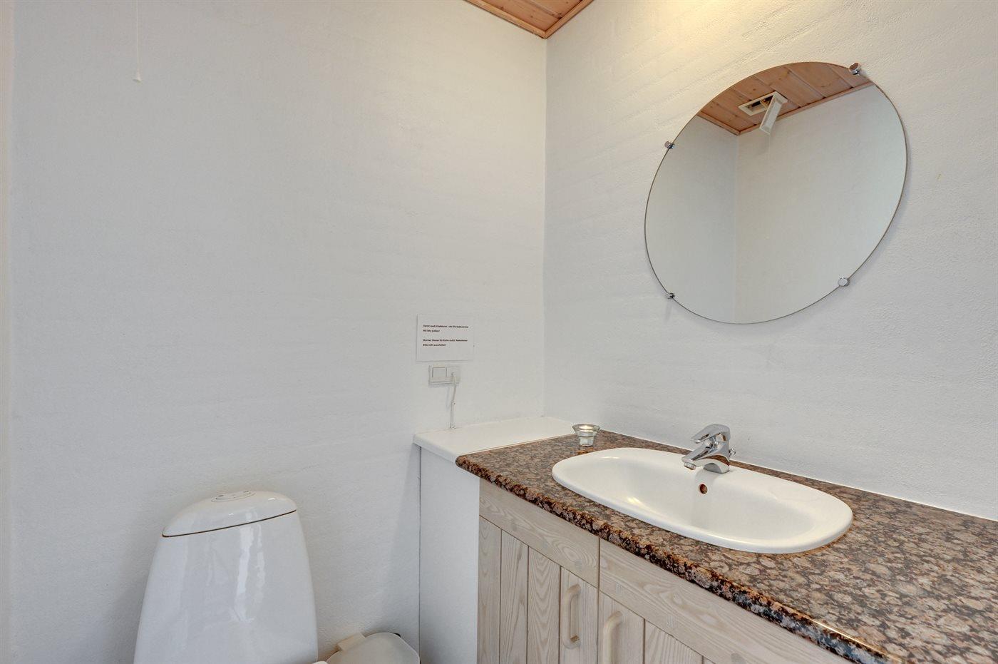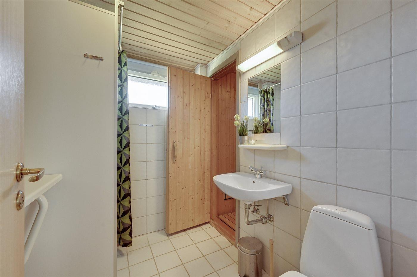 Der er 2 badeværelser med bruseniche og 3 toiletter, heraf 1 gæstetoilet. Der er gulvvarme på 2 badeværelser. I saunaen er der mulighed for afslapning.