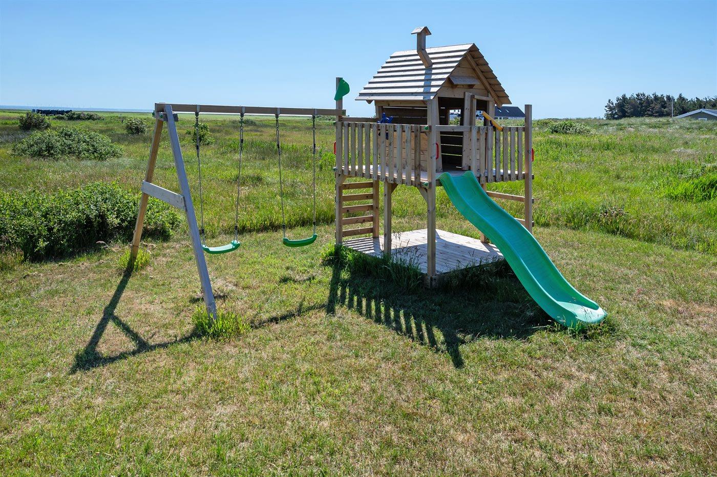 Ferieboligen er beliggende på en 2448 m² stor naturgrund. Der er 950 m til havet. Der er 300 m til fjorden. Nærmeste forretning er beliggende i en afstand af 500 m. Til ferieboligen hører 30 m² terrasseareal. Desuden er der 47 m² overdækket terrasse. Heraf i alt 47 m² lukket terrasse. Ligeledes er der adgang til udestue. Gynge. Sandkasse. Legetårn. Parkering ved ferieboligen.