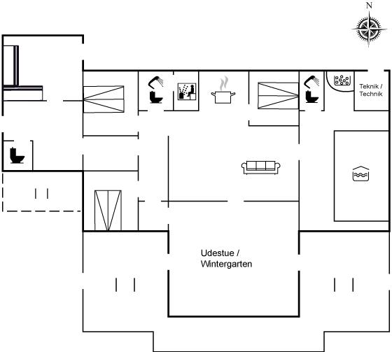I den indendørs swimmingpool er der mulighed for leg og hyggeligt samvær. Swimmingpoolen måler op til 3,7 m i bredden, 5 m i længden og den er op til 1,3 m dyb. Vandet er mellem 24 og 28° C varmt. Der er gulvvarme i swimmingpoolområdet.