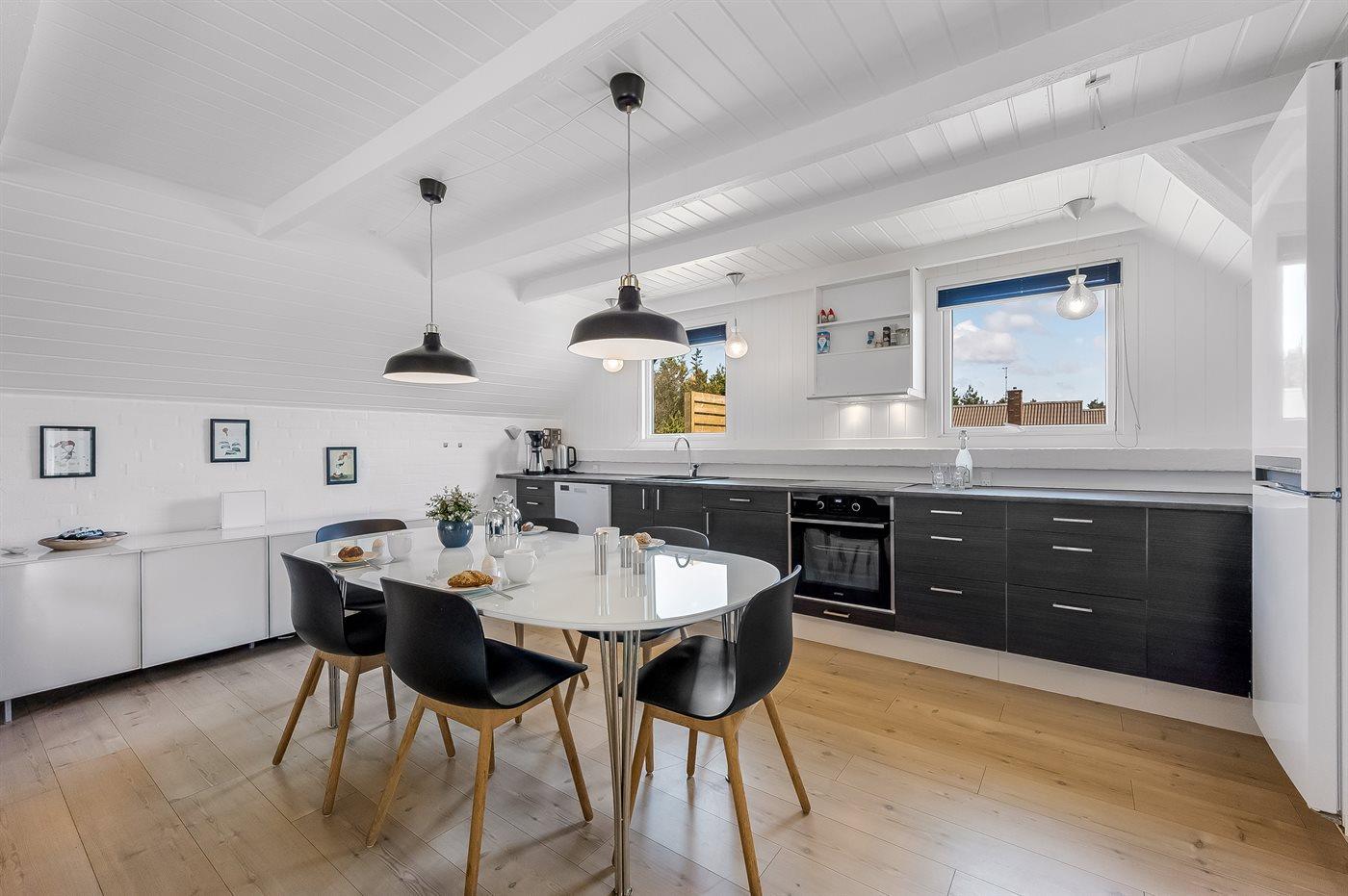 Køkkenet er udstyret med 1 køleskab. Der er 4 induktionskogeplader, varmluftovn samt opvaskemaskine.