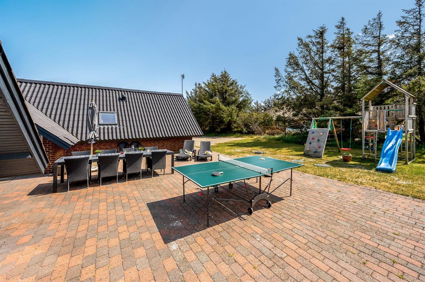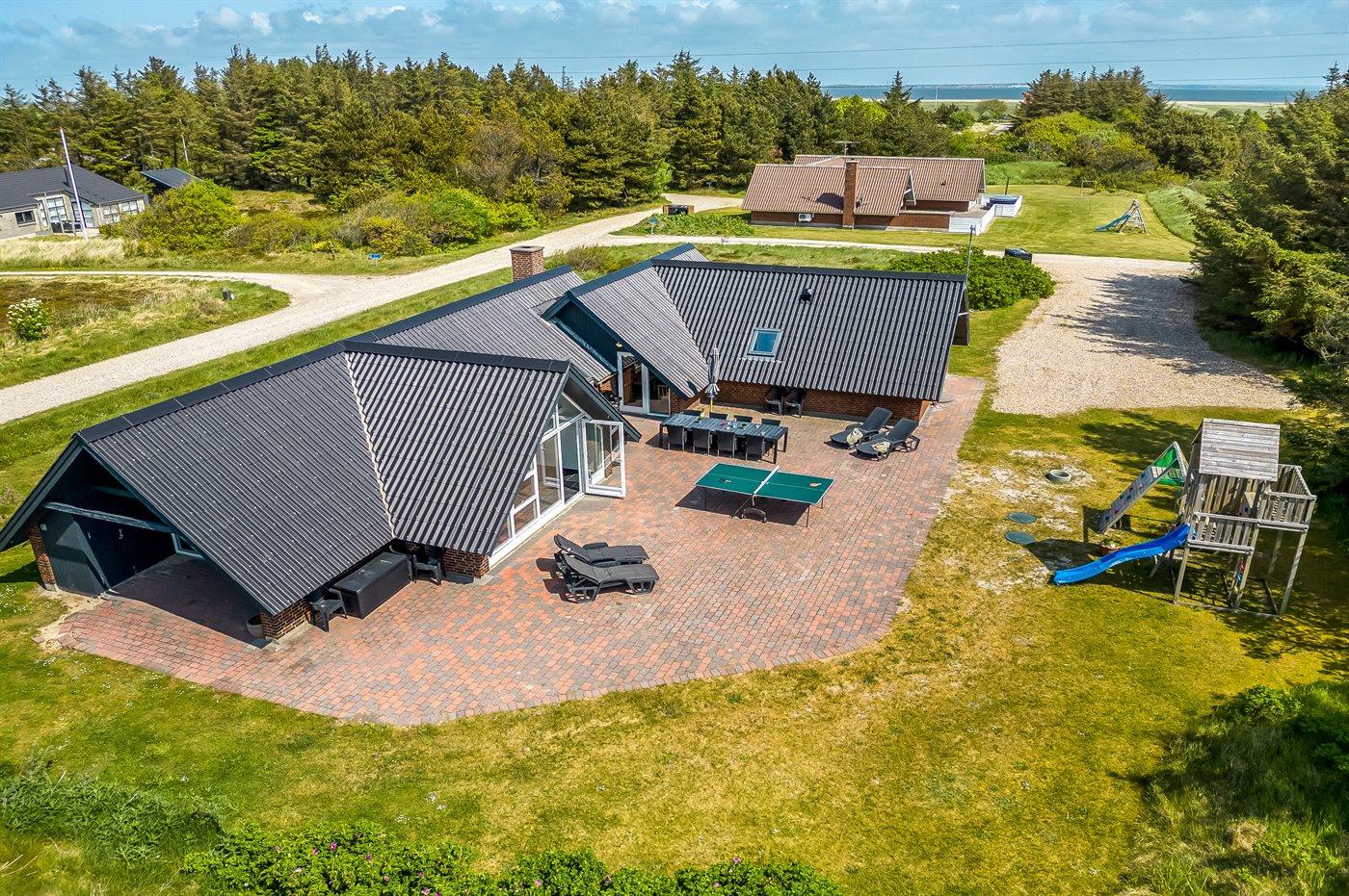 Ferieboligen er beliggende på en 2000 m² stor naturgrund. Der er 850 m til havet. Nærmeste forretning er beliggende i en afstand af 1000 m. Der er en golfbane i en afstand af 5000 m. Desuden er der 10 m² overdækket terrasse. Til ferieboligen hører åbent terrasseareal. Desuden er der overdækket terrasse. Gynge. Legetårn. Rutchebane. Parkering ved ferieboligen.
