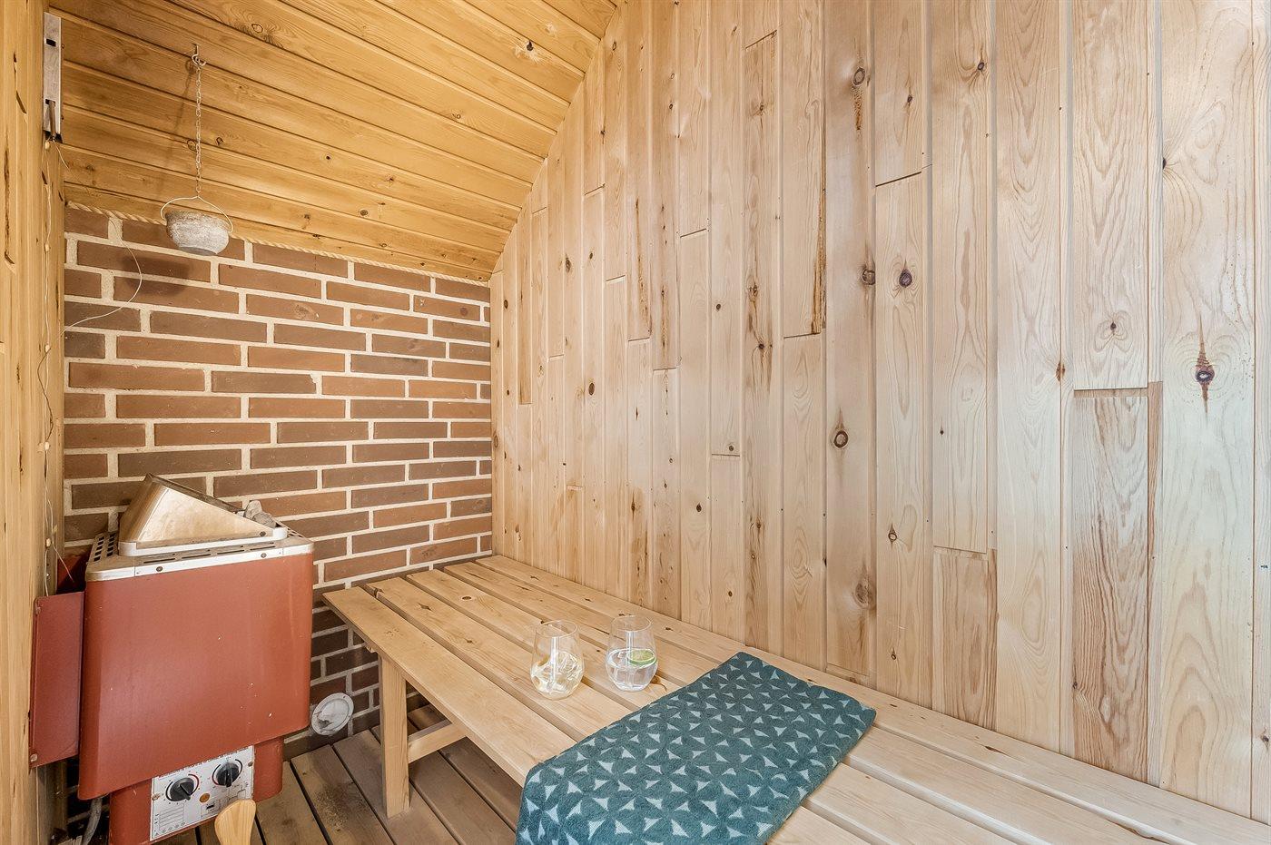 Der er 2 badeværelser med bruseniche og 2 toiletter. Der er gulvvarme på 2 badeværelser. I saunaen er der mulighed for afslapning.