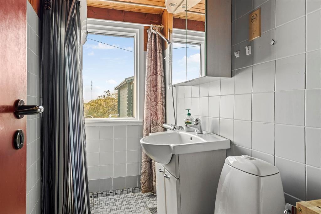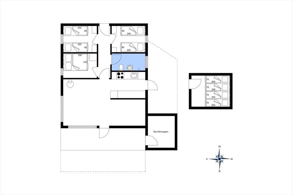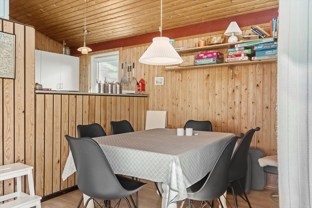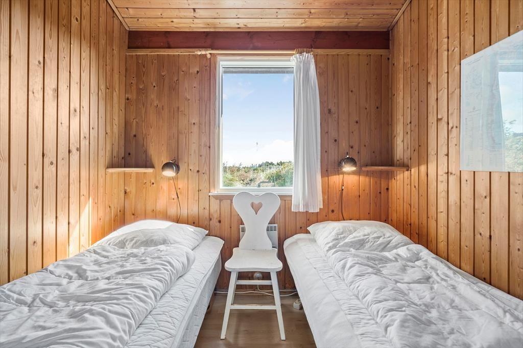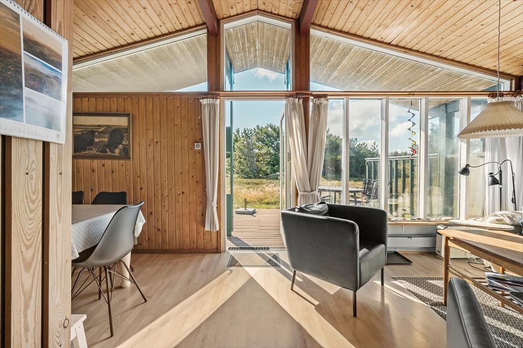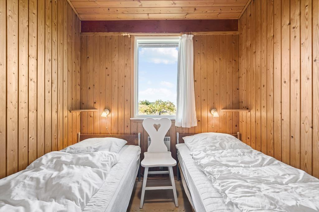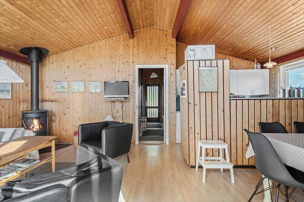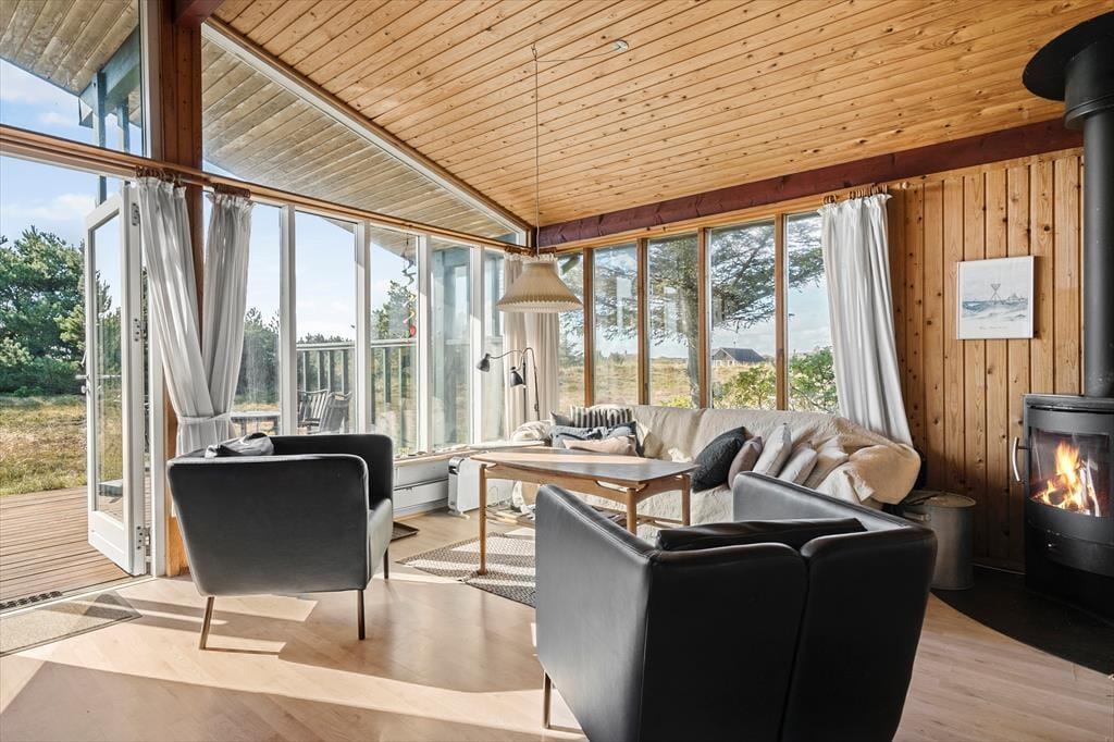 Der er tale om et klassisk, dansk sommerhus, hvor den hyggelige atmosfære er helt i top. Badeværelset er indrettet med bruseniche, og husets tre soveværelser giver sengepladser til fire personer. For store børn og teenagere, der gerne vil lidt væk fra de voksne, er der også mulighed for at sove i annekset. Foruden fordelingsentréen, der har god plads til sko og overtøj, består resten af feriehuset af en hyggelig opholdsafdeling, hvor køkkenet og stuen ligger i åben forbindelse. Køkkenet er indrettet med alt det nødvendige udstyr inklusiv opvaskemaskine, og stuen byder på et spisebord samt et sofaarrangement med tv. Vinduespartier fra gulv til loft bader stuen i naturligt lys, og samtidig har I en skøn udsigt til de naturskønne omgivelser, som I kan nyde, mens ilden knitrer i brændeovnen.