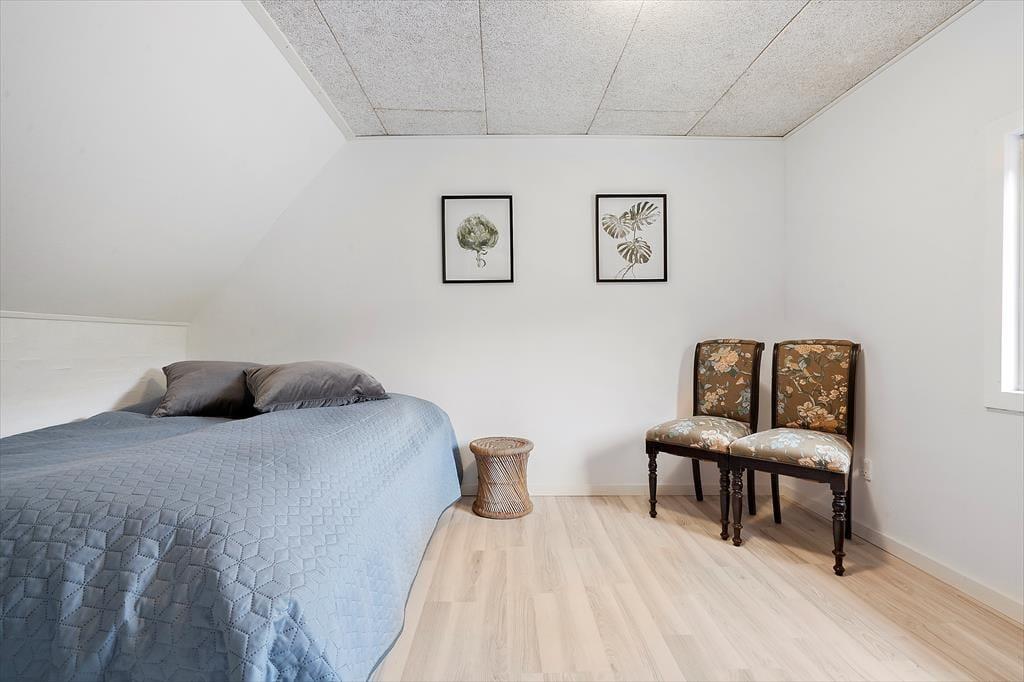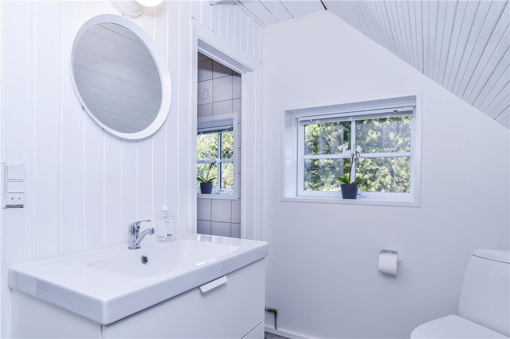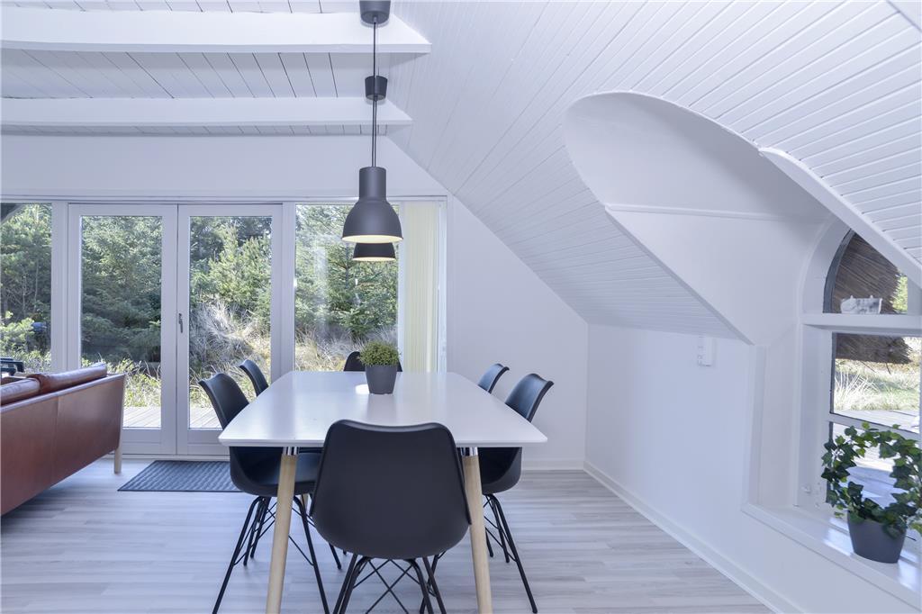 Sommerhuset blev grundigt renoveret i 2018, og derfor kan I glæde jer til at slappe af i en skøn feriebolig, hvor klassisk charme møder en moderne, lys indretning. Opholdsområdet er lyst og luftigt, og her glider køkkenet og stuen i ét. I kan være sammen om at lave mad i det lækkert indrettede køkken, hvor opvaskemaskinen klarer en stor del af arbejdet. Retterne serveres let ved spisebordet i den stemningsfulde stue, der også byder på et sofaarrangement. Brændeovnen sørger for en behagelig temperatur, og store vinduespartier giver et skønt lysindfald og udsigt til grundens frodige natur. Badeværelset er indrettet med bruseniche, og i forlængelse af opholdsområdet findes en gang med lænestole, der er det ideelle sted at læse en god bog. Ferieboligen byder på tre gode soveværelser, og i annekset findes et fjerde, der bringer antallet af sengepladser op på syv.