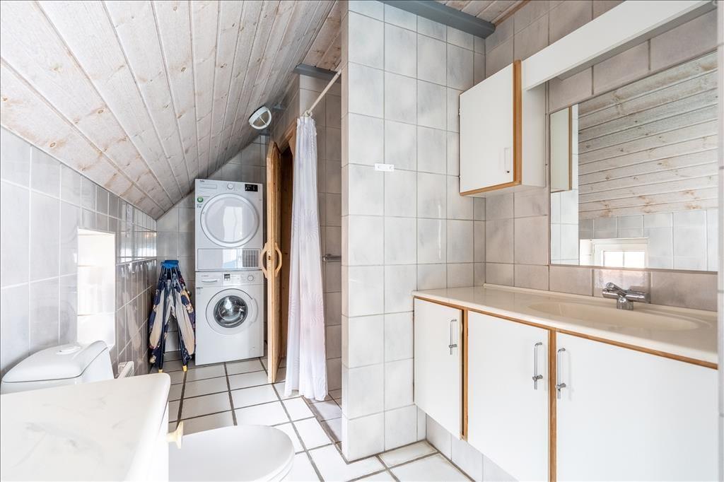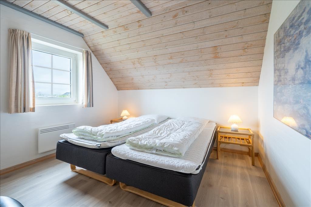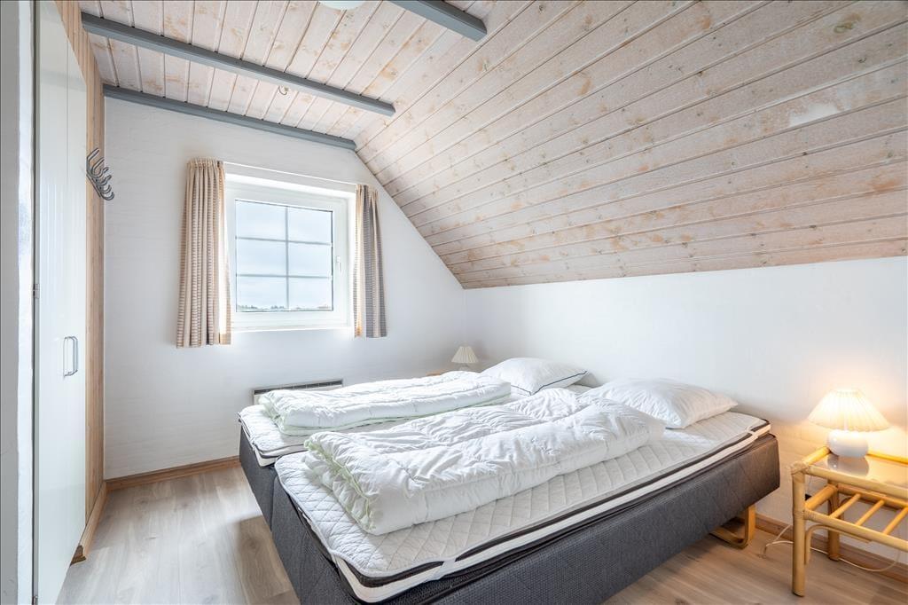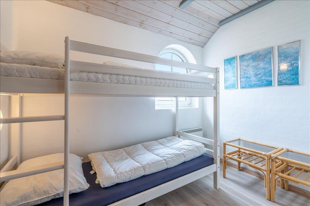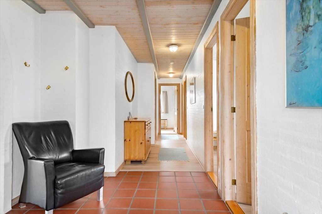 Det ældre sommerhus byder på i alt fem soveværelser, så her er god plads til at være to børnefamilier eller venner på ferie sammen. I værelsesafdelingen findes også et badeværelse med bruseniche og gulvvarme. I opholdsafdelingen glider køkkenet og stuen i ét, og store vinduespartier giver en skøn udsigt til omgivelsernes klitter og skønne natur. I køkken har I god plads til at være sammen om at lave mad, og retterne serveres let ved det store spisebord. Aftenkaffen kan I nyde i sofaarrangementet ved tv’et, og hyggen er i top, når ilden knitrer i brændeovnen. Endelig byder feriehuset på pool afdelingen, hvor I kan nyde den 24 m2 store pool med svømmetræner eller slappe af i spabadet. Ligeledes er her et badeværelse med bruseniche, sauna og vaskesøjle, og i den sydvendte glaskarnap kan I nyde en kølig forfriskning i solen med udsigt til naturen.