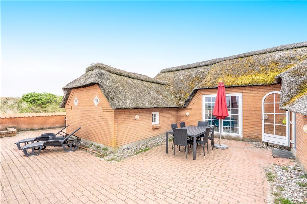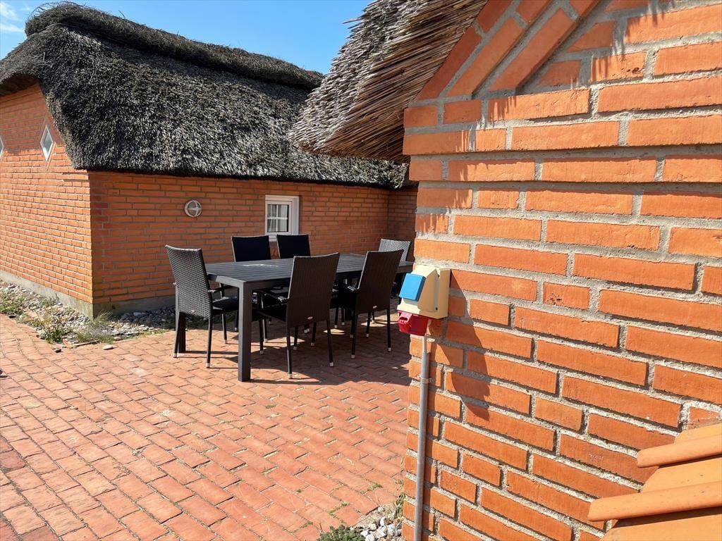 Vil I hellere opholde jer under åben himmel, kan I trække ud på det store terrassemiljø, der har en sydvendt del samt en østvendt gårdhave. Terrassen er omkranset af en læ mur, og her er god plads til at servere måltiderne i solen eller bare slappe af i solsengene. Ejendommens parkeringsareal har plads til flere biler, og naturgrunden glider i ét med den omgivende, vestjyske natur. Som ekstra service er der opsat CEE 16 amp. stik til opladning af elbil. Husk at medbringe kabel.