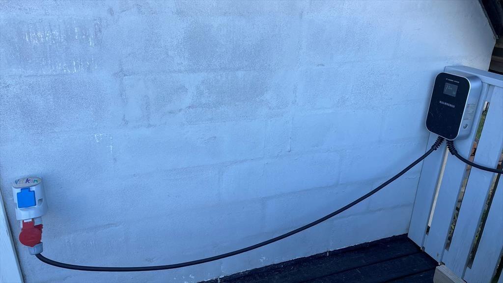 Det er muligt at oplade sin elbil, enten via type 2 stik med kabel eller et CEE kombistik (400 volt og 230 volt), hvor man selv medbringer kabel.