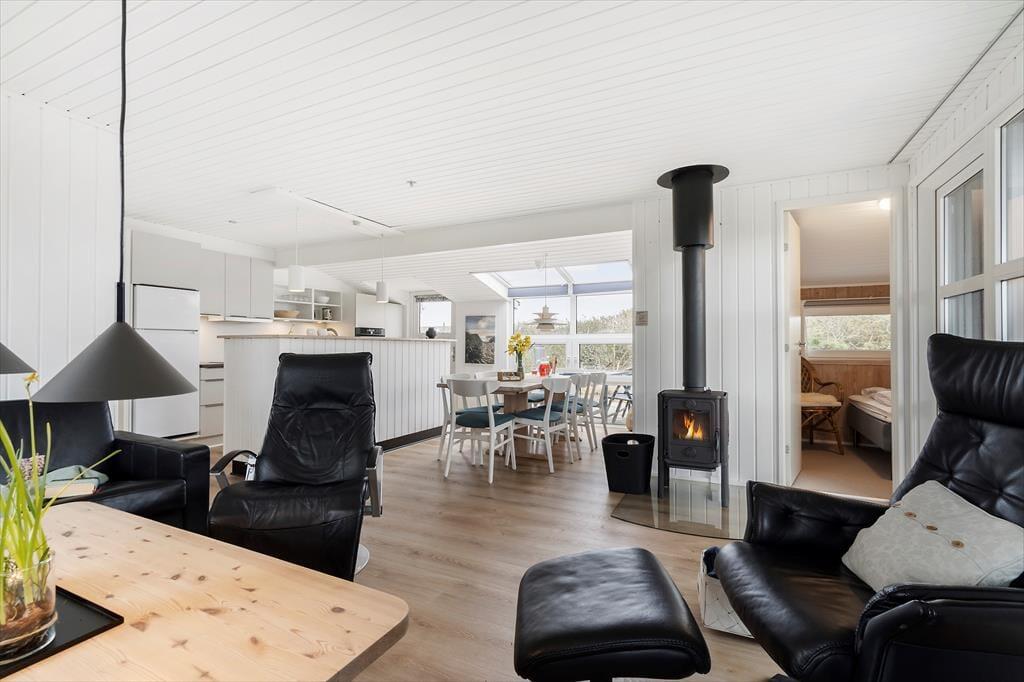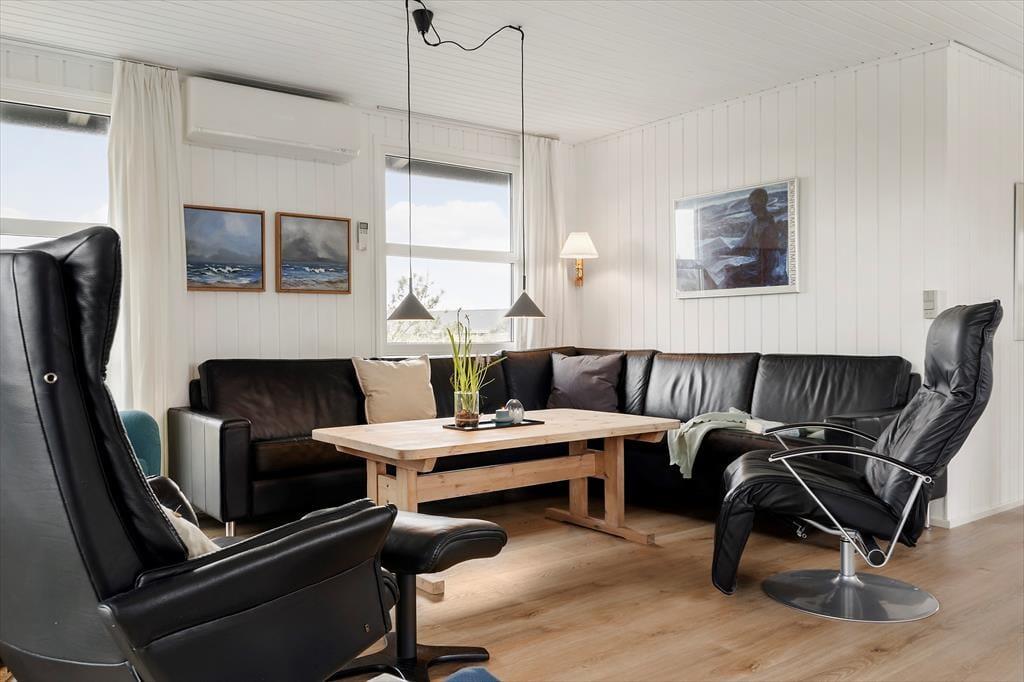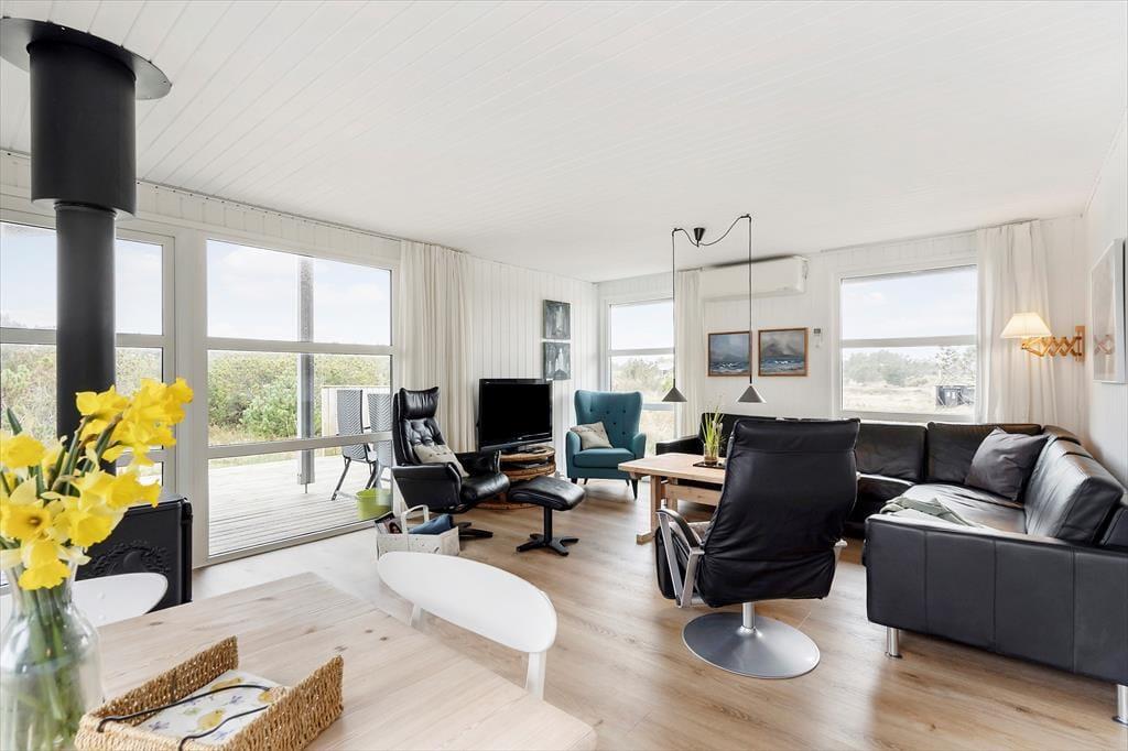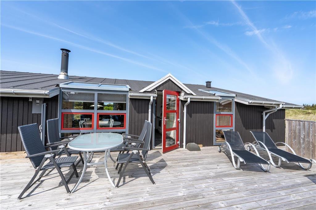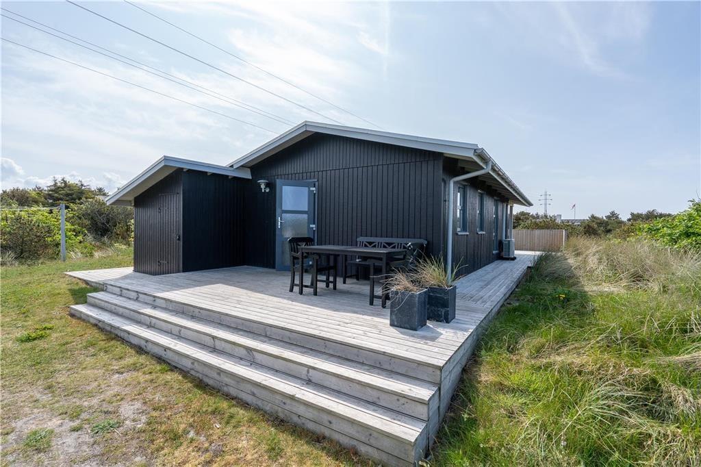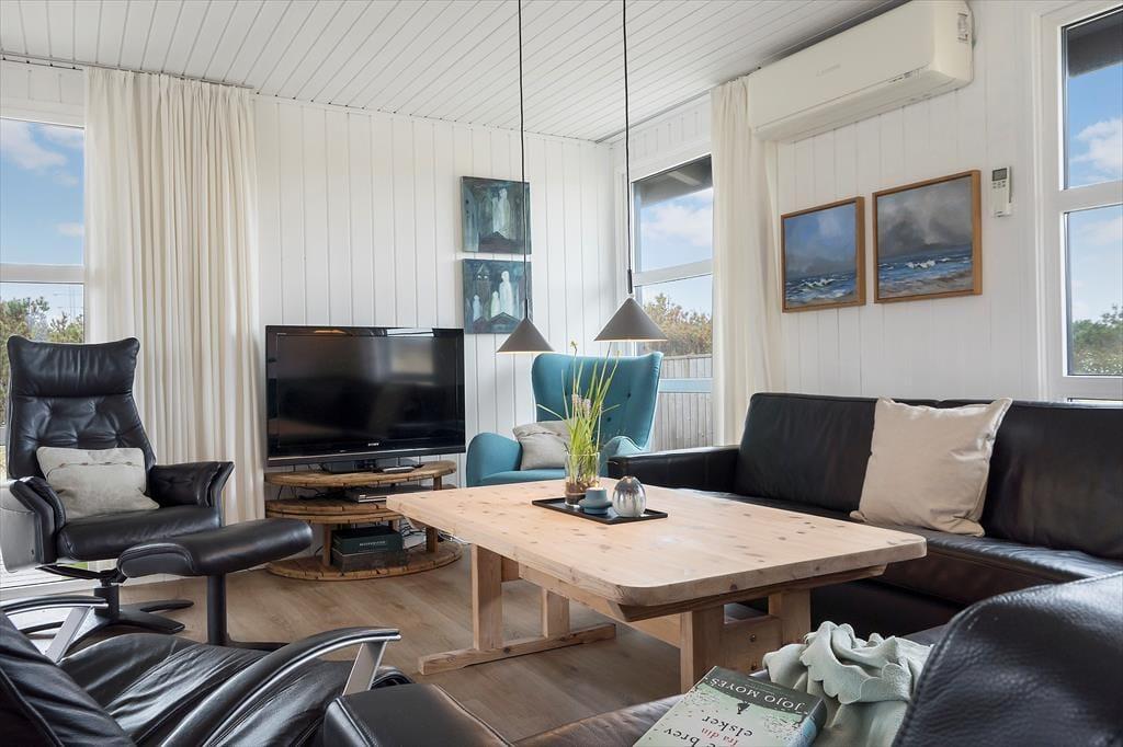 Feriedagene får en hyggelig og moderne ramme i dette rummelige sommerhus, der har plads til seks personer og er omkranset af skønne terrasser. Huset ligger på en stor, let kuperet naturgrund, og herfra har I omtrent 1000 meter til den yderste klitrække og stranden ved Vesterhavet.
