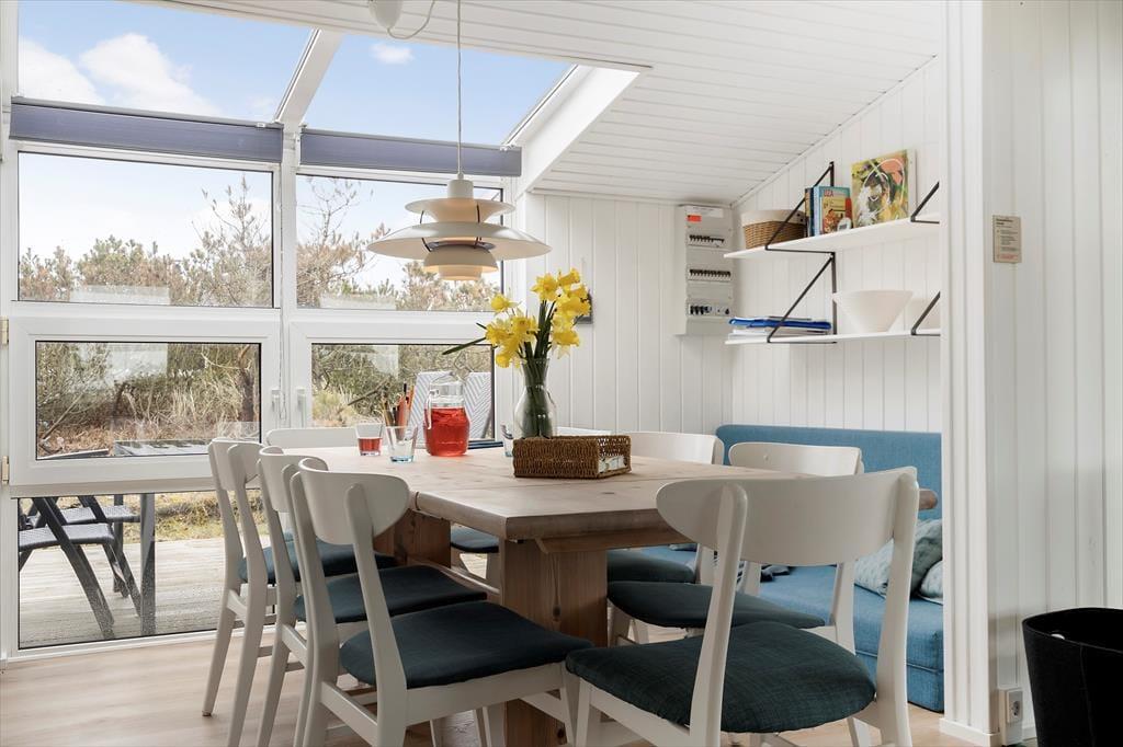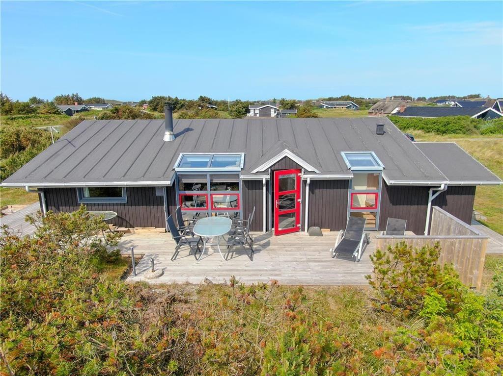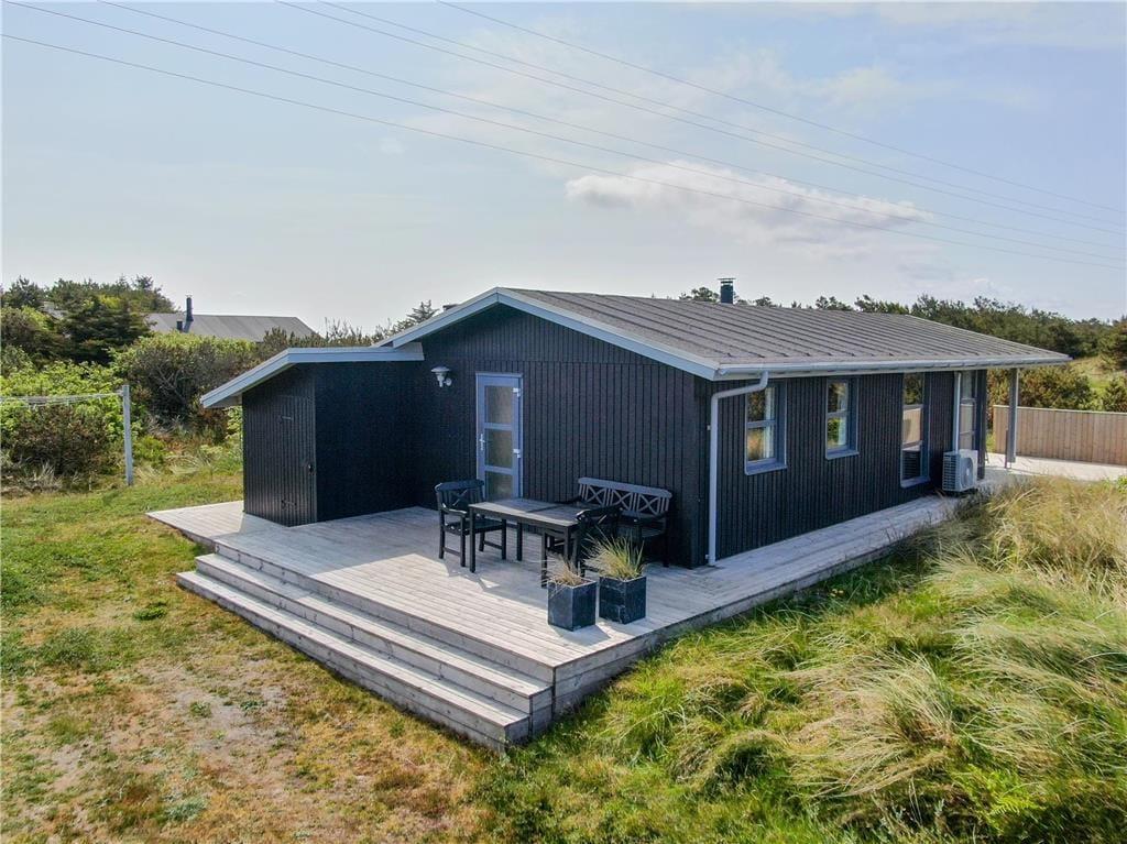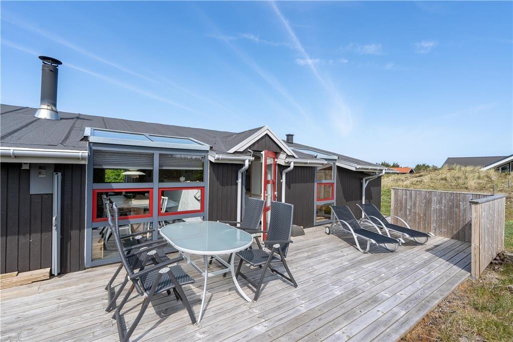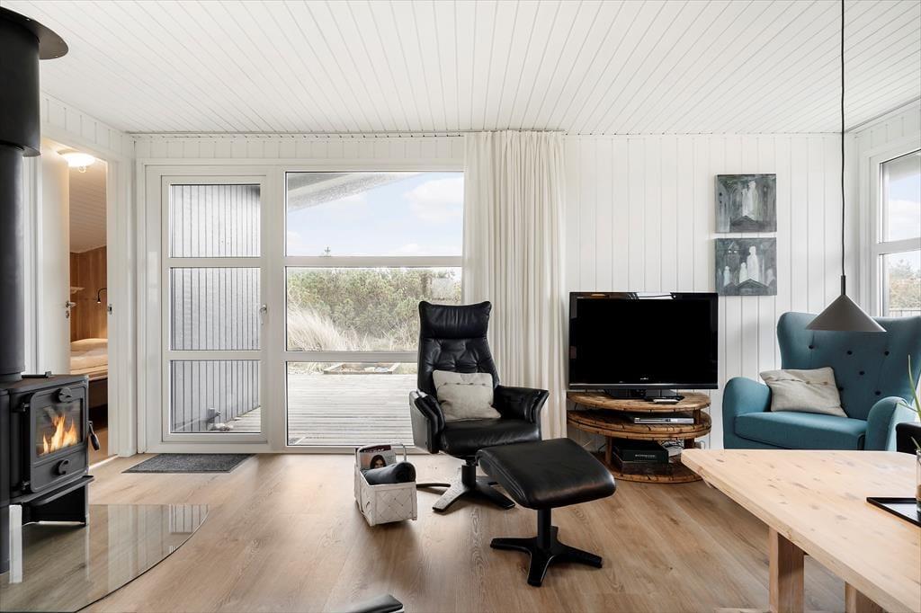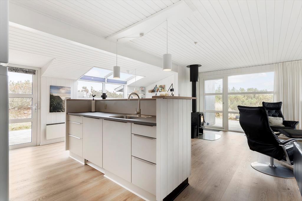 Feriedagene får en hyggelig og moderne ramme i dette rummelige sommerhus, der har plads til seks personer og er omkranset af skønne terrasser. Huset ligger på en stor, let kuperet naturgrund, og herfra har I omtrent 1000 meter til den yderste klitrække og stranden ved Vesterhavet.