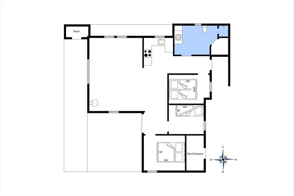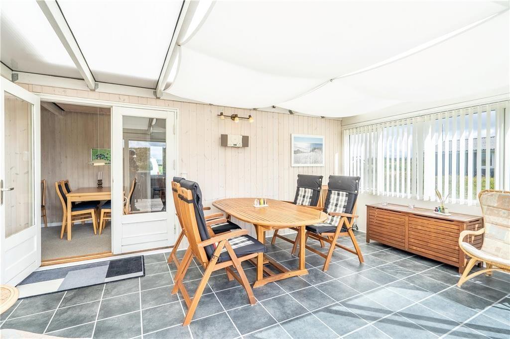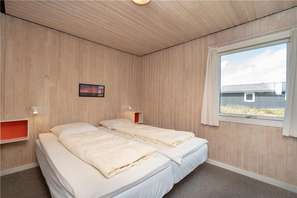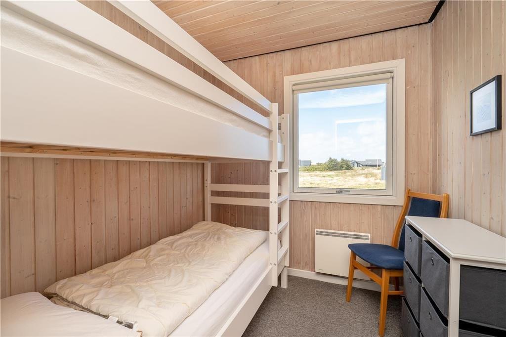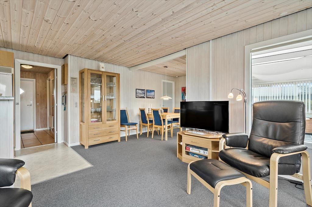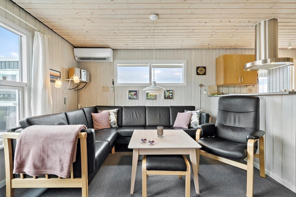 Sommerhuset rummer tre soveværelser, som i alt byder på seks sengepladser. Badeværelset er med bruseniche og sauna foruden en vaskemaskine, så I har friskt tøj gennem hele ferien. Køkkenet og stuen glider i ét, og her sørger varmepumpen for en behagelig temperatur, mens aftenstunderne får ekstra hygge, når ilden knitrer i brændeovnen. Madlavningen går nemt og bekvemt i det veludstyrede køkken, der også har opvaskemaskine, og i stuen danner spisebordet og sofaarrangementet rammen om lækre måltider, hyggelige stunder med brætspil samt filmaftener foran tv’et. Endelig byder feriehuset på en skøn, sydvendt udestue, som I kan bruge på de lune sommeraftener, men også på feriedagene i ydersæsonerne. Store vinduespartier lukker masser af naturligt lys ind og giver en skøn udsigt til omgivelserne, så her har I det ideelle sted at servere hjemmebagte boller og dampende varm te.