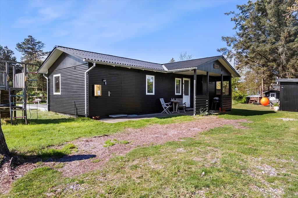 Dette velindrettede sommerhus er flot renoveret, og derfor kan I glæde jer til at bruge feriedagene i skønne rammer fuld af hygge og moderne komfort. Feriehuset ligger på en ugeneret grund omkranset af frodig beplantning, og foruden et solvendt terrassemiljø kan familiens yngste glæde sig over grundens legeredskaber, mens hele familien vil elske udesaunaen og bålpladsen.