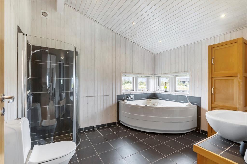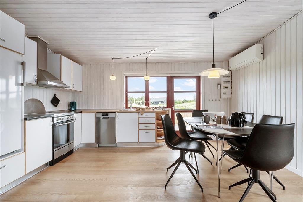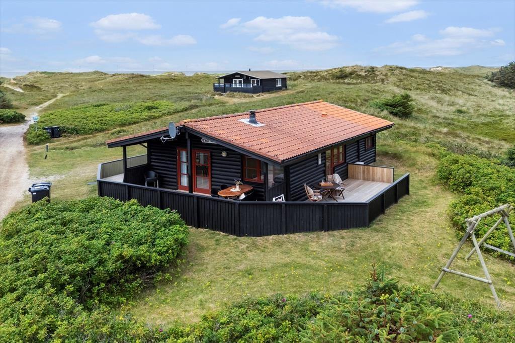 Dette sommerhus ligger i anden række til Klegods klithede, der strækker sig ud til den yderste klitrække og sandstranden ved Vesterhavet. Her kan I bruge feriedagene omgivet af smuk natur og i et hyggeligt sommerhus, der byder på solvendte terrasser og wellnessfaktor i form af et lækkert badeværelse med spa.