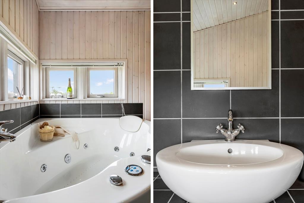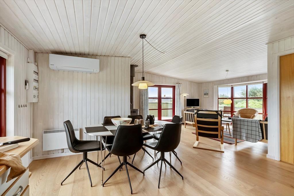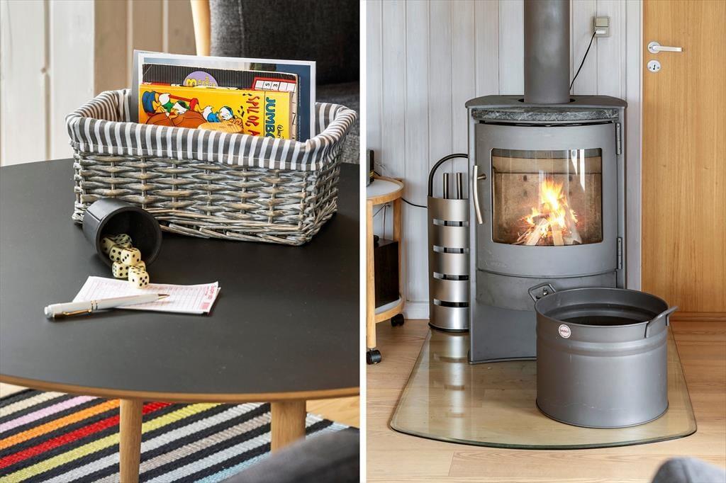 Sommerhuset er hyggeligt indrettet, og med tre gode soveværelser er her sengepladser til seks personer. Entréen har god plads til sandaler, støvler og vindjakker, og badeværelset er lækkert indrettet med bruseniche og spa. Resten af ferieboligen udgøres af et åbent opholdsområde, hvor køkkenet og stuen glider i ét. Køkkenet byder på alt det nødvendige udstyr inklusiv opvaskemaskine, og retterne serveres let ved spisebordet. Stuen rummer også et sofaarrangement med tv, og den hyggelig atmosfære er helt i top, når ilden knitrer i brændeovnen. Store vinduespartier giver rummet et skønt lysindfald, og her kan I også nyde en skøn udsigt til omgivelsernes natur og dyreliv.