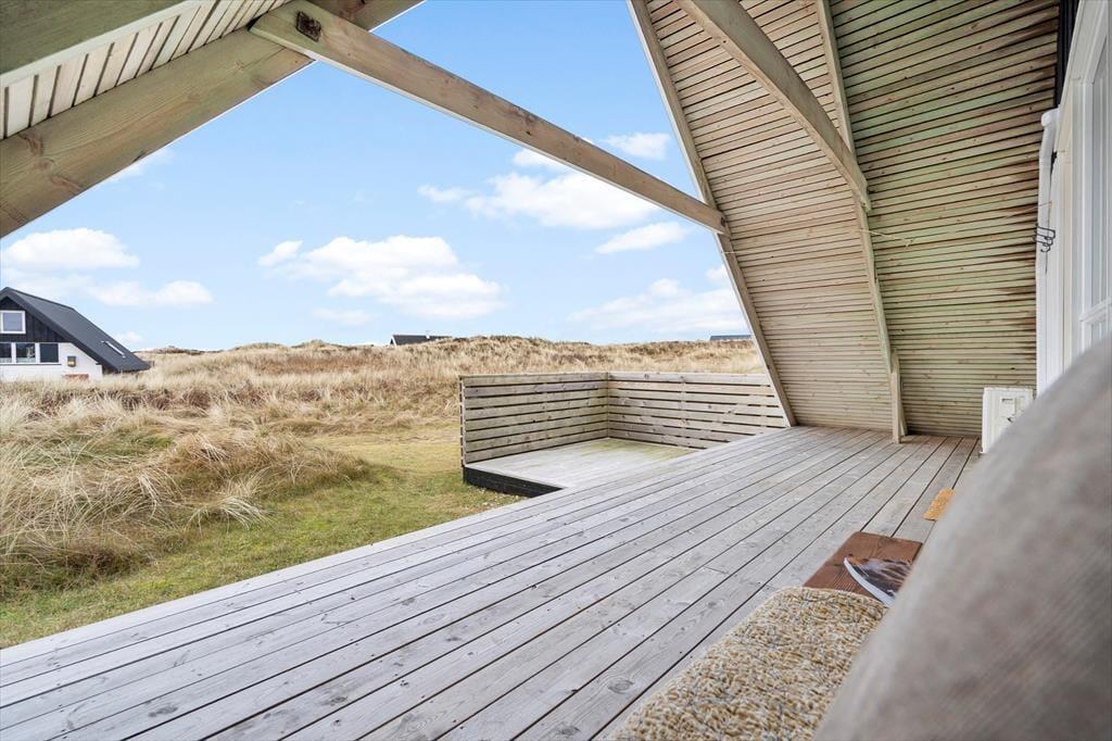 Udelivet er en helt særlig del af ferien på Opstrupsvej 56. Fra opholdsrummet kan du træde direkte ud på den overdækkede terrasse, hvor morgenkaffen smager lidt bedre, og aftenerne ofte trækker ud, længe efter solen er gået ned. Terrassens orientering giver gode muligheder for at finde både læ og sol, mens den kuperede naturgrund omkring sommerhuset skaber en fredfyldt og ugeneret stemning. Her står marehalmen og svajer i vinden og minder dig om, at du befinder dig midt i det rå og smukke klitlandskab, som Klegod er kendt for. Vi oplever ofte, at netop disse rammer giver ferien en helt særlig ro – hvor skuldrene sænker sig, og tempoet naturligt finder sit eget leje. Uanset om dagen byder på afslapning i havemøblerne eller lange samtaler under åben himmel, er rammerne sat for ægte feriestunder.