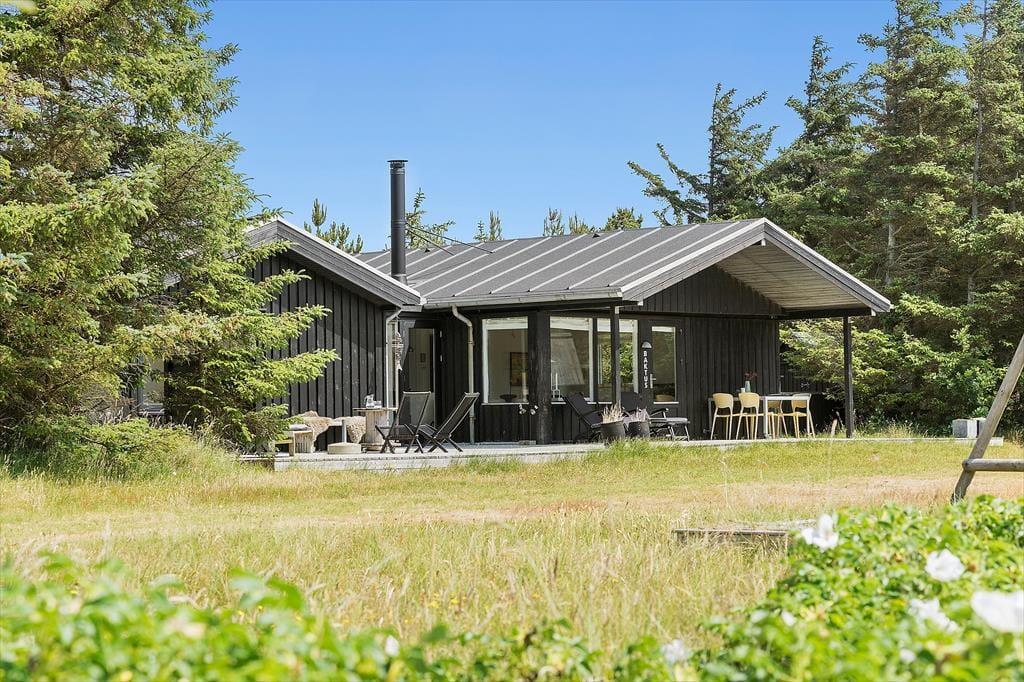 Hvis I drømmer om en afslappende ferie ved vestkysten, kan det anbefales at zoome ind på dette dejlige sommerhus, der ligger bare 650 meter fra Vesterhavet og Klegod Strand. Huset har en moderne og stilfuld indretning, og ude er der godt at være på den ugenerede naturgrund, hvor I får glæde af et stort terrassemiljø og flere hyggekroge.