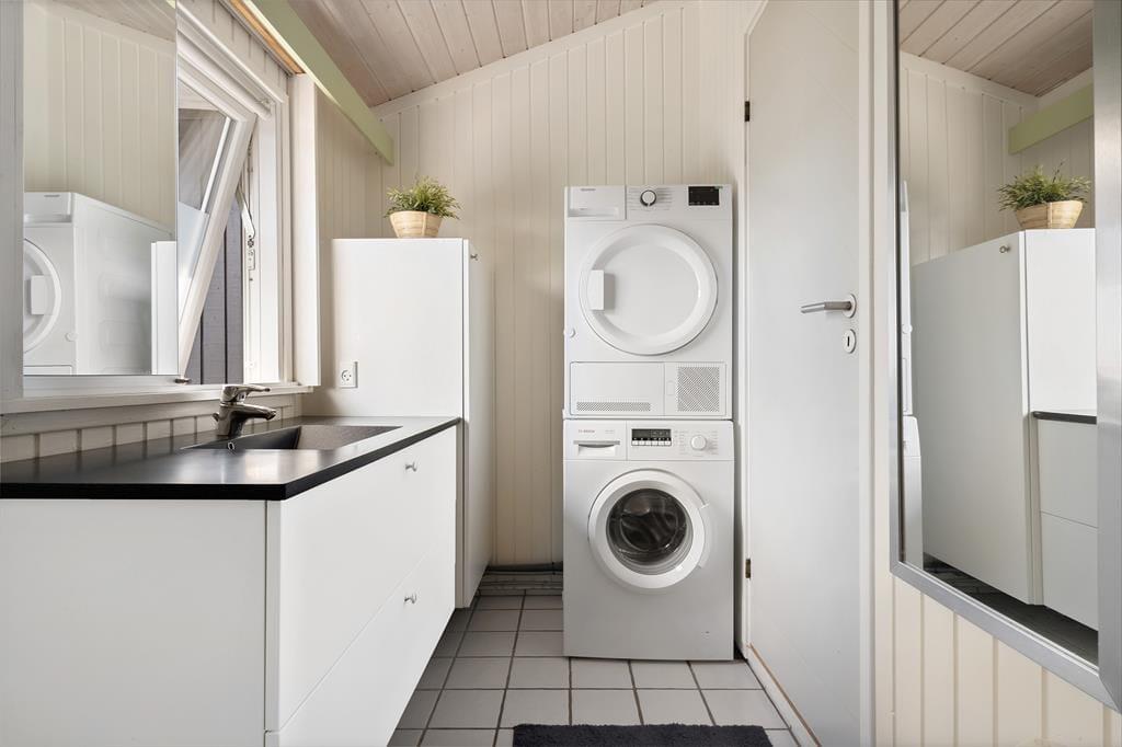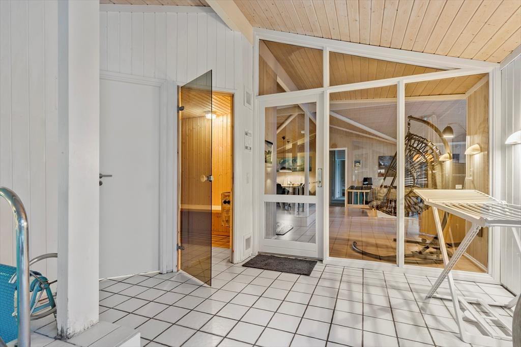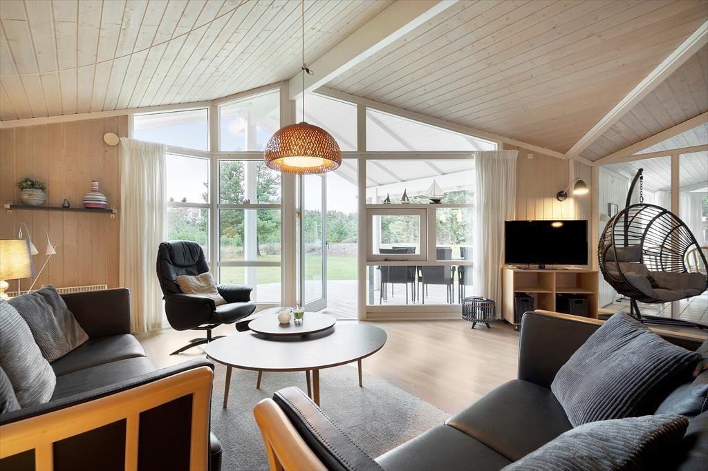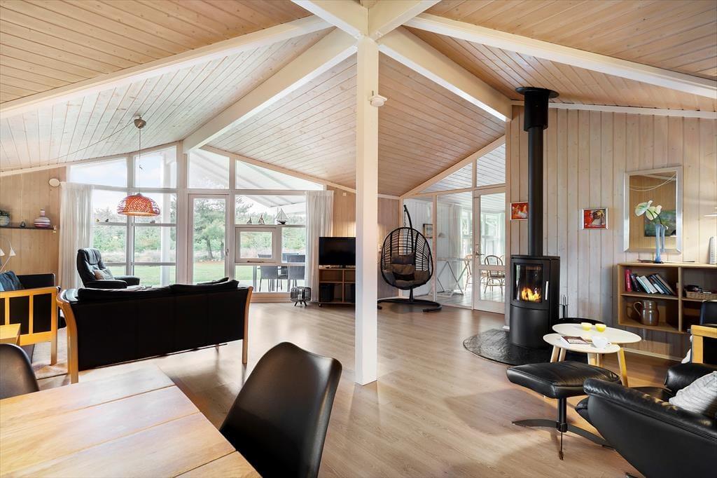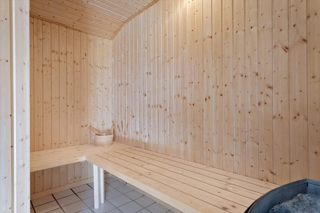 Det 168 m2 store sommerhus blev renoveret i 2021, så det fremstår pænt og velholdt. Atmosfæren er god inden døre, og ved ankomsten er det fristende straks at slå sig ned i stuen for at påbegynde driverlivet – hvis altså ikke I trænger mere til at bade i poolen og slappe af i saunaen. Både swimmingpool og sauna er del af wellnessafdelingen, der for øvrigt også rummer et badeværelse. Det andet badeværelse ligger i den anden ende af huset, og derudover byder planløsningen på to soveafsnit med hver især to værelser. Køkkenet ligger i åben forbindelse med stuen, så det er nemt at hente kaffe og søde sager med hen til sofaen nær brændeovnen.