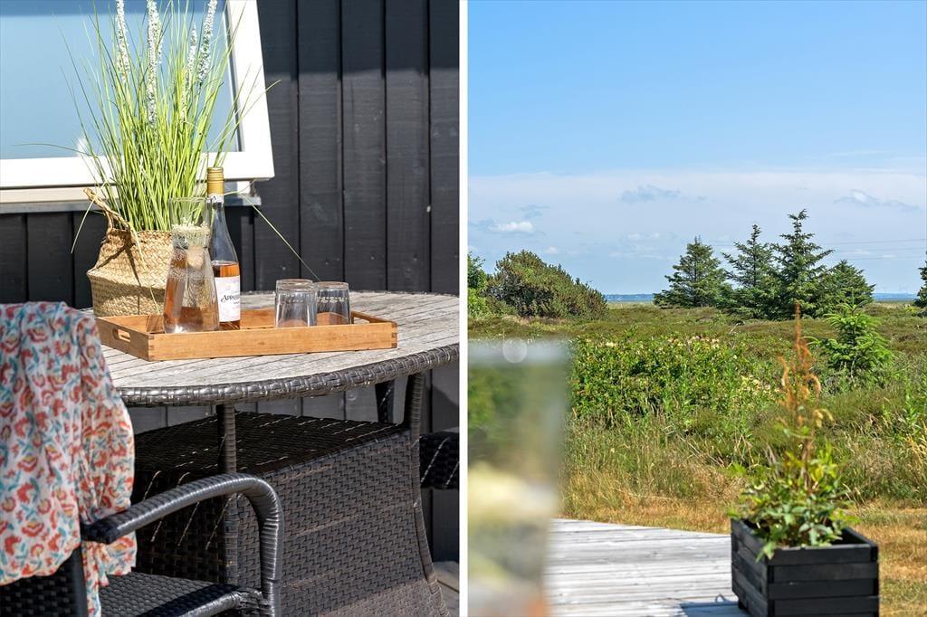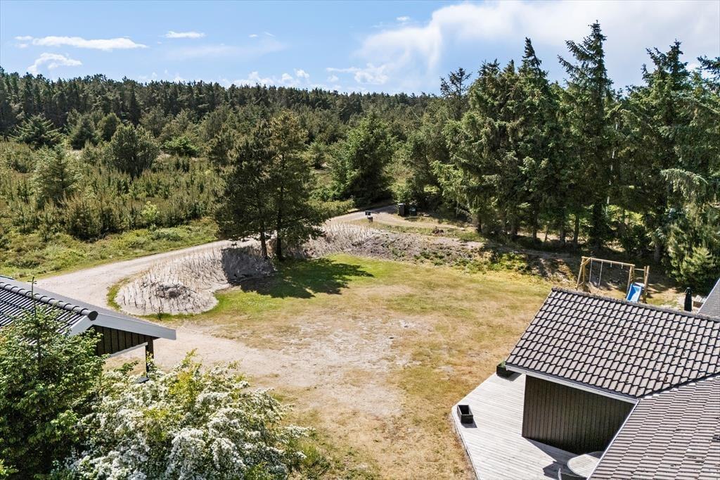 Den 2900 m2 store naturgrund ligger godt og roligt placeret for enden af en lukket vej og lige ud til et fredet areal. Ringkøbing Fjord er tæt på– faktisk kan I se vandet fra den overdækket terrasse ved skuret– og hvis I følger Lyngdraget vestpå, kommer I snart til stien, der kan føre jer over klitterne og ned på Klegod Strand. Mod nord har I få kilometer til badebyen Søndervig, og hvis I følger Holmsland Klit mod syd, kommer I snart til Hvide Sande. De smukke naturomgivelser kan oplagt udforskes på cykel, med mindre I hellere vil se ind på land fra et surf- eller SUP-board.