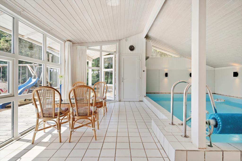 På den lukkede vej Lyngdraget nær Klegod Strand finder I dette velindrettede kvalitetssommerhus, der nemt kan rumme otte personer. Her kan I slappe af i hyggelige og indbydende rammer, og den lækre poolafdeling er med til at gøre ferien endnu skønnere.