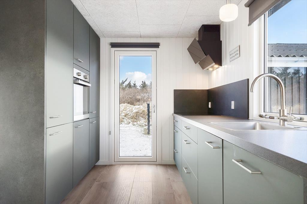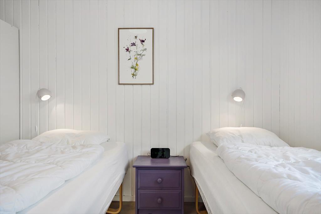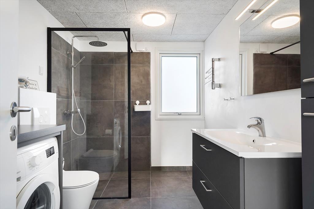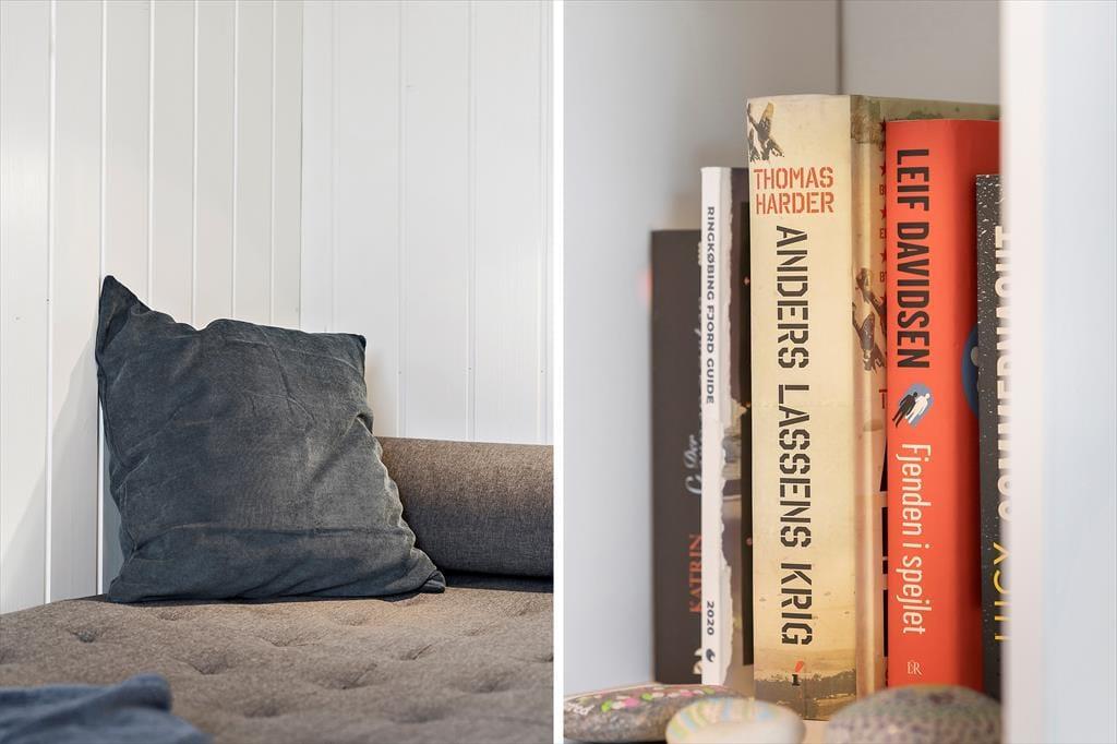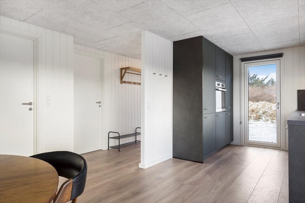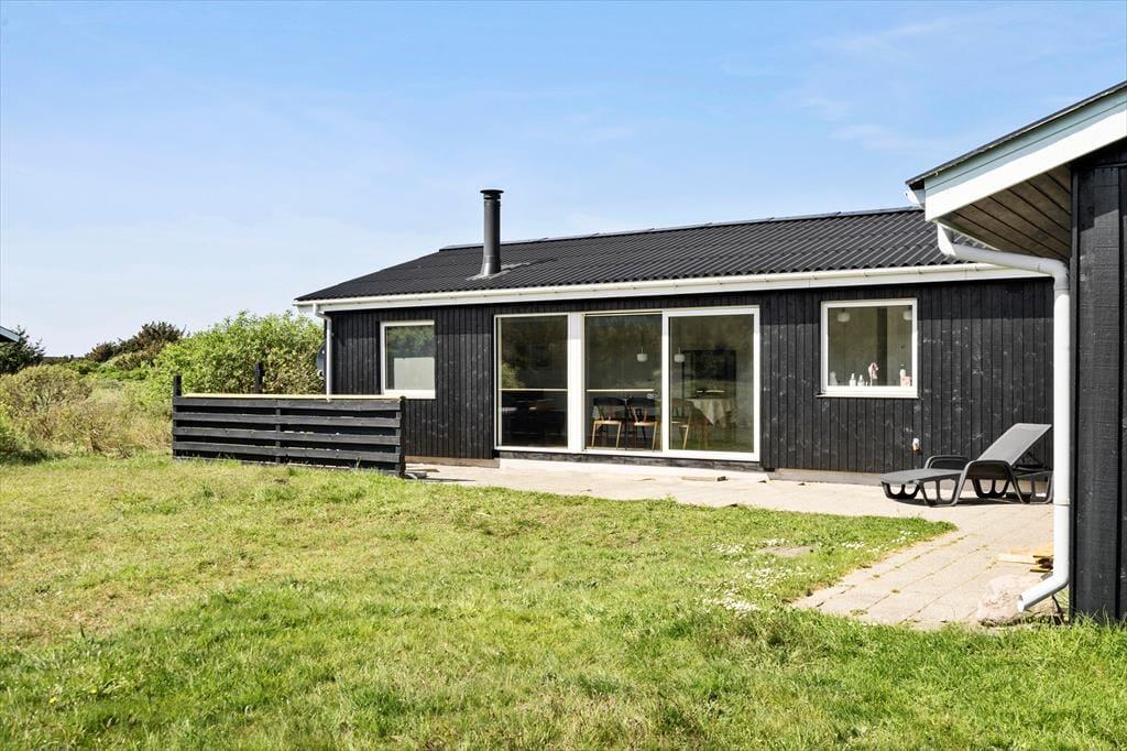 Beliggenheden er bestemt ikke det eneste, der er attraktivt ved huset, for inde bag den mørke facade venter der jer en lys og lækker feriebolig med moderne interiør. I får en skøn ramme om madlavningen i det veludstyrede, åbne køkken, og når der er dækket op, er det herligt at kunne samles om spisebordet til langstrakte måltider med gode snakke. Sofahjørnet er en hyggelig krog med fladskærms-tv og brændeovn, og når det er sengetid, kan I fordele jer på husets tre dejlige soveværelser. Husets badeværelse fremstår i lige så flot stand som de øvrige rum.