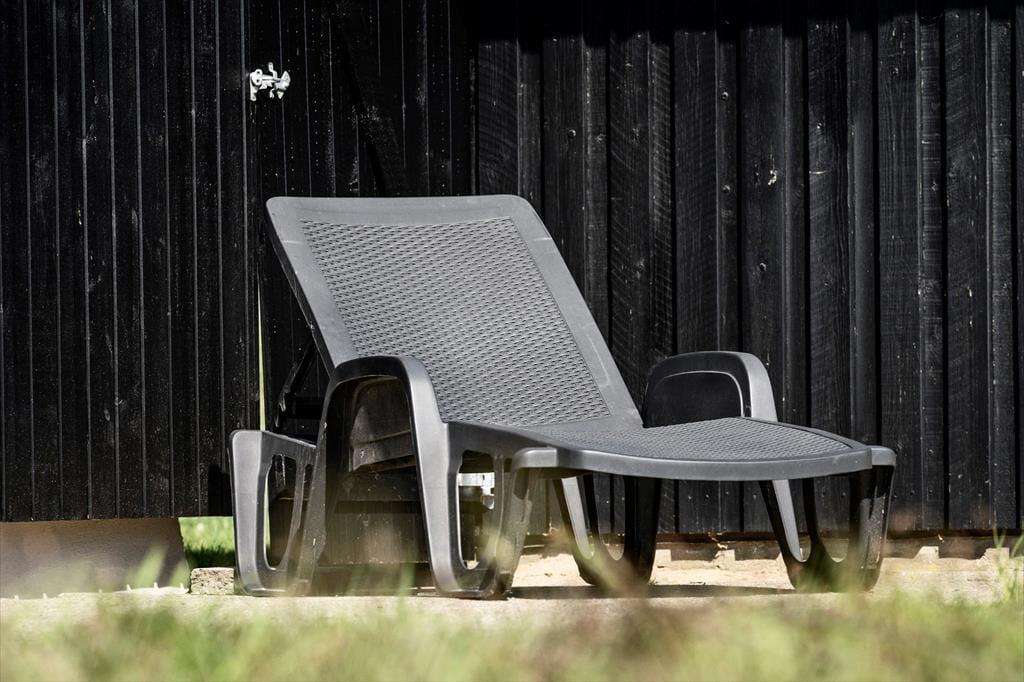 Når vejret er til det, kan I åbne stuens skydedør og træde lige ud på den sydvendte terrasse. Her kan I ikke bare nyde solen, men også udsigten til det naturareal, der breder sig i forlængelse af grunden – sikke et dejligt sted at slikke sol og mærke feriefreden helt ud i kroppen! Nærmest huset er der græsplæne på naturgrunden.