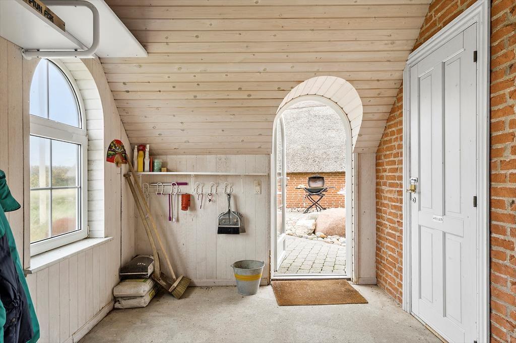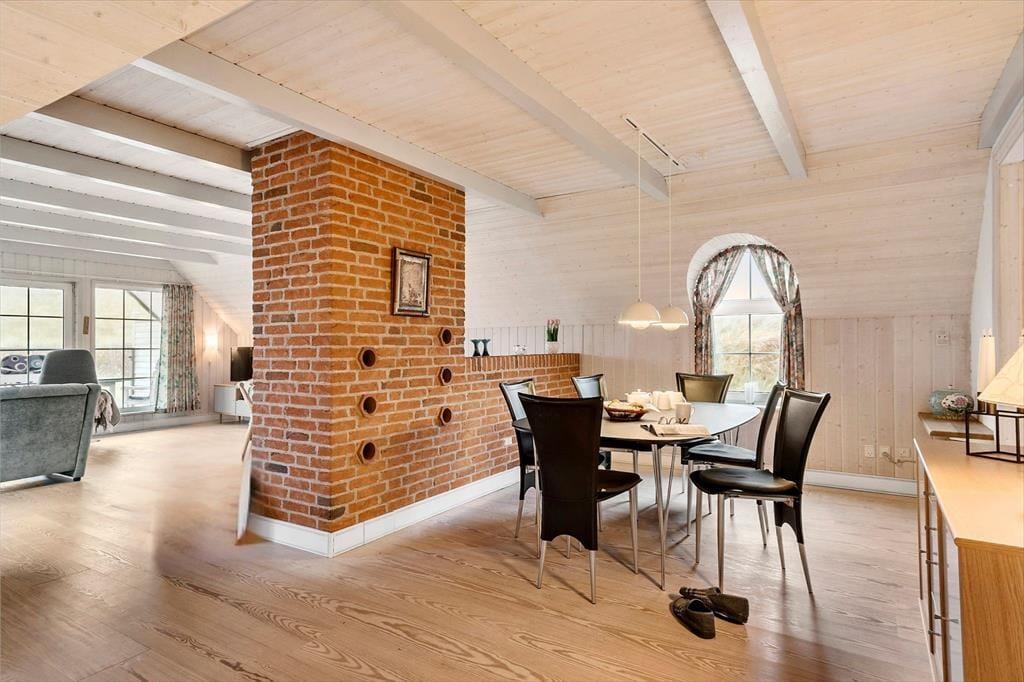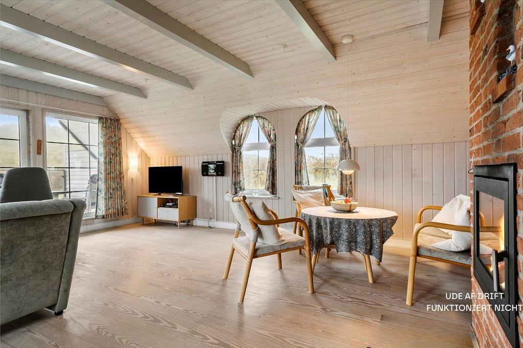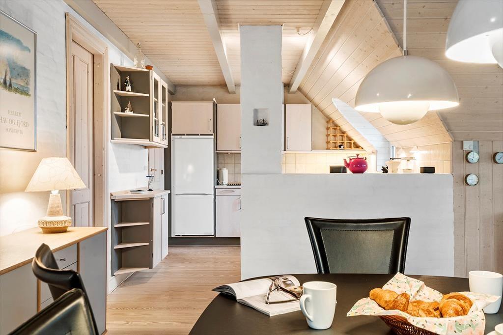 Når I træder indenfor i dette sommerhus, bliver I mødt af en hyggelig og indbydende atmosfære. Hele huset er smagfuldt indrettet med en varm og hjemlig følelse, der gør det til et dejligt sted at tilbringe tid sammen. De bløde gulvtæpper på soveværelserne skaber en behagelig og varm velkomst, især når I står op om morgenen og mærker den bløde varme mod fødderne. I entreen er der gulvvarme og i stuen samt køkken er der flotte trægulve. Huset er gennemført i en stil, der emmer af hygge, med gardiner, der filtrerer lyset og giver rummet en dejlig ro. Køkkenet er funktionelt og veludstyret, så I nemt kan tilberede dagens måltider, mens I stadig er tæt på hinanden. I det åbne opholdsområde er der varmeanlæg ? og god plads til afslapning. Der er også en hyggelig tv-krog, hvor I kan slappe af efter en dag fyldt med aktiviteter.