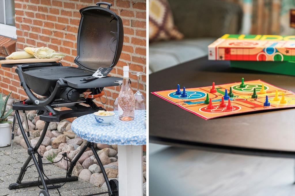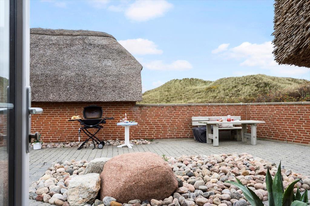 Når solen skinner, er det tid til at nyde de flere dejlige terrasser, der omgiver sommerhuset. Her er plads til både solopgang og solnedgang, og de mange hyggelige lækroge gør det muligt at finde et stille hjørne, uanset hvilken tid på dagen det er. Den private beliggenhed betyder, at I kan nyde jeres udendørs ophold i fred og ro – uden forstyrrelser fra trafik eller andre. Rundt om huset kan I finde flere terrassemøbler, hvor I kan slappe af, nyde den friske havluft og måske grille et måltid sammen. Den kuperede grund giver en naturlig afskærmning, så I kan være helt uforstyrrede