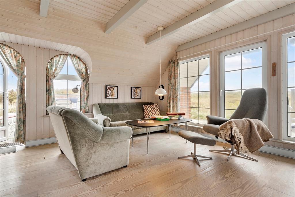Med kun 180 meter til stranden er det nemt at tage en kort gåtur til kysten og opleve havets brusen. Her kan I nyde lange gåture på stranden, bade, eller bare finde ro og fordybelse med udsigt over det åbne hav. Beliggenheden giver også mulighed for at udforske den omkringliggende natur – gåture i klitterne og langs de åbne strandenge er altid en god måde at tilbringe tid sammen på. Hvis I er til vandsport, kan I hurtigt komme til Hvide Sande eller Søndervig, hvor der er rig mulighed for surfing og andre aktiviteter. Søndervig byder også på golfbane, badeland og mange familievenlige aktiviteter. Desuden er det muligt at opleve den smukke natur ved Ringkøbing Fjord, som ligger i kort afstand fra huset.