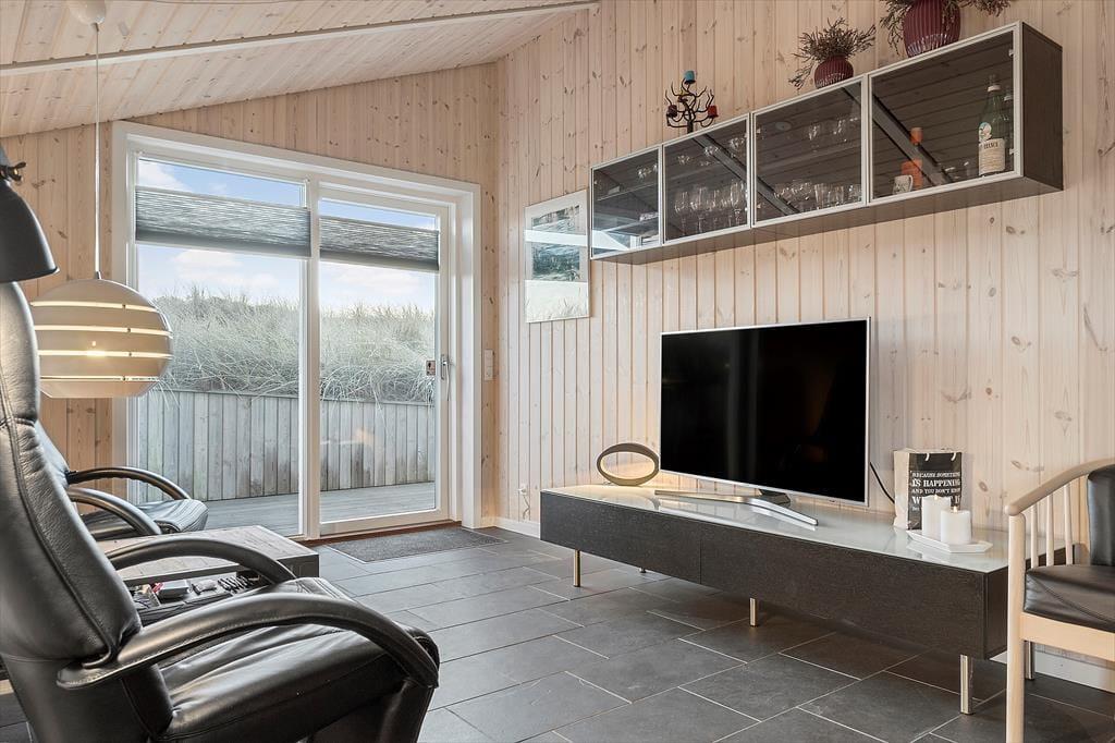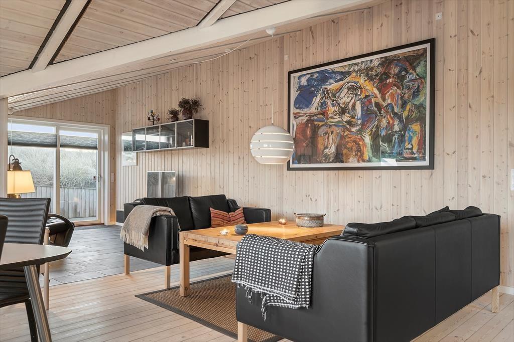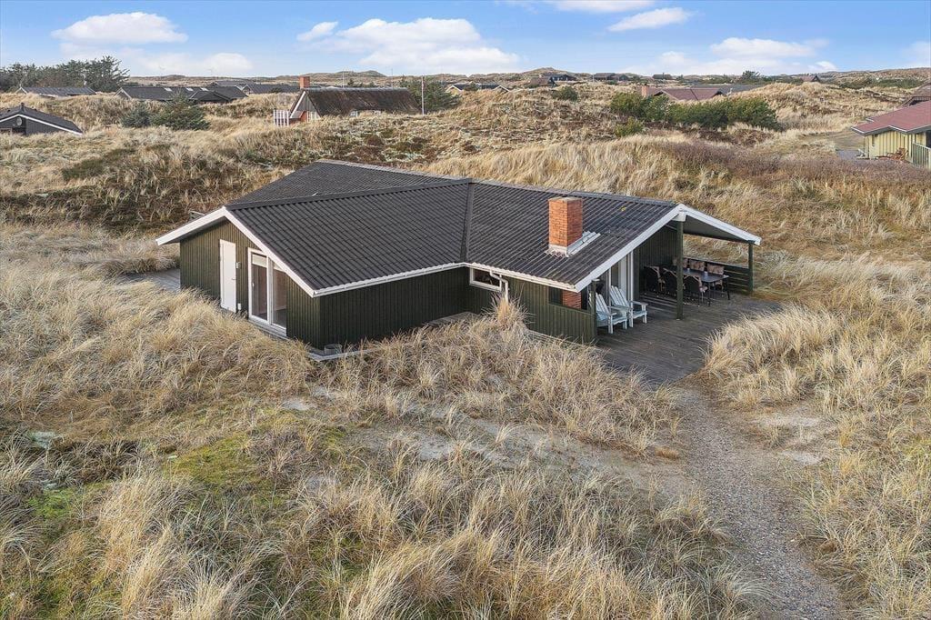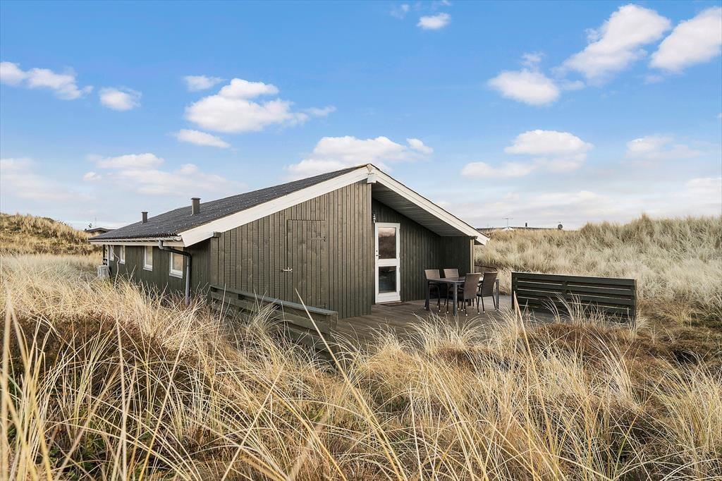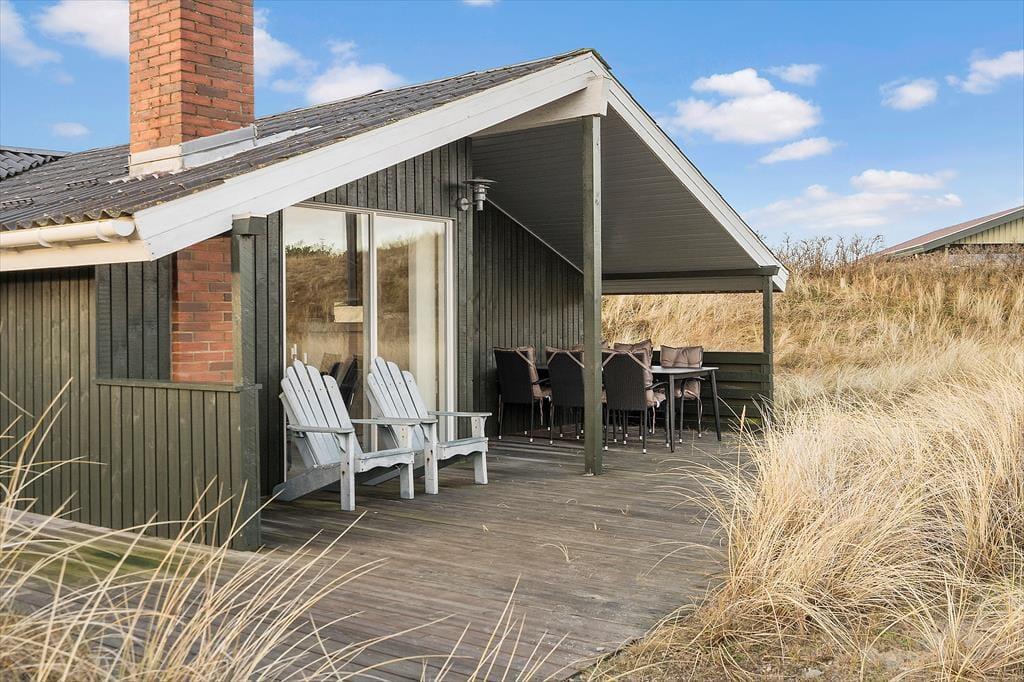 Rundt om sommerhuset er der flere dejlige terrasseområder at vælge imellem, inklusiv et overdækket areal, der ligger i forlængelse af stuen. Uanset hvor I slår jer ned, er det herligt at kunne kigge lige ud på de bløde klitter, der skifter farve i takt med dagens gang, og både morgen, middag og aften kan I nyde områdets fredelige atmosfære.