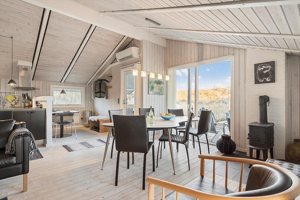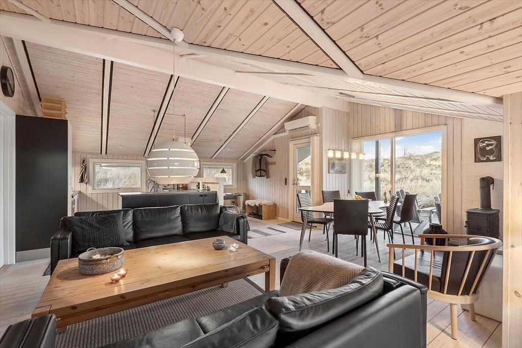 Det er længe siden, at huset sidst blev brugt til udlejning, og sidenhen er det blevet både gennemrenoveret og udbygget, så det præsenterer sig i utroligt flot stand. Rummene byder på mange lækre detaljer, lige fra det ene badeværelses moderne bruser med massagedyser til den klassiske sauna på det andet badeværelse – så der er rigtigt lagt op til wellness og afslapning. De tre soveværelser byder alle på komfortable senge, og i opholdsrummet har I flere gode siddepladser, alt efter om I vil hygge i sofaafdelingen, flade ud i tv-krogen eller samles ved spisebordet med udsigt til klitterne. Der er både brændeovn og varmepumpe i rummet, og i det velindrettede åbne køkken har I vinkøleskab, opvaskemaskine og andre gode hvidevarer, der gør madlavningen til en leg.
