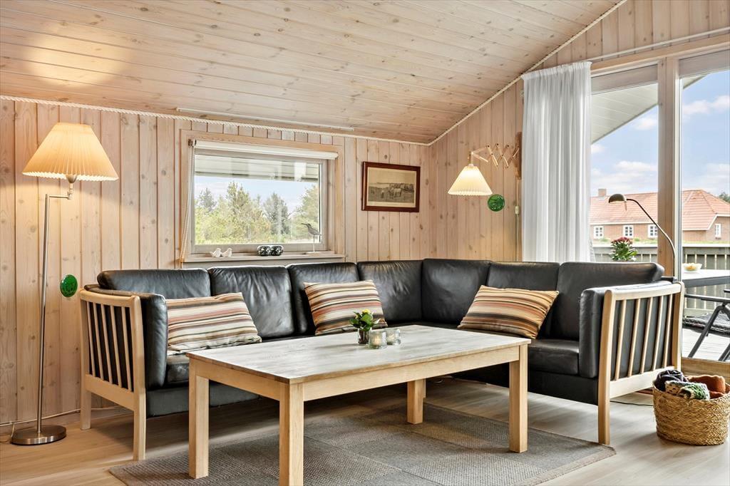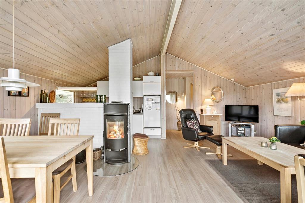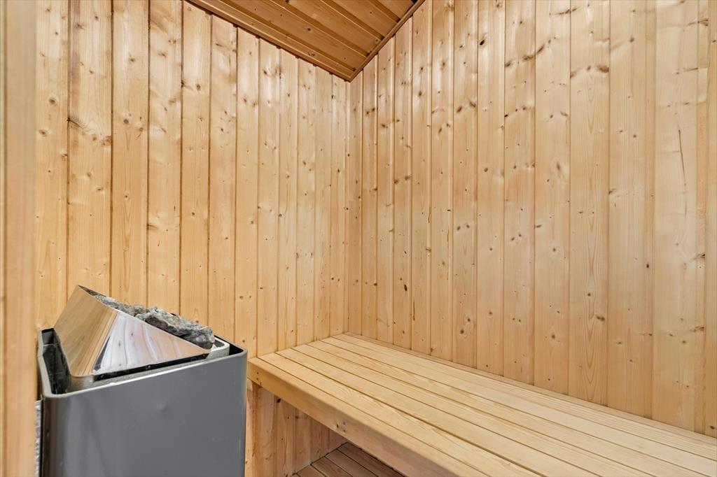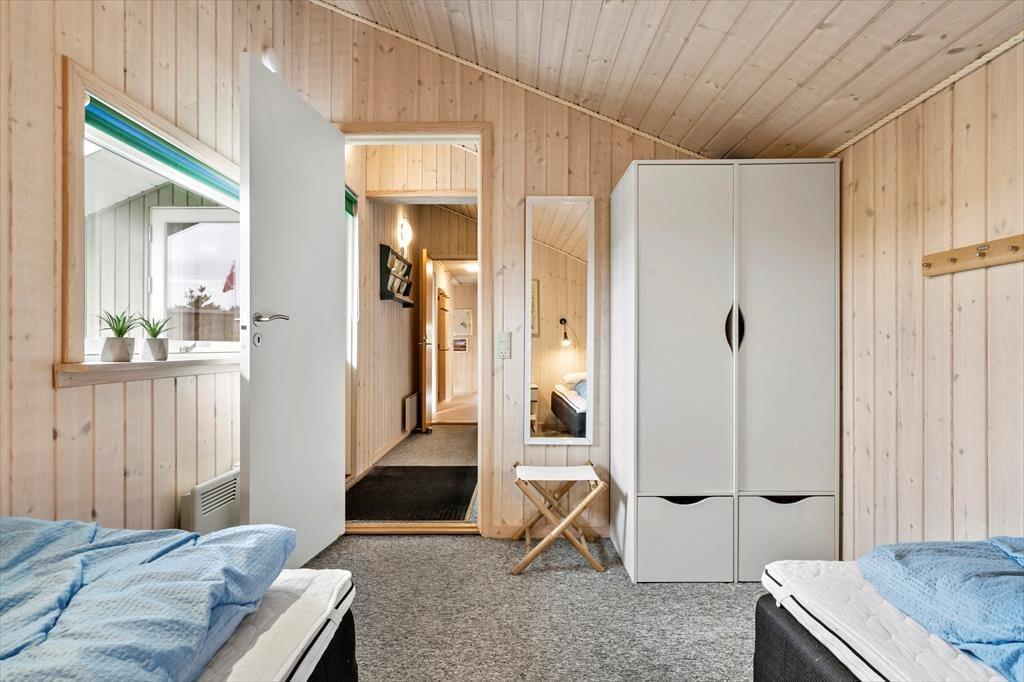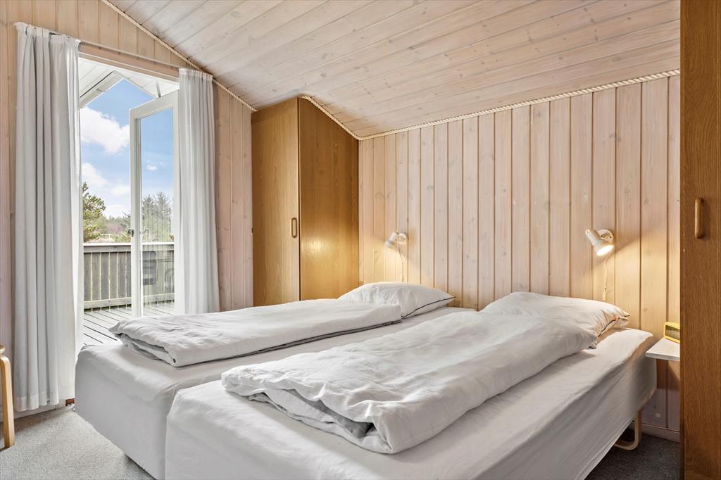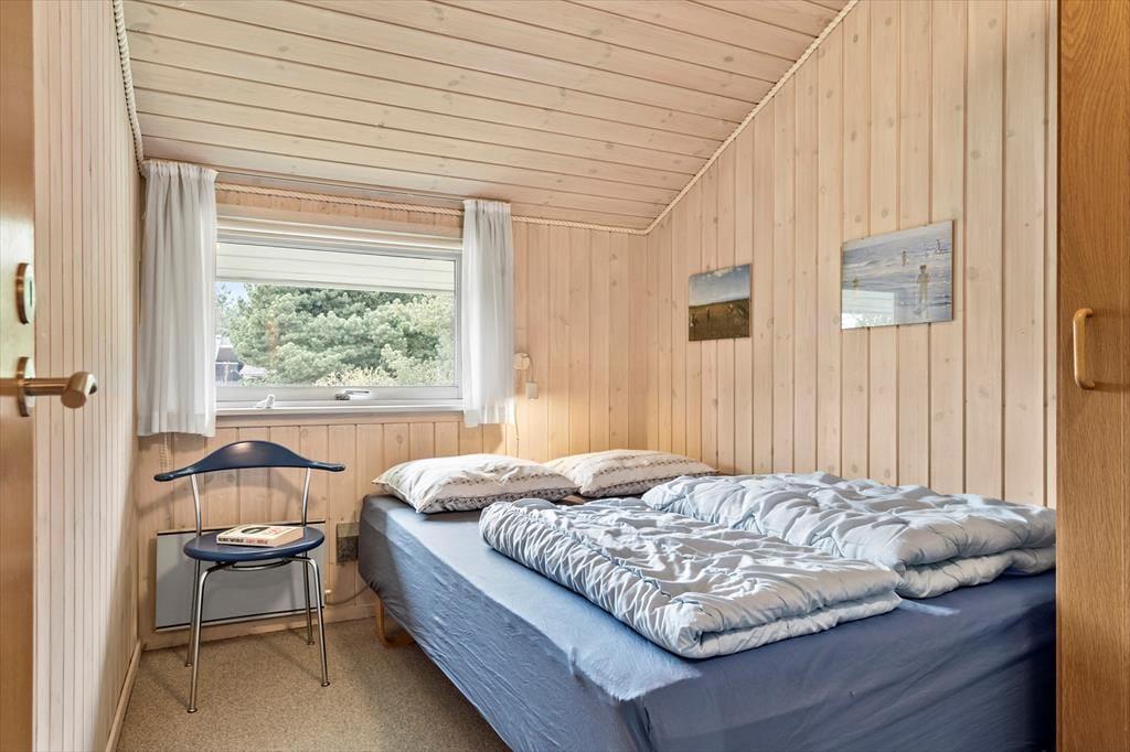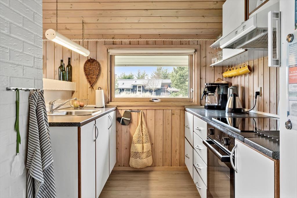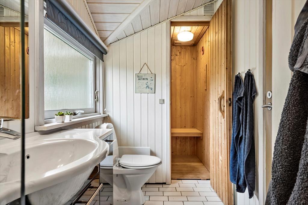 Sommerhuset har så rart og stemningsfuldt et opholdsrum, at det slet ikke gør noget, hvis det skulle regne lidt på ferien – det gør næsten bare indelivet endnu mere hyggeligt med lidt dråber på ruderne, og så er der ekstra god grund til at tænde op i brændeovnen, finde brætspillene frem og bage kage i køkkenet. Også badeværelsets sauna kan du oplagt tage i brug, hvis det er køligt udenfor, og hvis du har været ude for at surfe, fiske eller cykle hele Ringkøbing Fjord rundt, kommer saunaen virkelig også til sin ret. Soveværelser er der tre af, og de er dejlige hele året rundt.