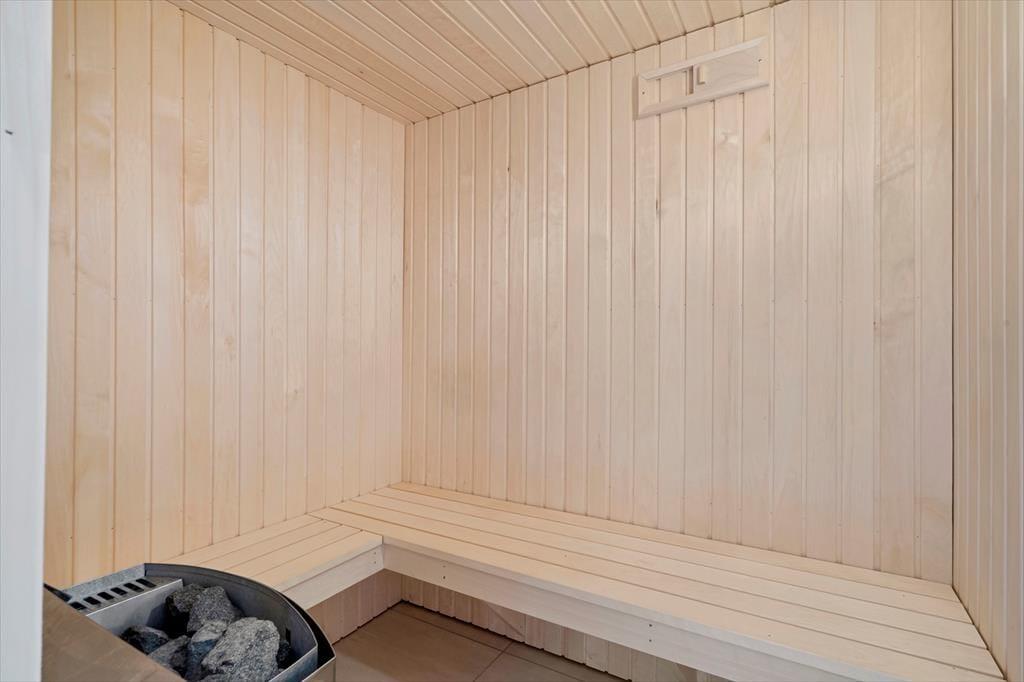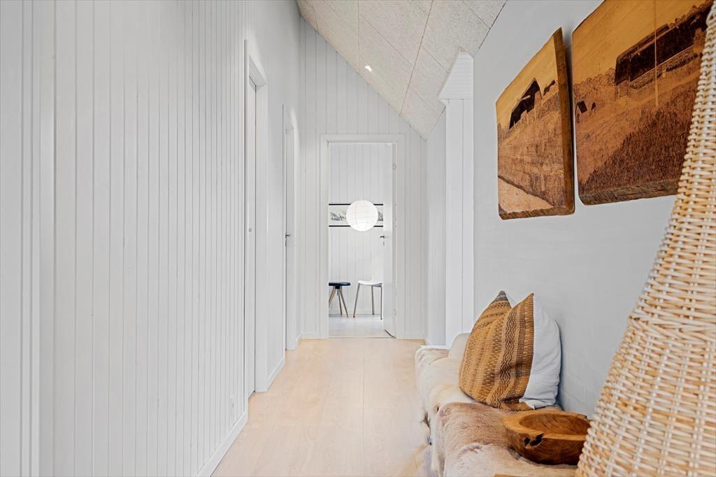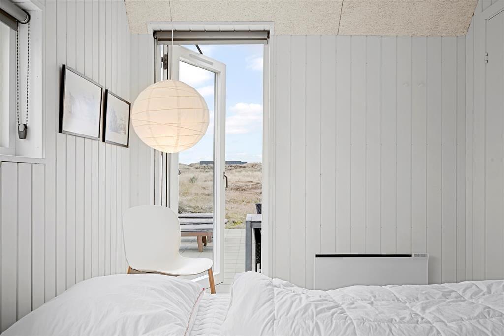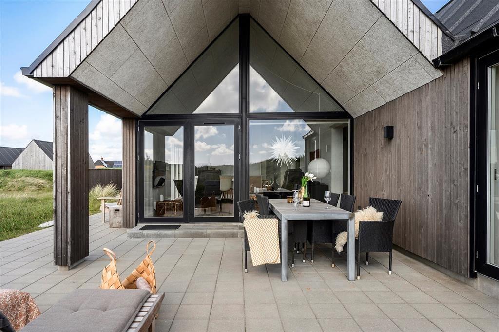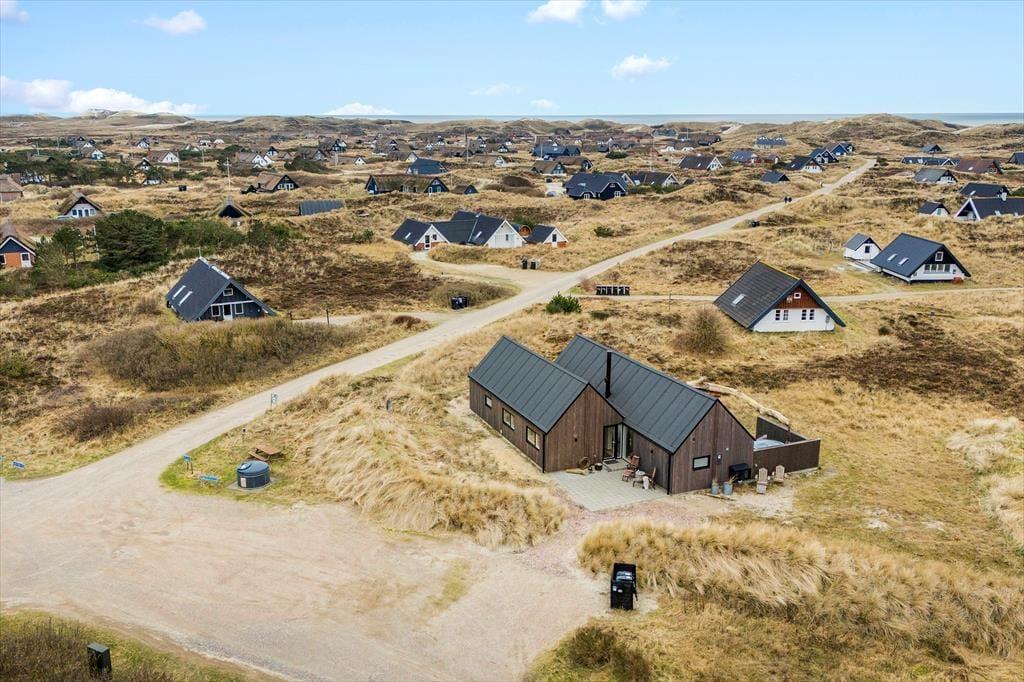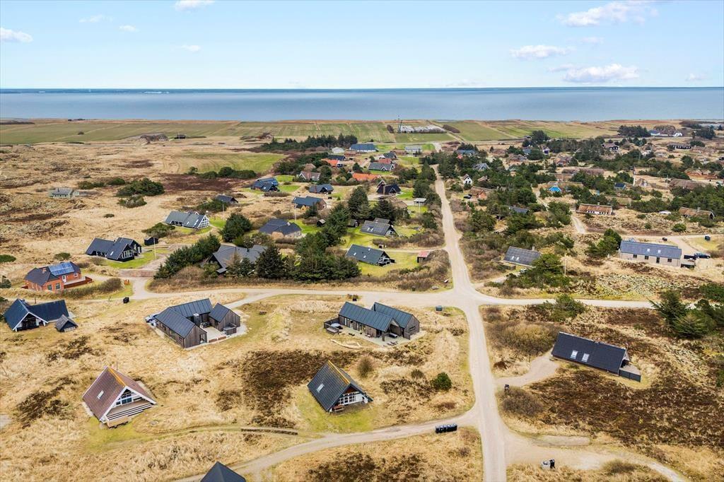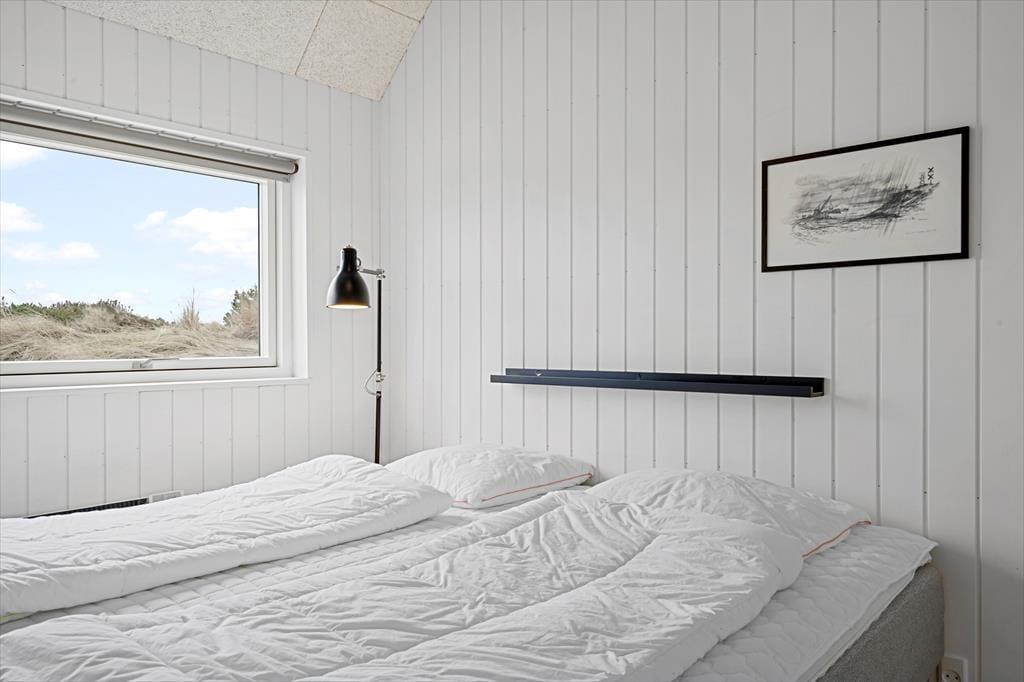 Inde bag den flotte træfacade er rummene lyse og indbydende, og der er god plads, så du kan oplagt invitere venner eller familie med på ferie. Uanset hvem dit selskab er, kan I se frem til nogle herlige dage, hvor I bare slapper af og nyder livet. Brændeovnen ved stuens sofa er perfekt til eventuelle kølige dage, og i det åbne og veludstyrede køkken får I rig mulighed for at lave alle jeres yndlingsretter, lige meget om det er en simpel omgang pasta eller noget mere avanceret. Spisepladsen er et af de steder, hvor I har et kønt kig ud over klitterne og himlens forbipasserende skyer – når I altså ikke sover længe på de tre soveværelser eller slapper af i saunaen på det ene badeværelse.