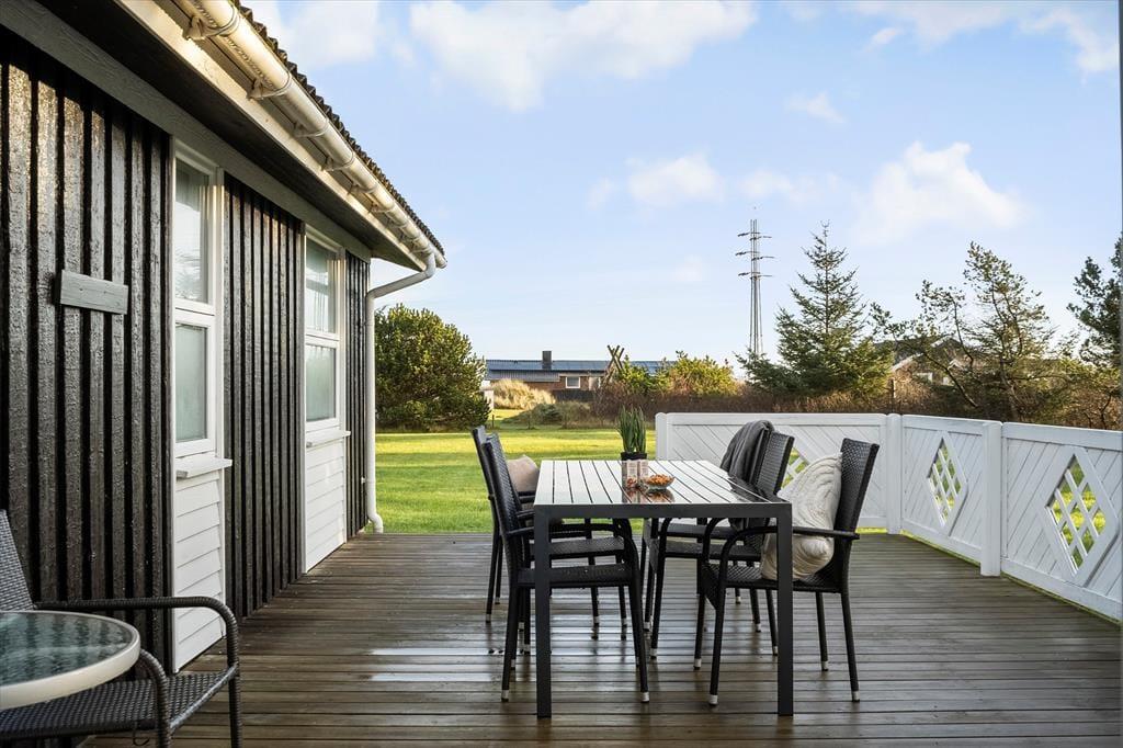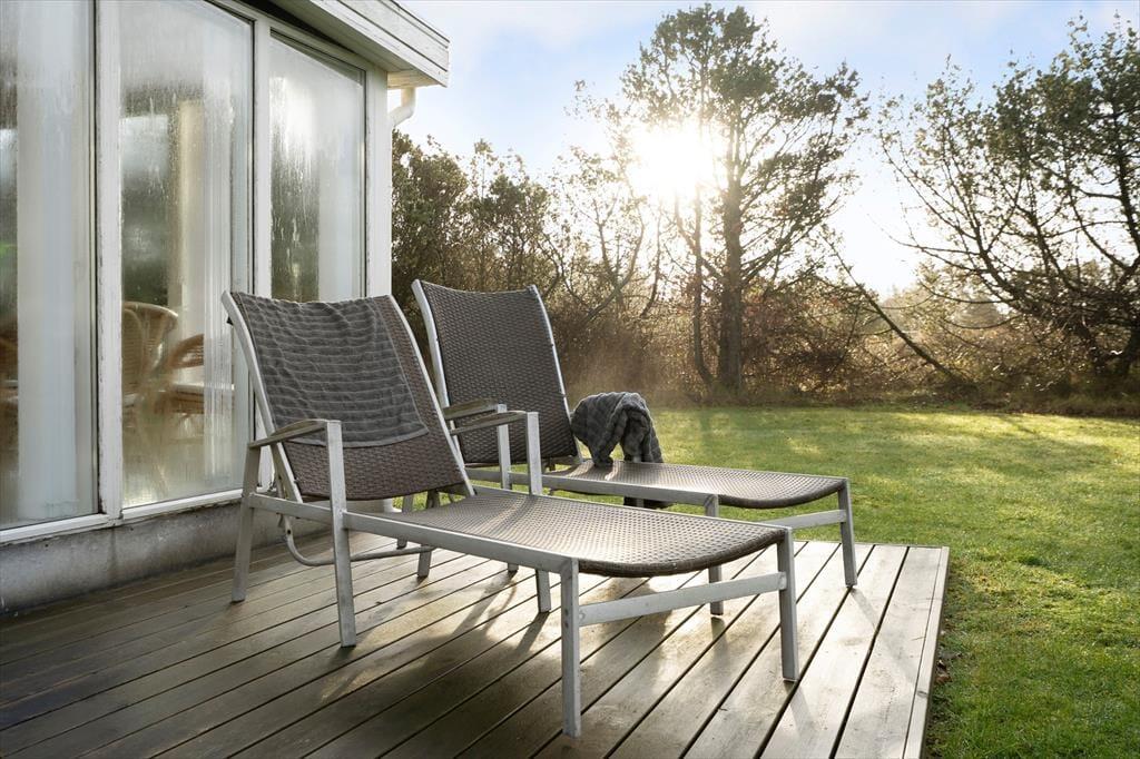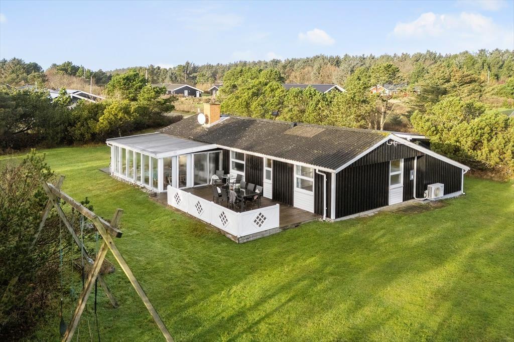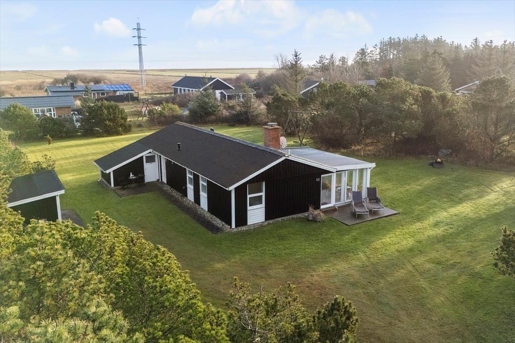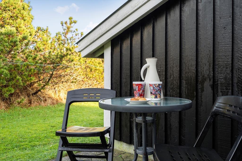 Udenfor venter en stor og ugeneret naturgrund, der virkelig gør noget særligt for ferieoplevelsen. Grunden er lukket godt af med træer og buske, som både skærmer for vinden og giver jer en helt privat oase, hvor I kan nyde ferien i jeres eget tempo. Vi oplever ofte, at gæster fremhæver netop denne type grund som noget af det, der gør ferien ekstra afslappende – og her forstår vi dem fuldt ud.