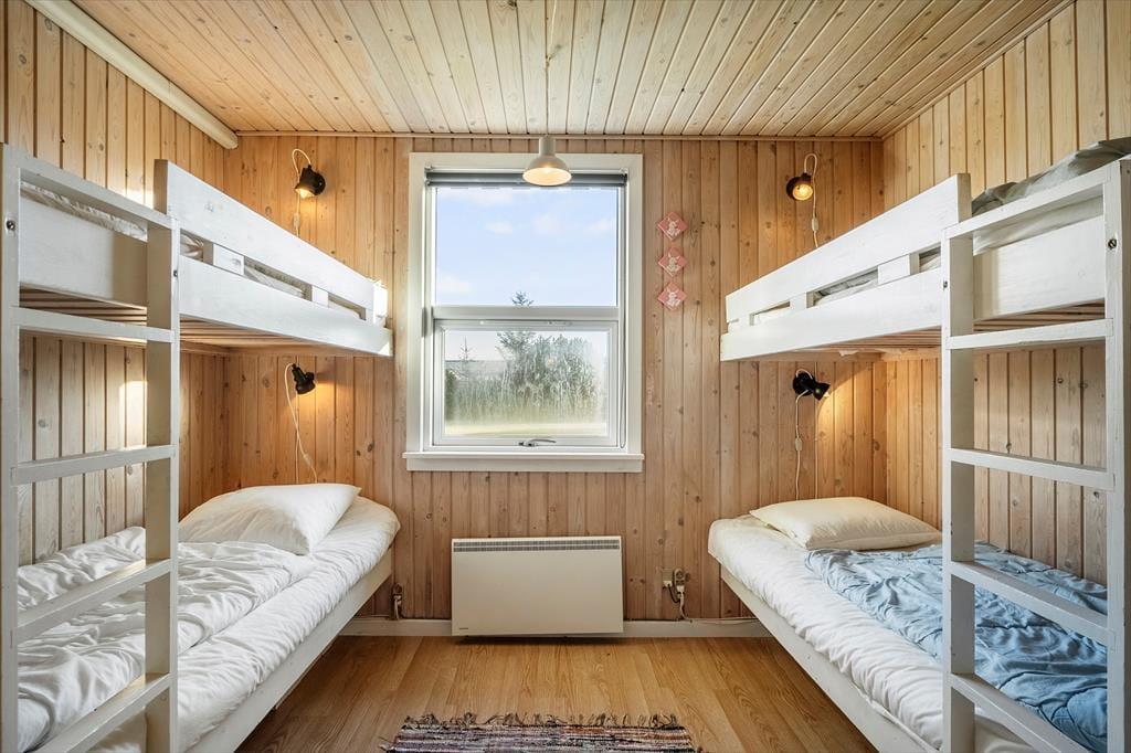 Vi er særligt begejstrede for den store udestue, som virkelig er husets hjerte. Lyset strømmer ind gennem de mange vinduer, og udsigten ud over den grønne have giver jer en følelse af at være helt tæt på naturen – selv på kølige eller regnfulde dage. For børnene er soveværelset med de to køjesenge et sikkert hit; her kan de bygge huler, fortælle historier eller bare falde i søvn til lyden af vinden udenfor. Indenfor er rammen sat for en ferie fyldt med nærvær og afslapning.