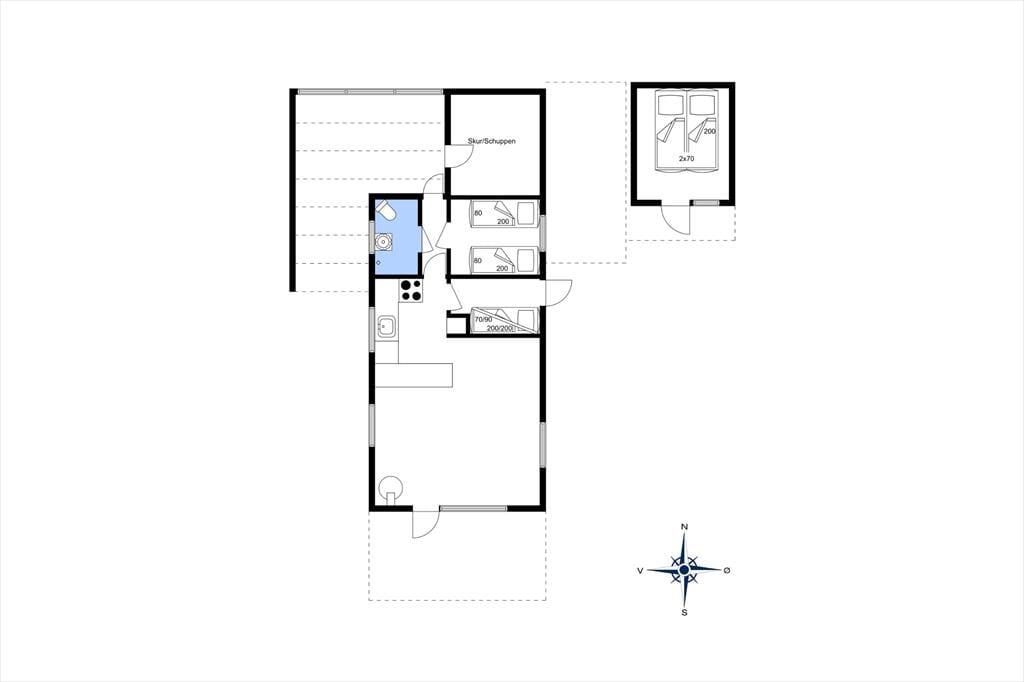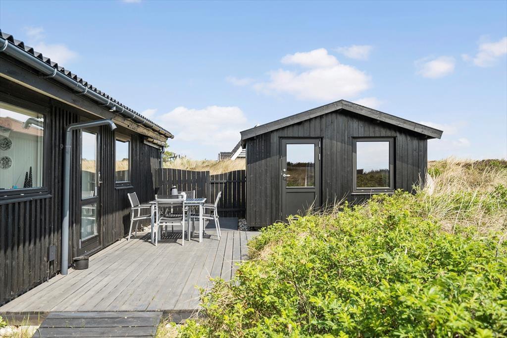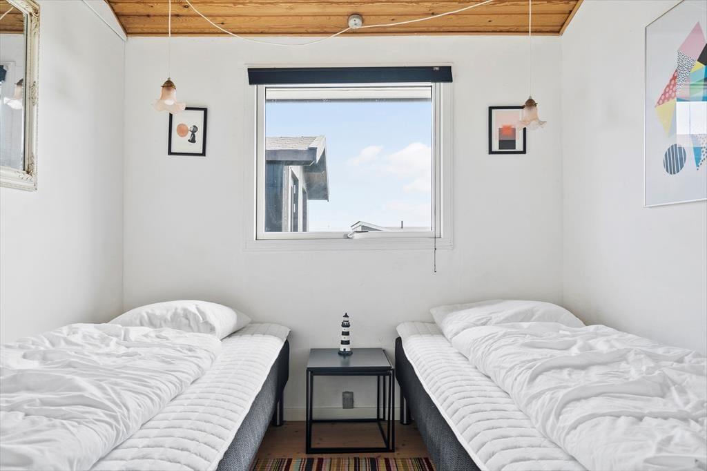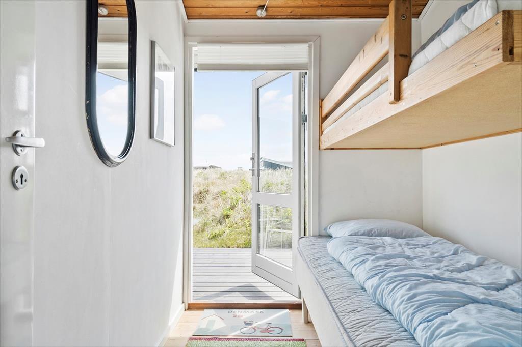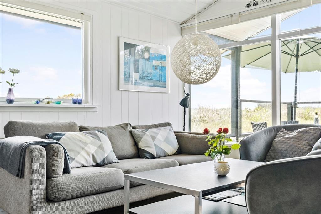 Det hyggelige sommerhus er indrettet med to gode soveværelser, der giver sovepladser til fire personer. Fra husets entré/fordelingsgang har I direkte adgang til badeværelset, der er indrettet med bruseniche og gulvvarme. Derudover byder sommerhuset på et stemningsfuldt opholdsrum, hvor køkkenet og stuen glider i ét. Køkkenet er moderne og veludrustet, og opvaskemaskinen gør det nemt at rydde af efter en veloverstået middag. Stuen er indrettet med spisebord og sofaarrangement, og her kan I hygge jer med lækre måltider og filmaftener, mens ilden knitrer i brændeovnen. I kan også samles om brætspil ved spisebordet, krybe under et lunt tæppe med en god bog, bruge iPad’en via feriehusets wi-fi og nyde den skønne udsigt til marehalmen og det bølgende klitlandskab.