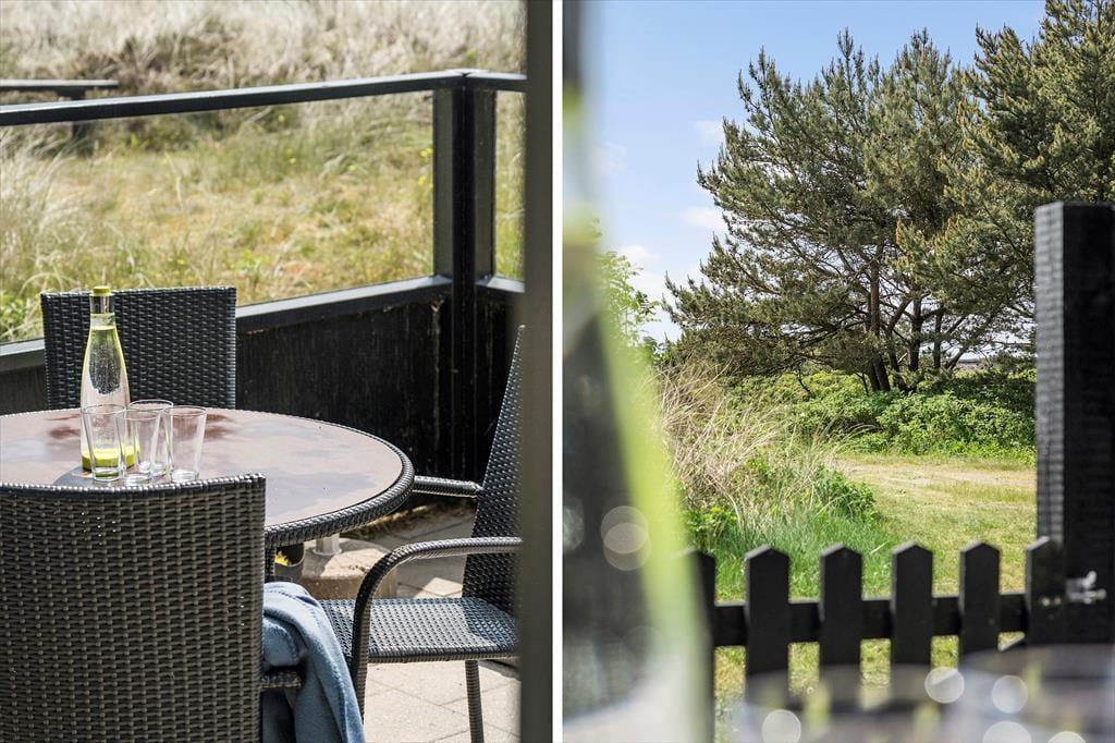 Mod øst findes et hyggeligt terrassemiljø, hvor morgenkaffen kan nydes i dagens første sol. Den sydvendte terrasse er stedet, hvor sommerens frokoster kan serveres i solen, og den er delvist overdækket og har en læmur, som giver læ for vinden. Mod nordvest har I glæde af en overdækket terrasse, der fungerer som en udestue, hvor I kan finde ly for vinden, og hvor I kan hygge, hvis sommeraftenerne skulle blive kølige. Den store naturgrund giver jer masser af plads og albuerum, og den lille bænk er et skønt sted at nyde solnedgangen.