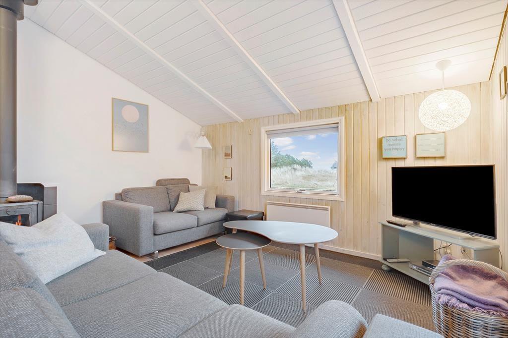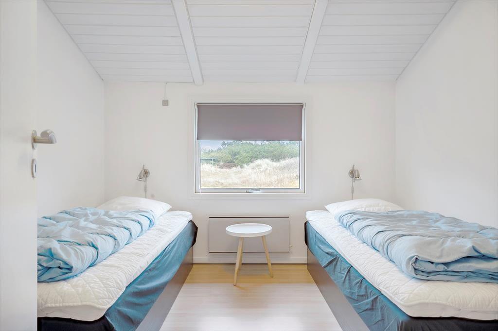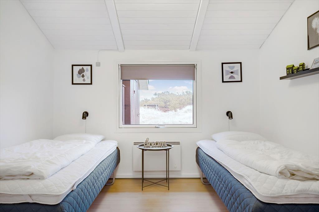 Med tre soveværelser og sengepladser til i alt seks personer giver dette hyggelige sommerhus jer en god ramme om feriedagene med familien eller vennerne. Her kan I nyde livet i den velindrettede stue, på husets ugenerede, solvendte terrasser eller ligefrem på naturgrundens klittop med udsigt til Ringkøbing Fjord.