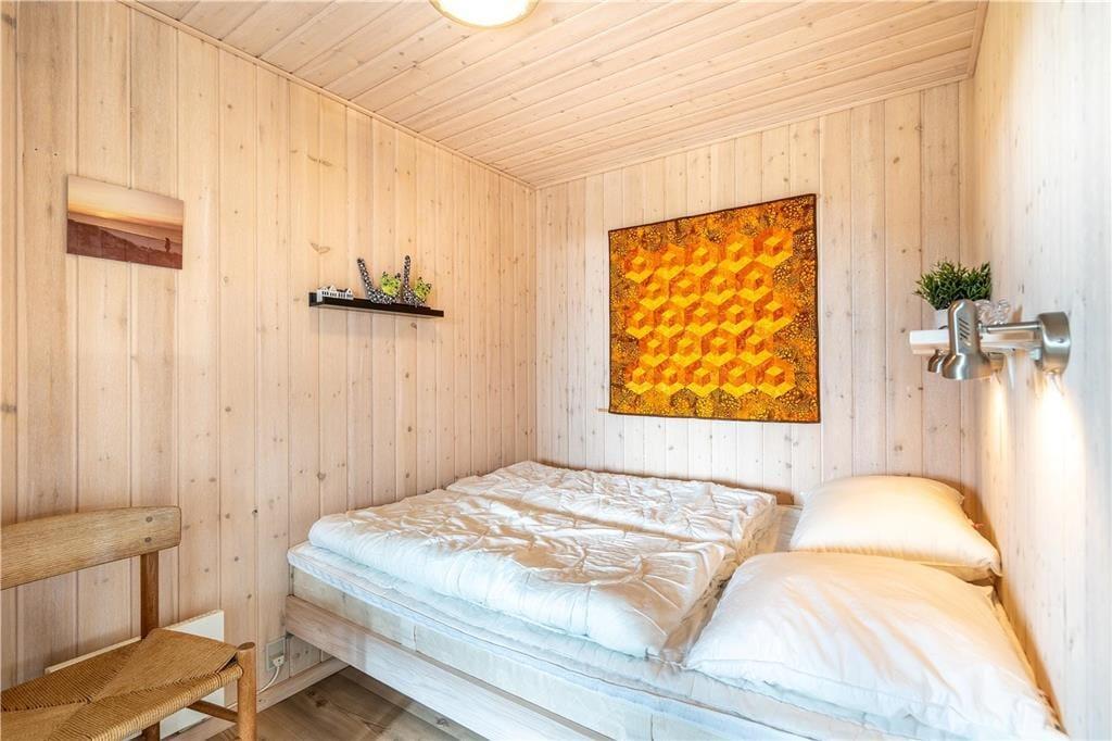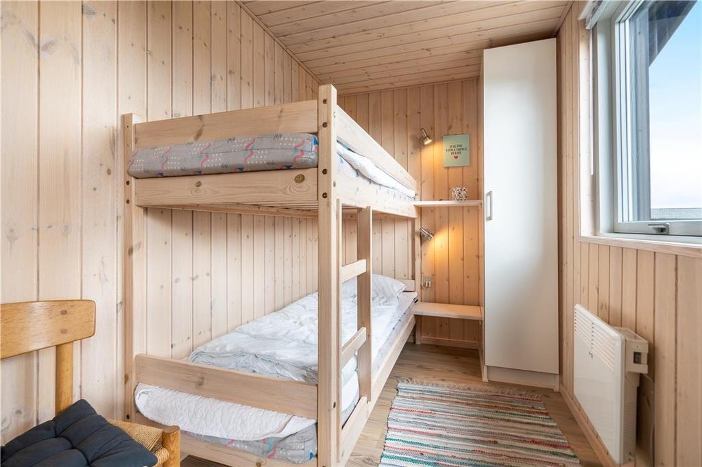 Sommerhuset er indrettet med tre soveværelser, der giver plads til seks personer. Badeværelset er indrettet med bruseniche, gulvvarme samt vaskemaskine og tørretumbler, og saunaen giver feriedagene ekstra wellnessfaktor. Fra entréen har I også adgang til et åbent opholdsrum, hvor feriedagene kan bruges på hyggeligt samvær med brætspil og varm te, fælles madlavning og gode måltider – samt hyggelige filmaftener, mens ilden knitrer i pejseindsatsen. Tv’et har Chromecast, her er også wi-fi, og varmepumpen sørger for at holde en behagelig temperatur. Ved huset har I adgang til et lille anneks, og her finder I blandt andet et babybadekar, en højstol, en babyseng samt ekstra havemøbler.