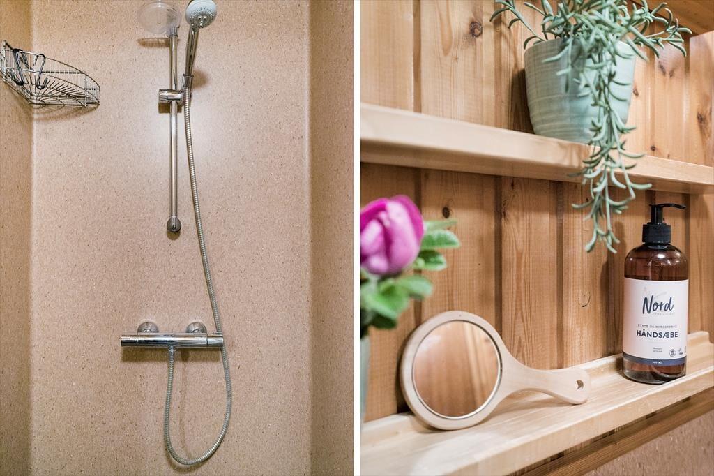 Smuk natur og fredfyldte omgivelser er nogle af de simple, men udsøgte glæder, I får her på Stormkløven 9. Med sin klassiske indretning og retrofornemmelse passer træhuset perfekt ind i landskabet, for selvom der er god wi-fi-forbindelse og fladskærms-tv indenfor, er den originale charme fint bevaret. Det åbne køkken er veludstyret, så I har gode arbejdsvilkår, når der skal laves mad – for eksempel kan I lave kaffe af friskmalede bønner, inden den står på sofahygge i stuen nær brændeovnen. Det er også dejligt at kunne samles omkring spisebordet til et spil ludo eller yatzy, hvis aftenen ikke foregår i en god lænestol med en spændende roman. På de to soveværelser er der skabsplads og sengepladser til i alt fire personer, og et simpelt badeværelse med bruseniche og gulvvarme fuldender planløsningen.