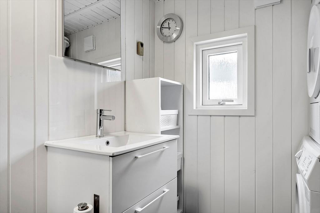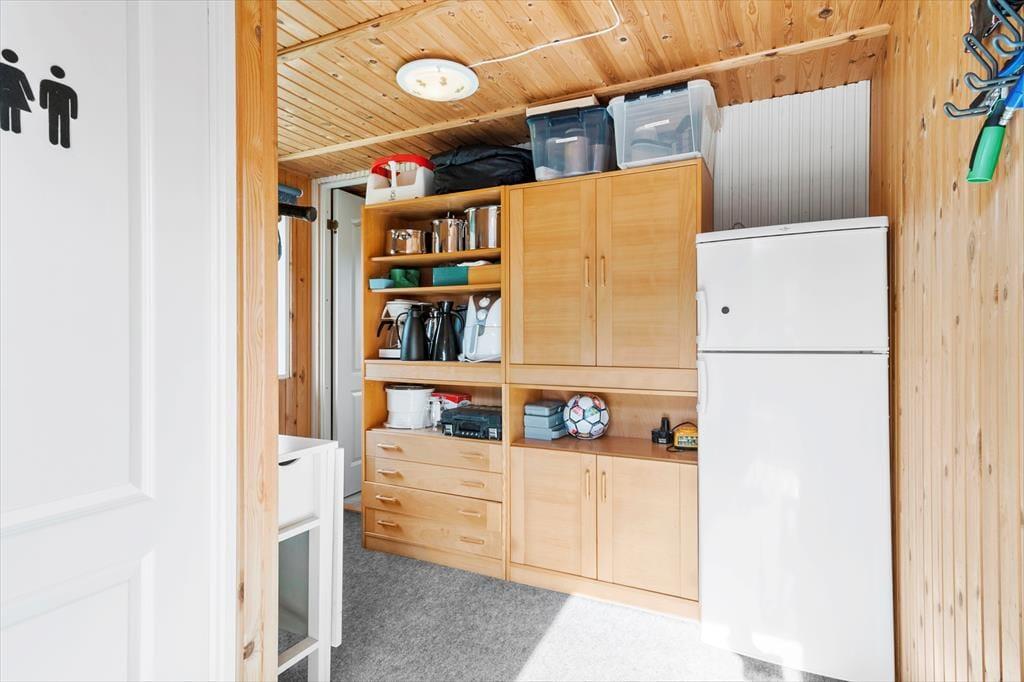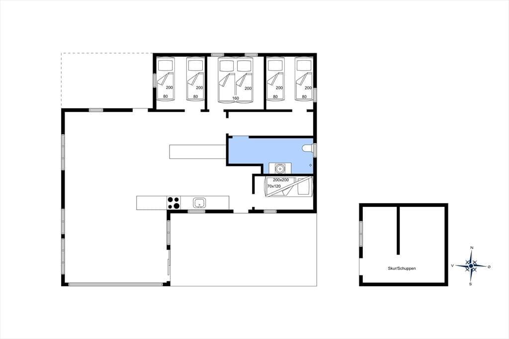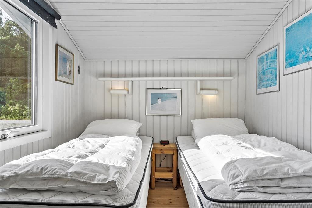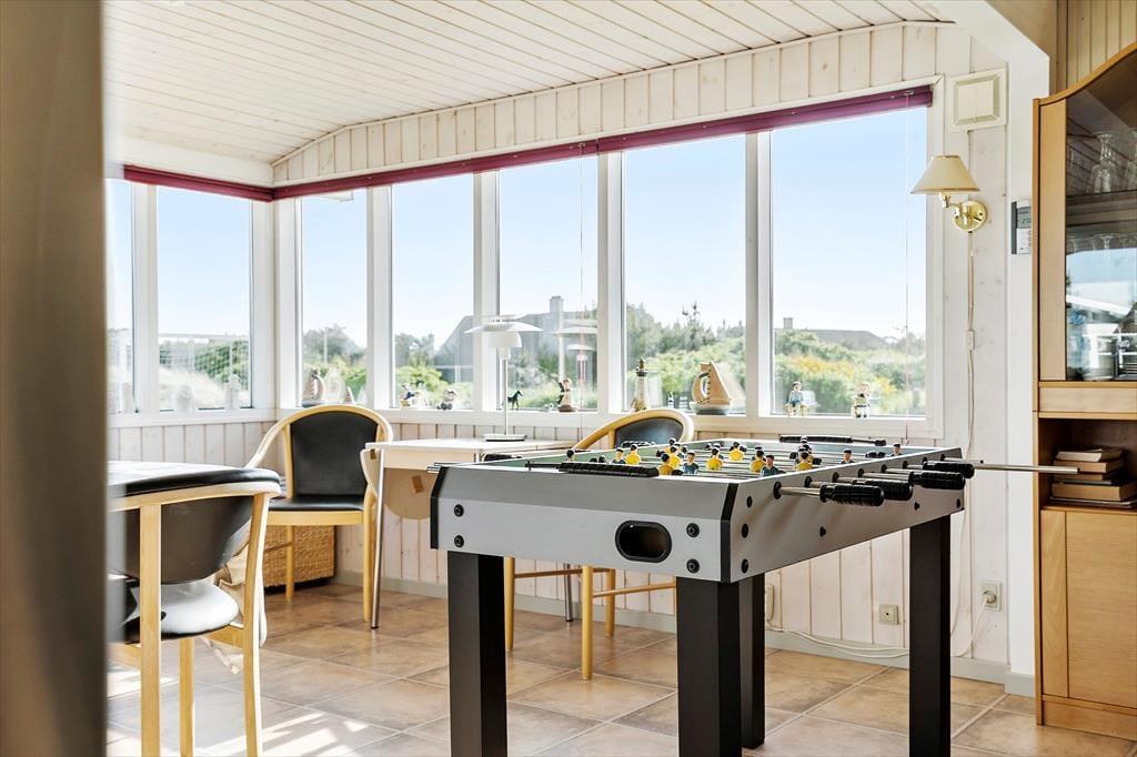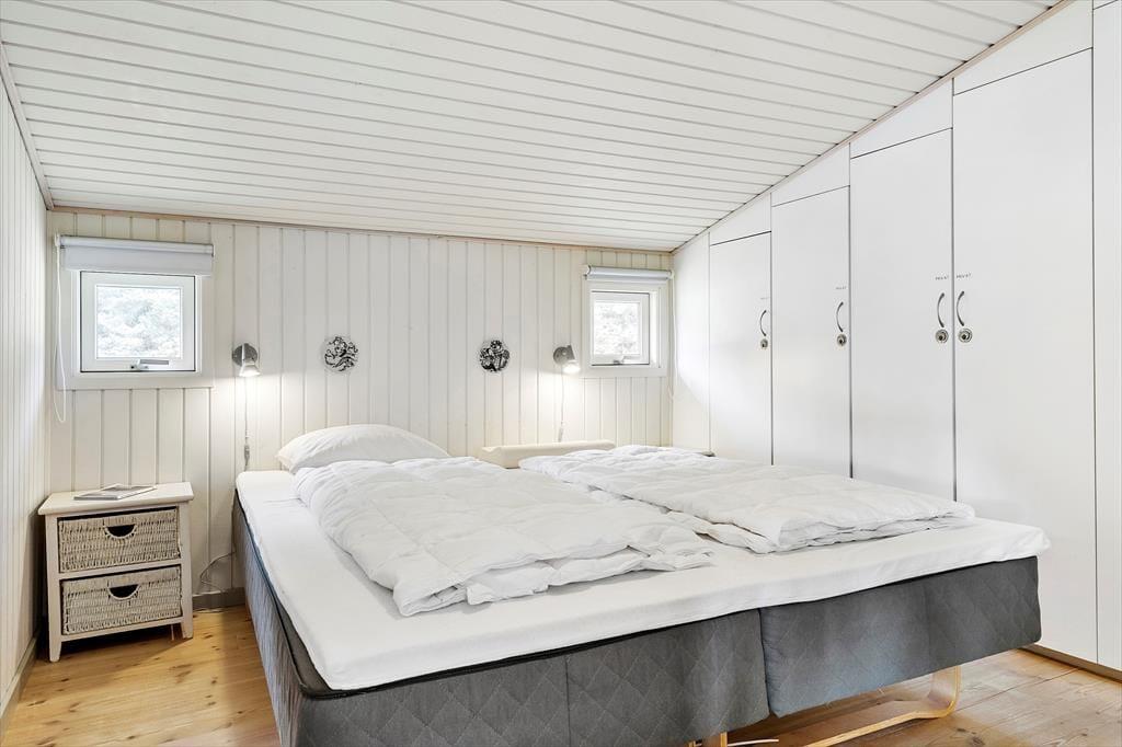 Sommerhuset er ikke bare rummeligt, men har også en glimrende planløsning, så I kan sagtens samles otte personer i huset. To børnefamilier kan oplagt mødes her, for der er et stort opholdsrum, fire soveværelser og et badeværelse at gøre godt med i selve sommerhuset, mens annekset byder på endnu et soveværelse. Annekset byder for øvrigt på et ekstra badeværelse, der er udstyret med vaskemaskine og tørretumbler, så det er muligt at friske feriegarderoben eller strandhåndklæderne op undervejs. I sommerhusets store opholdsrum ligger køkken og stue i åben forbindelse, og derfor kan I nemt nyde hinandens selskab, også selvom der simultant er madlavning, brætspil og sofaafslapning på programmet. Ved køkkenøen er der højstole, hvor I kan få en forfriskning inden aftensmaden, og stuens lange spisebord er placeret med udsigt til den velplejede grund.