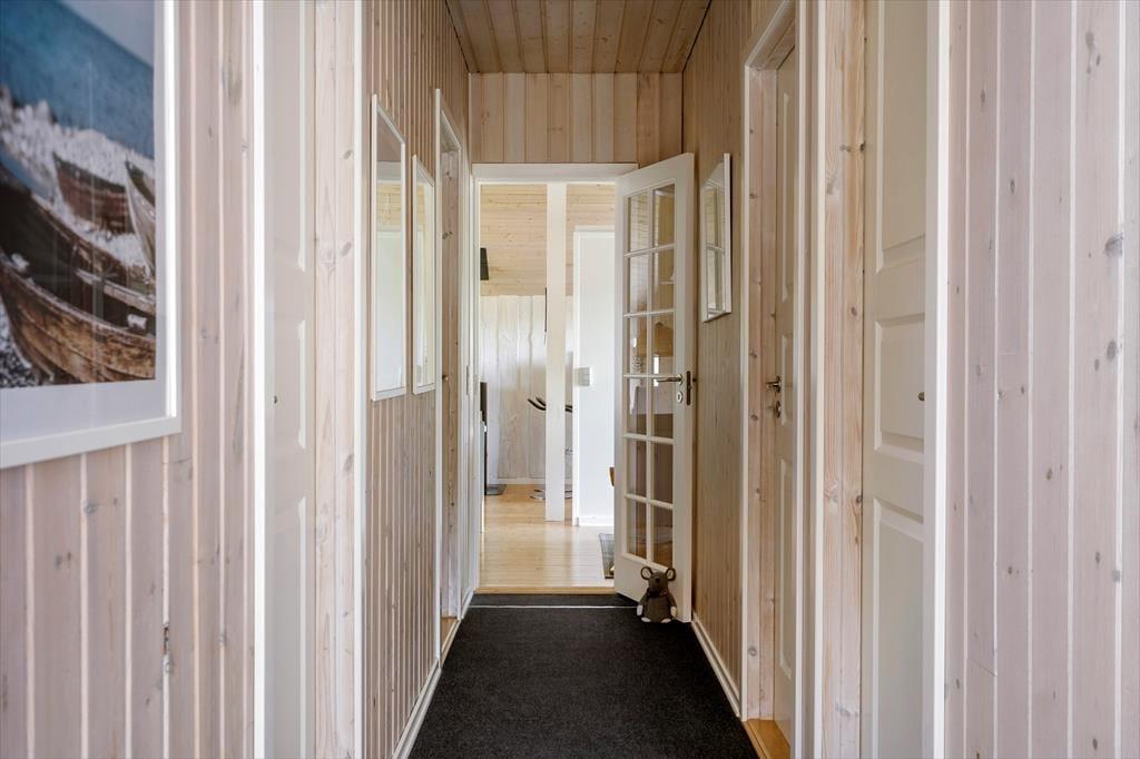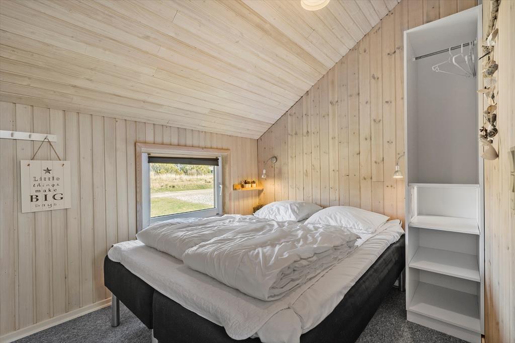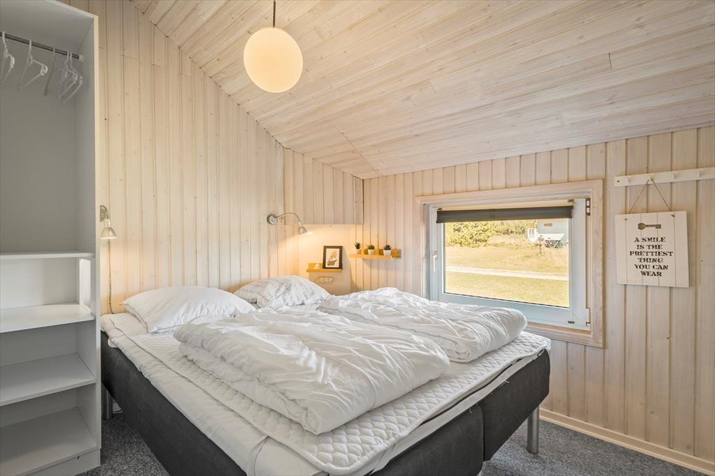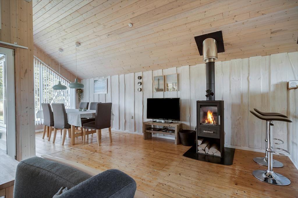 Sommerhuset, der måler 109 m2 og har en god planløsning til fem personer, byder jer velkommen inden døre i en stor og tjekket entré. Her er der både vaskesøjle, et ovenlysvindue og hyggeskabende nips, og det er et glimrende eksempel på, hvor tjekket og indbydende sommerhuset i det hele taget er indrettet. Husets tre gode soveværelser er alle udstyret med komfortable senge og garderobeskabe, og i forlængelse af det lyse brusebadeværelse ligger en sauna, hvor I kan slappe af, når I vender hjem fra dagens udflugter. Det er også skønt at opholde sig i stuen, der er indrettet med bløde siddemøbler, spisebord, brændeovn og fladskærms-tv med både parabol, dvd-afspiller og Chromecast. Et veludstyret køkken ligger i åben forbindelse med stuen, og de store glaspartier sørger ikke bare for et dejligt lysindfald, men giver jer også direkte adgang til terrassen.