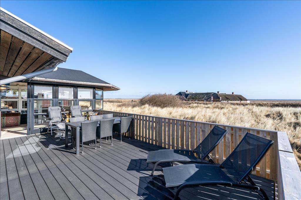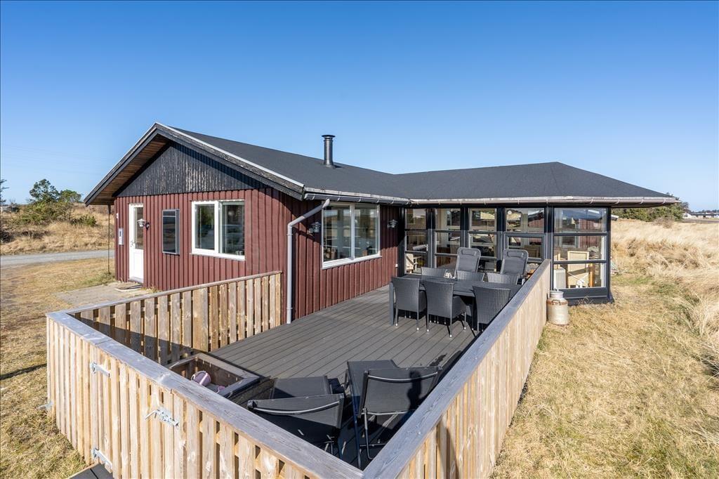 Saunaen, havestuen og udsigten til Ringkøbing Fjord er kun lidt af det, der bør fremhæves ved dette velindrettede sommerhus, der ligger i Klegod på Holmsland Klit.