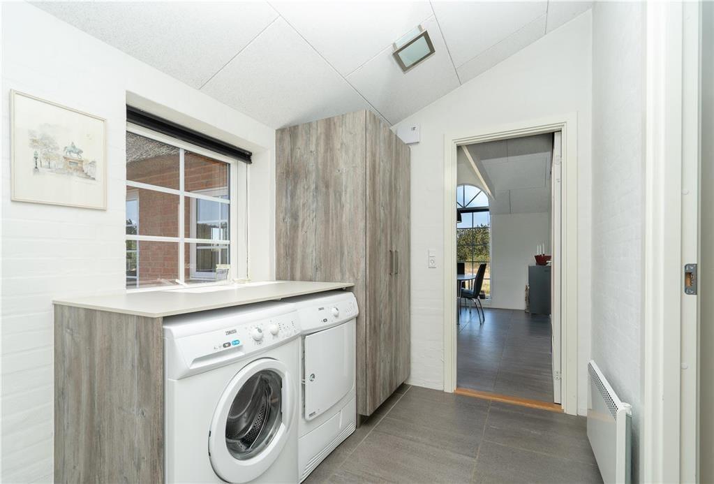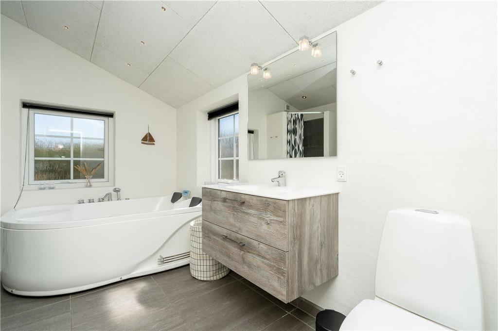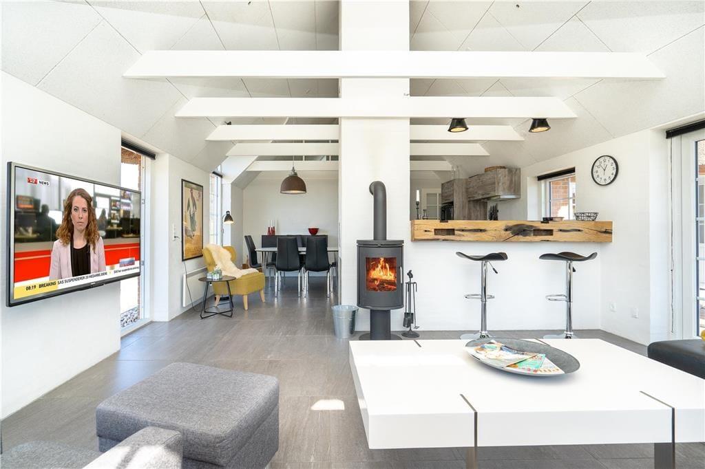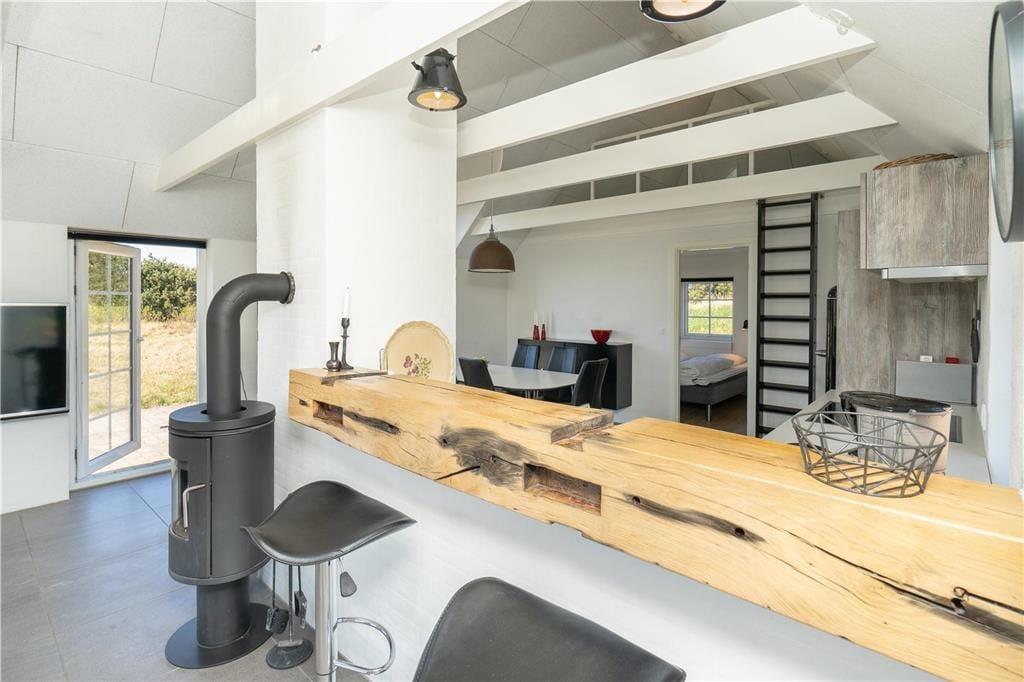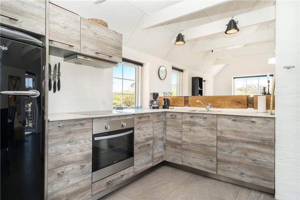 Under opførelsen i 2014 blev det stråtækte rødstenshus udstyret med alle bekvemmeligheder – inklusiv et spabad og en sauna, der gør ferielivet ekstra luksuriøst. Begge dele finder I på det største af husets to badeværelser, mens det andet rummer en dobbelt bruser med rainshower, så det har bestemt også wellnessfaktor. Sommerhusets tre store soveværelser er indrettet med gode boksmadrasser og garderobeskabe, og den rummelige entré er udstyret med vaskemaskine og tørretumbler. Sidst, men ikke mindst, er der opholdsafdelingen, som består af stue og køkken i åben forbindelse. Med loft til kip og fritlagte hanebjælker er her en skøn rumfornemmelse, og brændeovnen bidrager med både varme og hyggestemning. Hvis alle ikke er i gang med madlavningen i det veludstyrede køkken, kan dele af familien slå sig ned ved disken og holde kokken med selskab – med mindre I er mere i humør til sofaafslapning med en film på fladskærmen. Der er for øvrigt gulvvarme i opholdsafdelingen og på de to badeværelser, og en energivenlig varmepumpe har kølefunktion til de hede sommerdage.