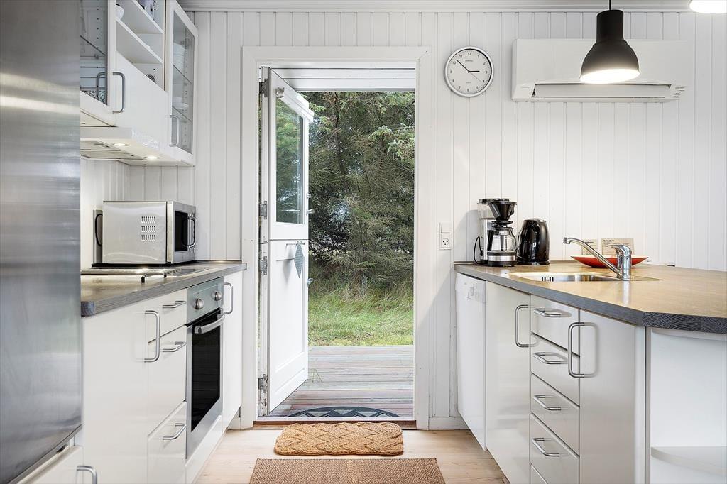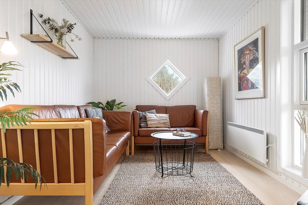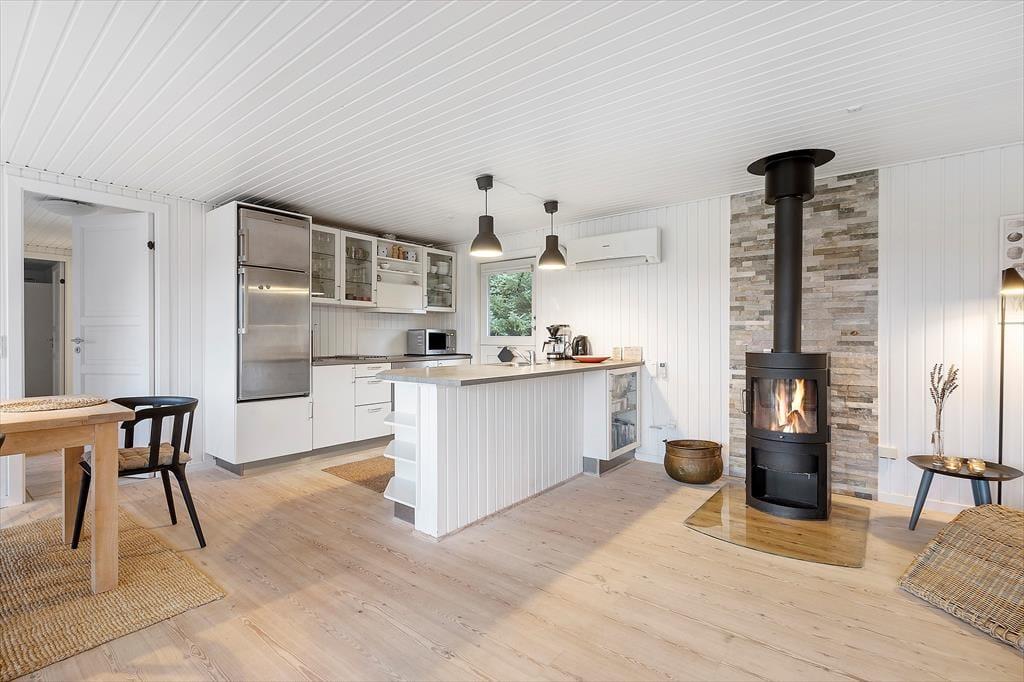 I kan se frem til mange skønne stunder inden døre i det 94 m2 store sommerhus. I 2021 blev badeværelset moderniseret, så her er der ikke bare bruser og vaskemaskine, men også et lækkert badekar og en dejlig sauna –hvilket er perfekt til en rolig eftermiddag eller aften, hvor der bare er afslapning på ferieprogrammet. Soveværelser er der tre af, og de har i alt sengepladser til seks personer, og når der er udsigt til fælles feriehygge, kan I samles i opholdsafdelingen, der består af køkken og stue i åben forbindelse. Køkkenet er godt indrettet, og I har fint med plads til at lave mad sammen, når det ikke nærmere er tid til at hygge nær brændeovnen eller se tv i sofaafdelingen. Bemærk for øvrigt, at i forhold til resten af ferieboligen er der et enkelt trin ned til det ene soveværelse såvel som til tv-stuen.