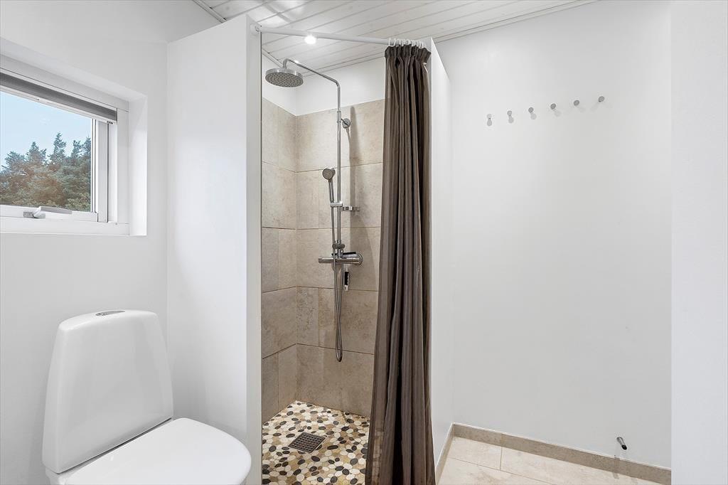 Det dejlige sommerhus ligger godt tilbagetrukket på en let kuperet naturgrund på hele 2000 m2. I har god plads til at lege og slappe af, og de små klitter såvel som træbeplantningen sørger for at skærme terrassearealerne godt af. En stor terrasse mod sydvest er helt aflukket og delvist overdækket, så her kan både små børn og hunde lege i trygge rammer. Derudover er der flere åbne terrasser, hvor I kan sole jer og nyde ferielivet, mens børnene leger eller spiller bold.