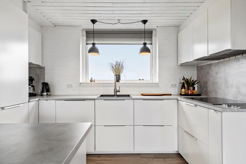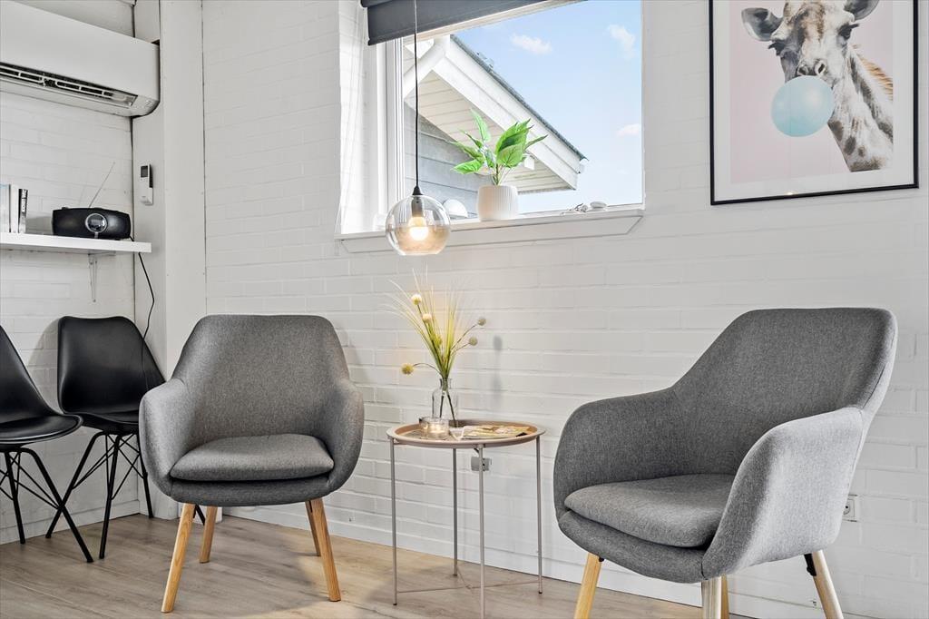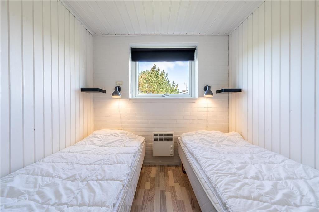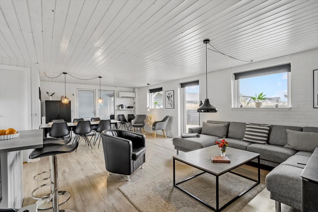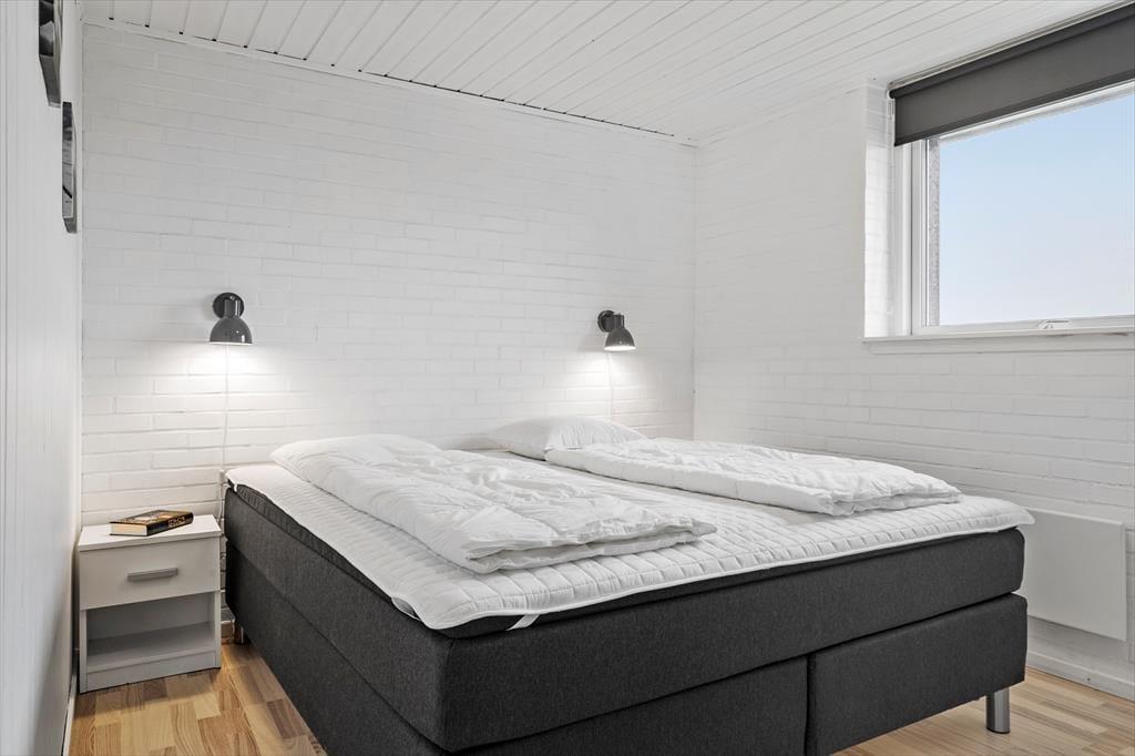 Den dejlige poolafdeling er langt fra den eneste kvalitet ved sommerhuset. Inden døre kan I nyde udsigten til Ringkøbing Fjord – blandt andet fra køkkenet og den øverste bænk i saunaen – mens selve huset har et lyst og indbydende indre efter seneste renovering. Køkken og bad er udskiftet i 2022, så I får en god og moderne ramme om både madlavningen og morgenbrusebadet. Køkkenet ligger i åben forbindelse med stuen, hvor I kan hygge jer i sofaen nær brændeovnen eller samles til lækre måltider omkring spisebordet. Det stilfuldt indrettede rum er udstyret med fladskærms-tv med Chromecast, og der er god wi-fi-forbindelse, hvis I vil surfe på jeres egne devices. De fire soveværelser har sengepladser til otte personer, og på det største af husets to badeværelser er der vaskemaskine og tørretumbler. Det andet badeværelse ligger som del af wellnessafdelingen, som lokker med et topersoners spabad, en skøn sauna og en 15 m2 stor swimmingpool.