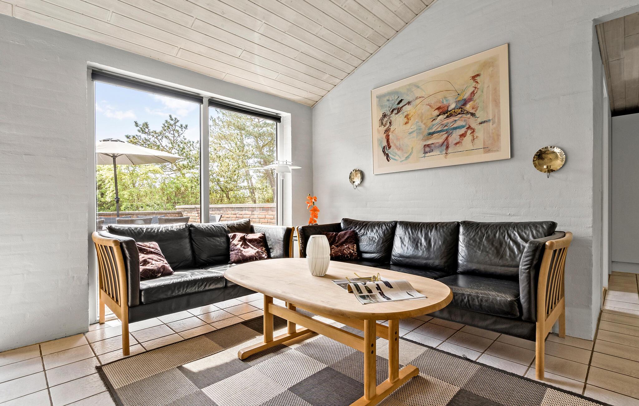 Velkommen til dette indbydende og rummelige hus, som ligger tæt på stranden og byder på masser af plads til en pause fra hverdagen med hele familien. Slap af i de hjemligt indrettede rum, hvor det smukke lysindfald gennem gulv-til-loft vinduerne sørger for en behagelig charme. Glæd jer til hyggelige aftener, når I kommer tilbage fra jeres udflugter eller efter en dejlig dag på stranden. Svøm i husets egen pool, og hyg jer ved brændeovnen senere, eller slap af i saunaen.