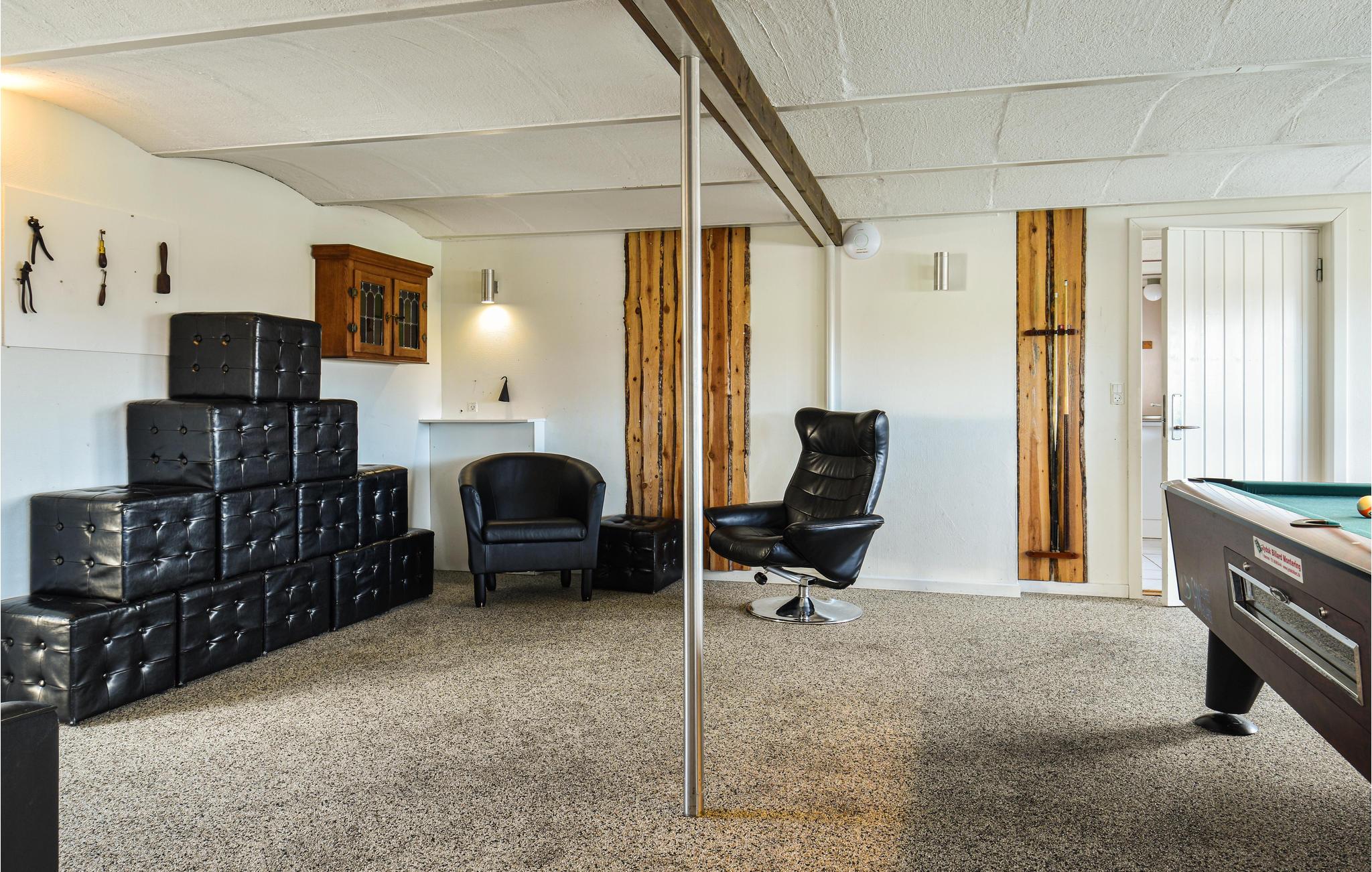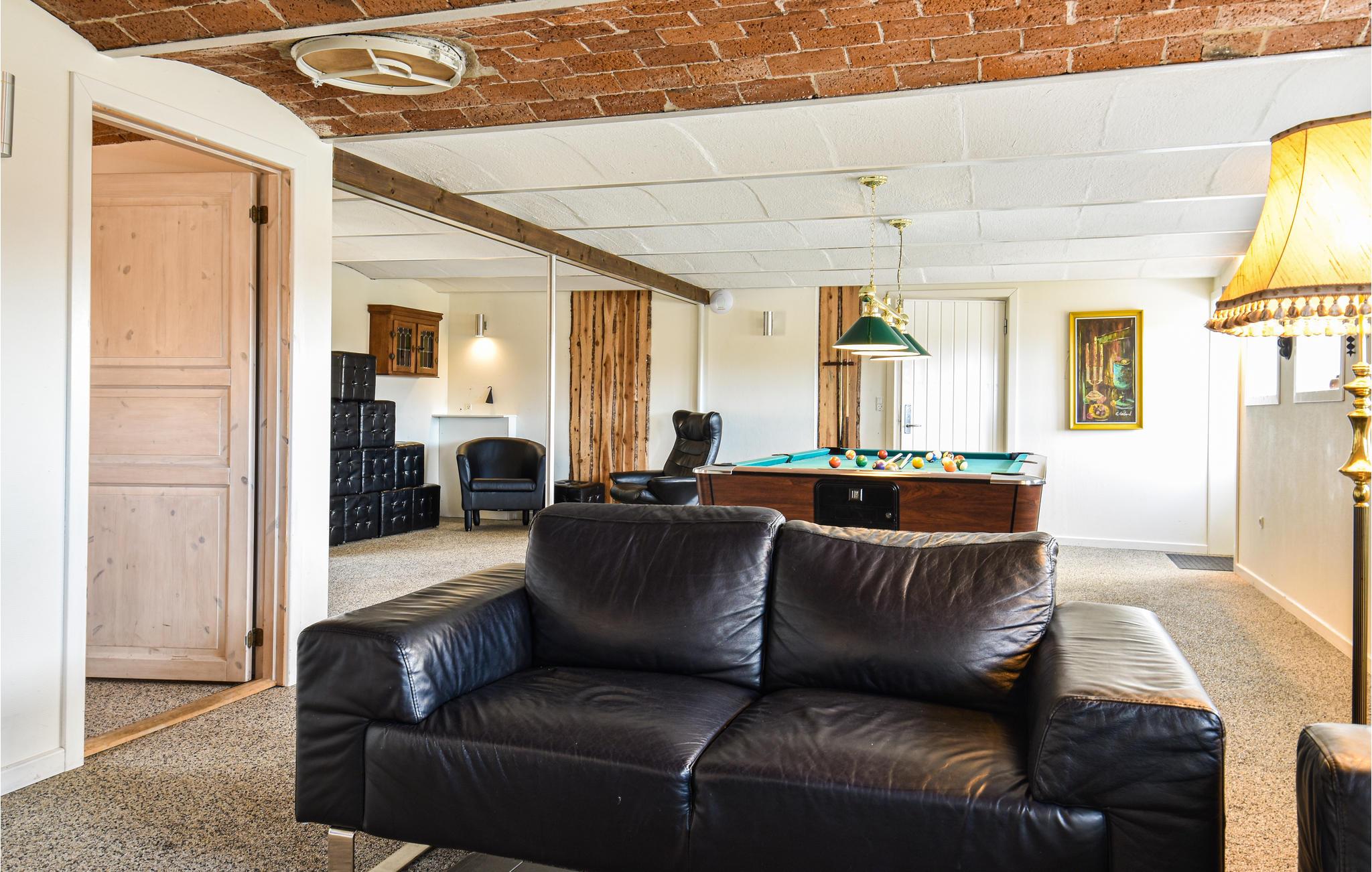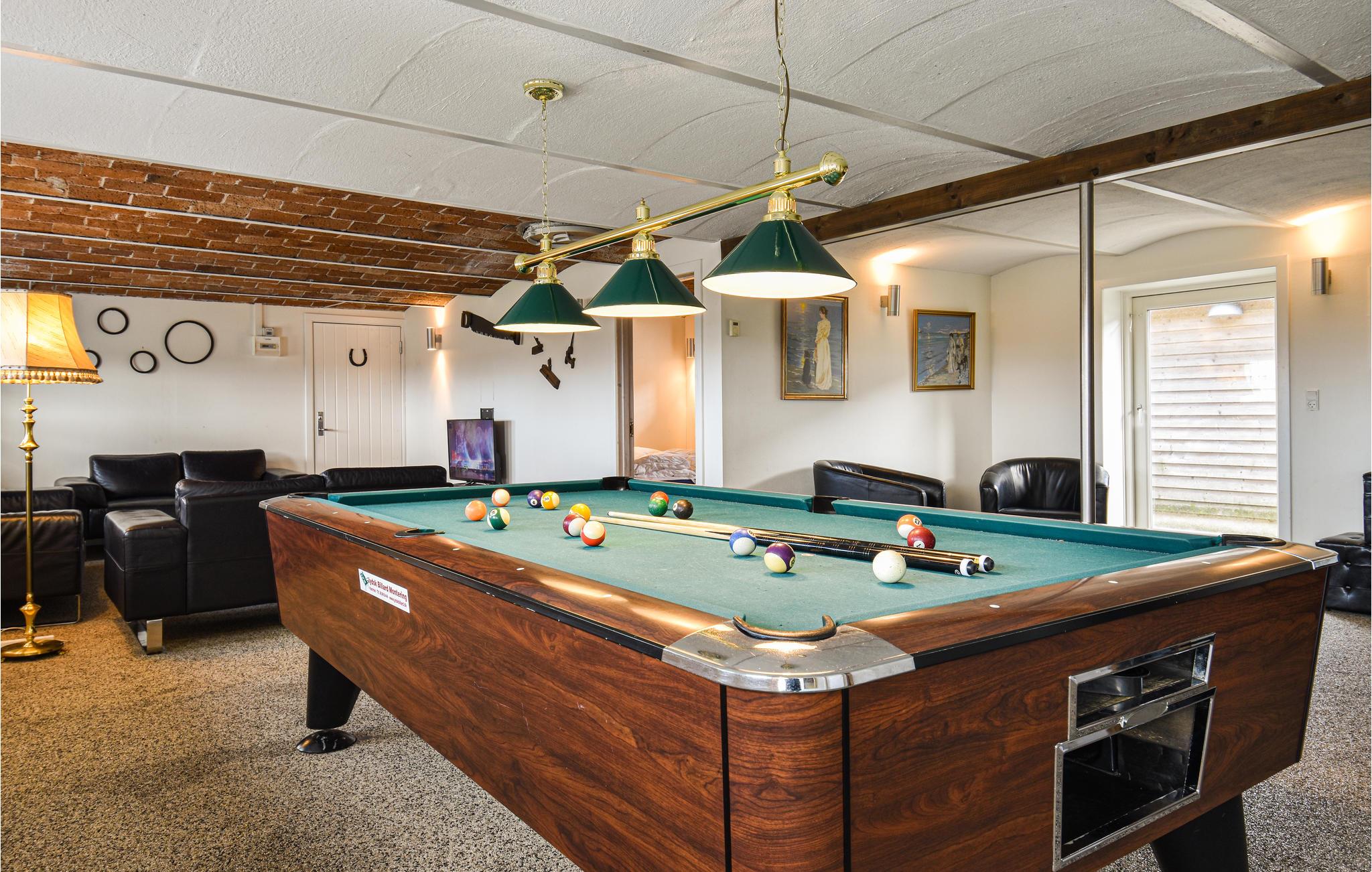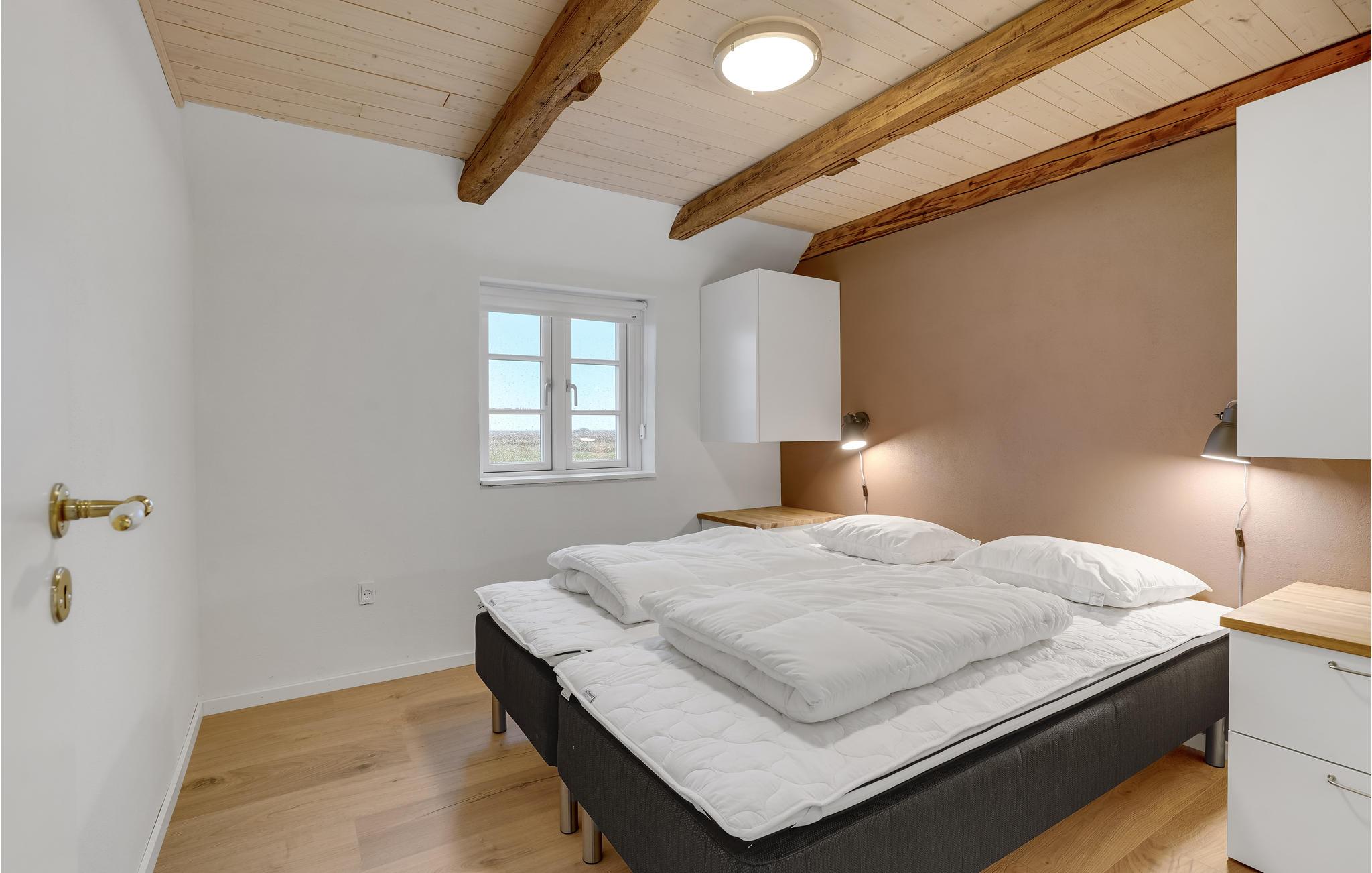 Tæt på Ringkøbing Fjord ligger denne renoverede landejendom. Huset er delt op i et hovedhus samt 2 seperate soveafdelinger (alle 3 sammenhængende men ikke med adgang indefra. Adgang via terrassen til soveafdelingerne). I hovedhuset finder I aktivitetsrummet med bl.a. billardbord og tv-hjørne med behagelige sofaer. Fra aktivitetsrummet er der adgang til det ene soveværelse. I gangen er der vaskemaskine og tørretumbler. Køkkenet og spise/opholdsstuen, ligger ligeledes i hovedhuset, med et stort langbord med plads til alle husets gæster. Loftet er åbnet op til kip, så I får et fantastisk lyst og åbent rum, for enden er der store vinduespartier som både giver lys til rummet samt en skøn udsigt over de åbne marker og helt ned til Ringkøbing Fjord - I kan opleve nogle fantastiske solopgange her. Endvidere findes et hyggehjørne med lænestole samt en sofa i forlængelse af spiseområdet. I køkkenet er der 2 ovne, stort køleskab og fryser, så der er plads og mulighed for at lave mad til mange mennesker. I hovedhuset er der ydeligere 2 soveværelser samt et stort badeværelse. Fra spiseområdet er der udgang til terrassen, hvoraf der er adgang til de 2 separate soveafdelinger.