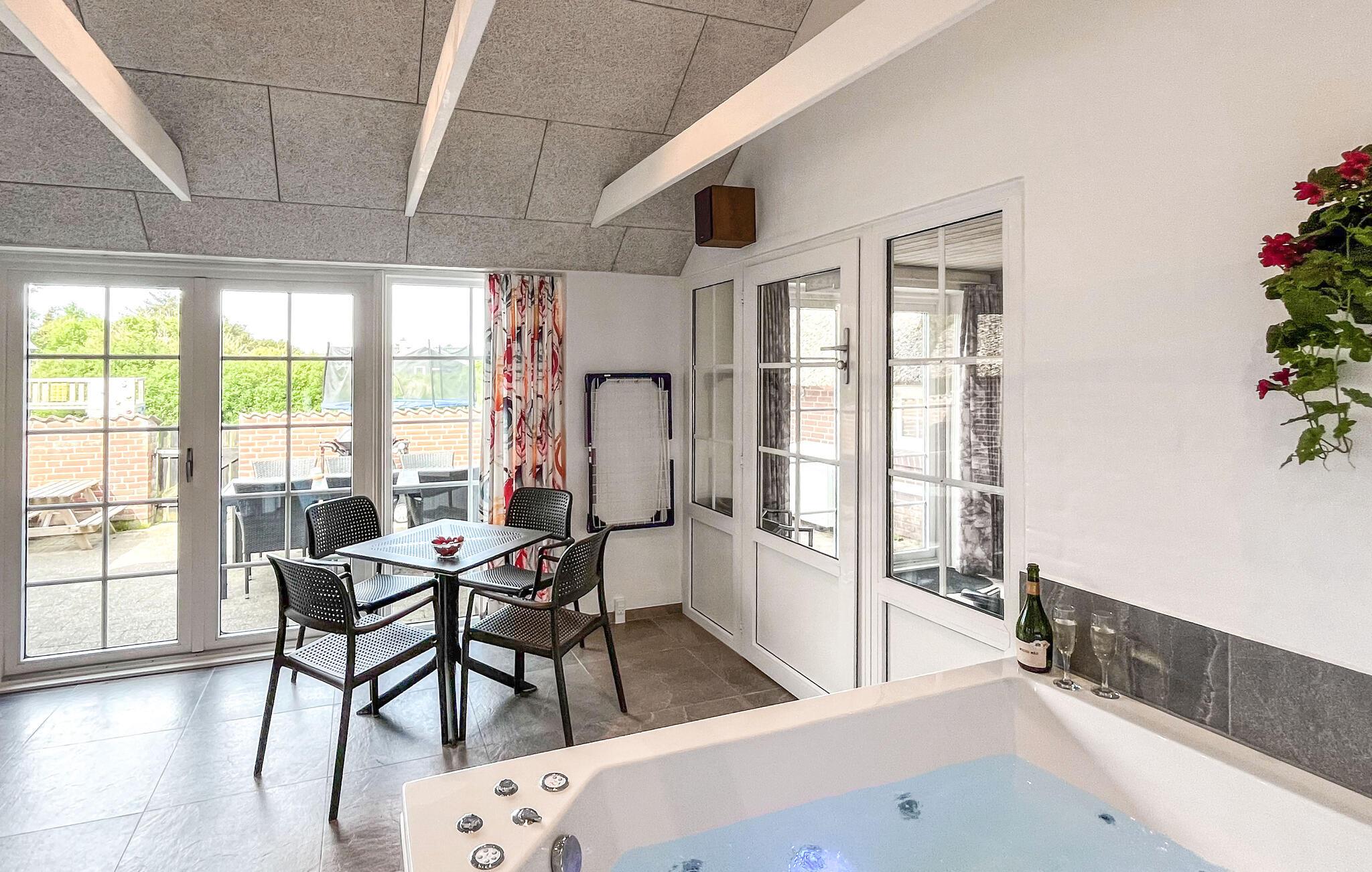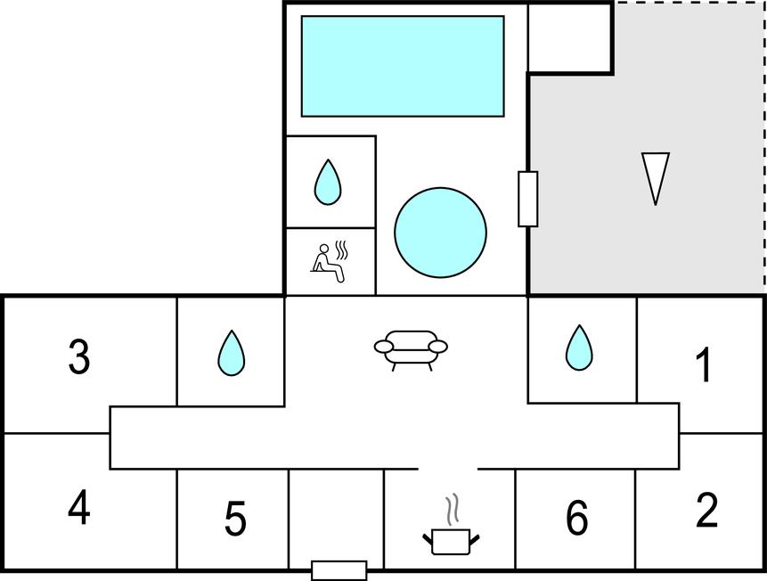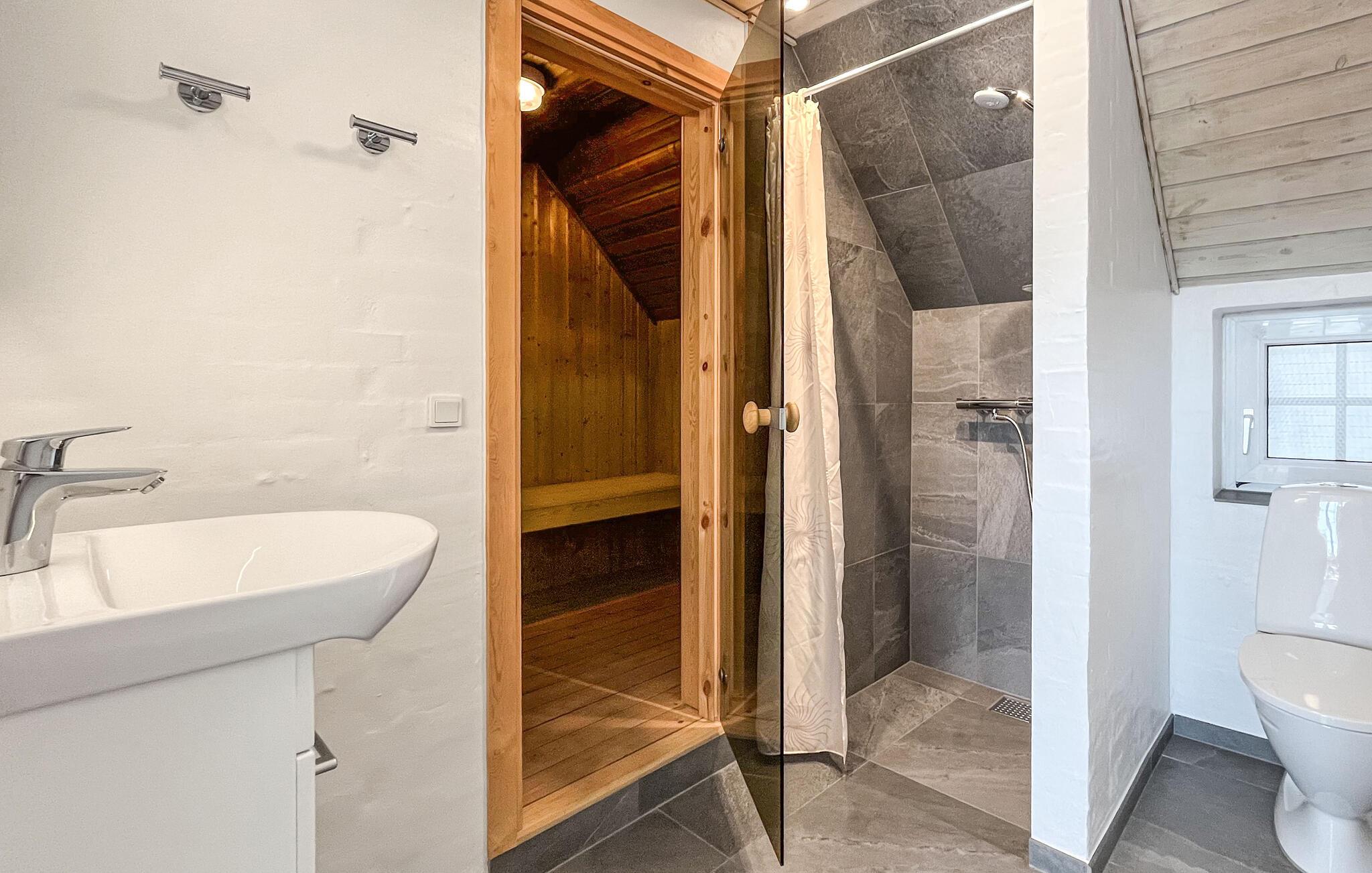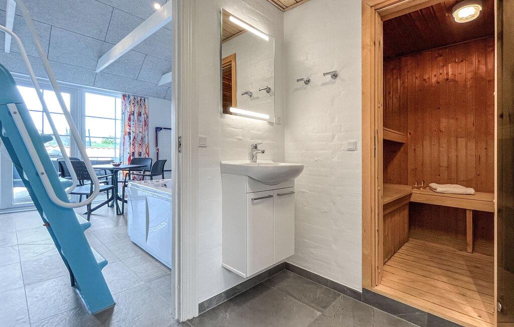 Husets centrale rum er den store spise- og opholdsstue, som er elegant indrettet med et stort og flot langbord til 14 personer og nydelige, klassiske sofamøbler. Fra stuen har I direkte adgang til den store poolafdeling og udgang til terrassen. Poolrummet er indrettet med en stor swimmingpool med modstrømsanlæg og rutsjebane til de mindste. Her finder I også spabadet og saunaen, som I vil sætte stor pris på, hvis musklerne skal masseres og opblødes efter en lang vandretur langs havet eller i klitterne.