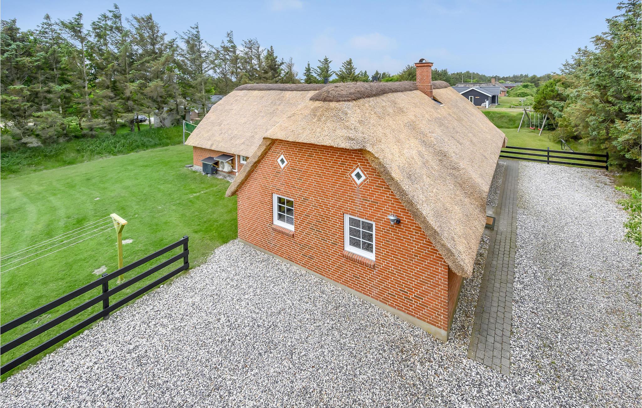 På en delvist lukket klitgrund tæt ved Vesterhavet og Ringkøbing Fjord ligger dette skønne sommerhus med plads og faciliteter til 14 personer.