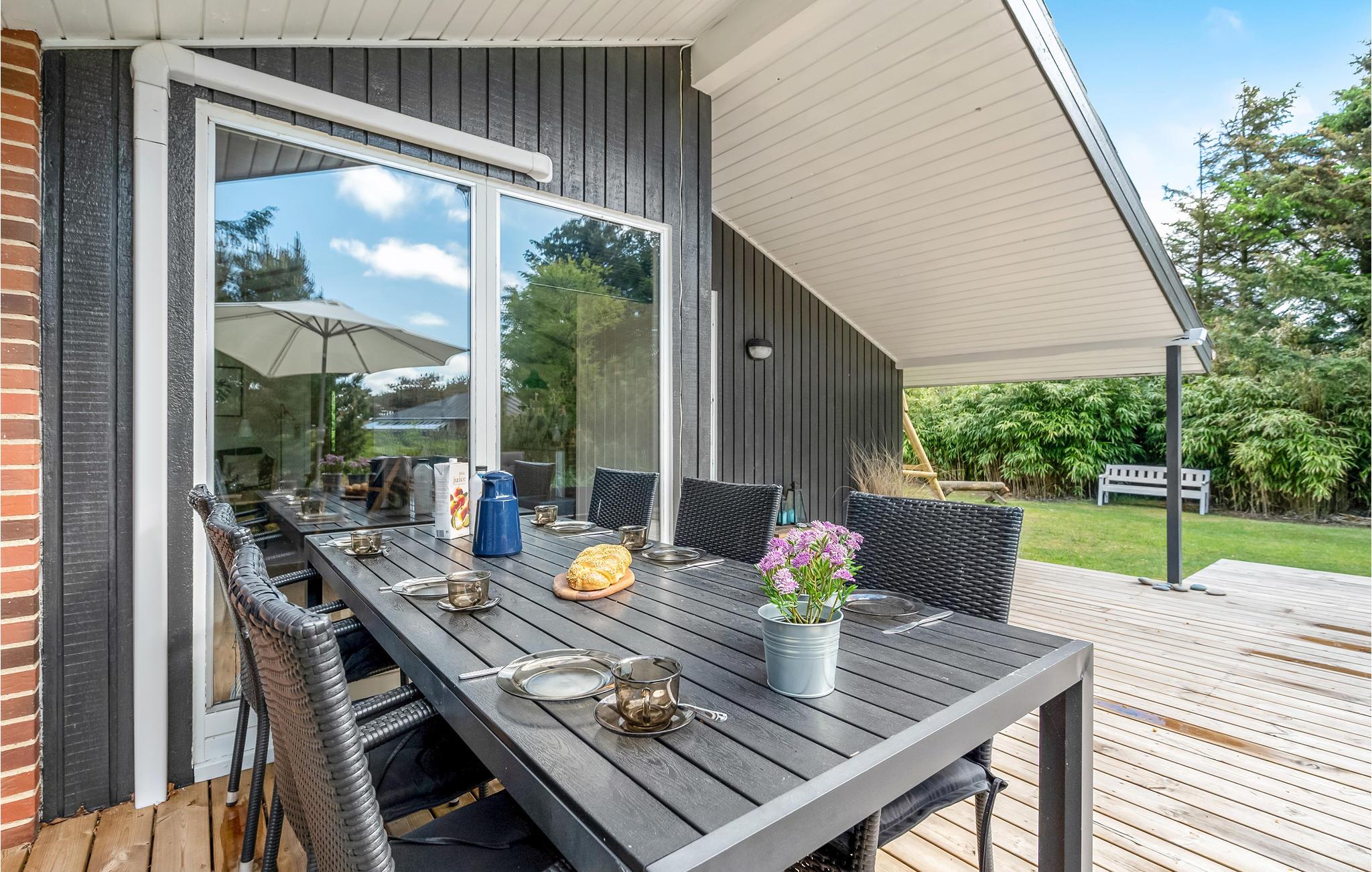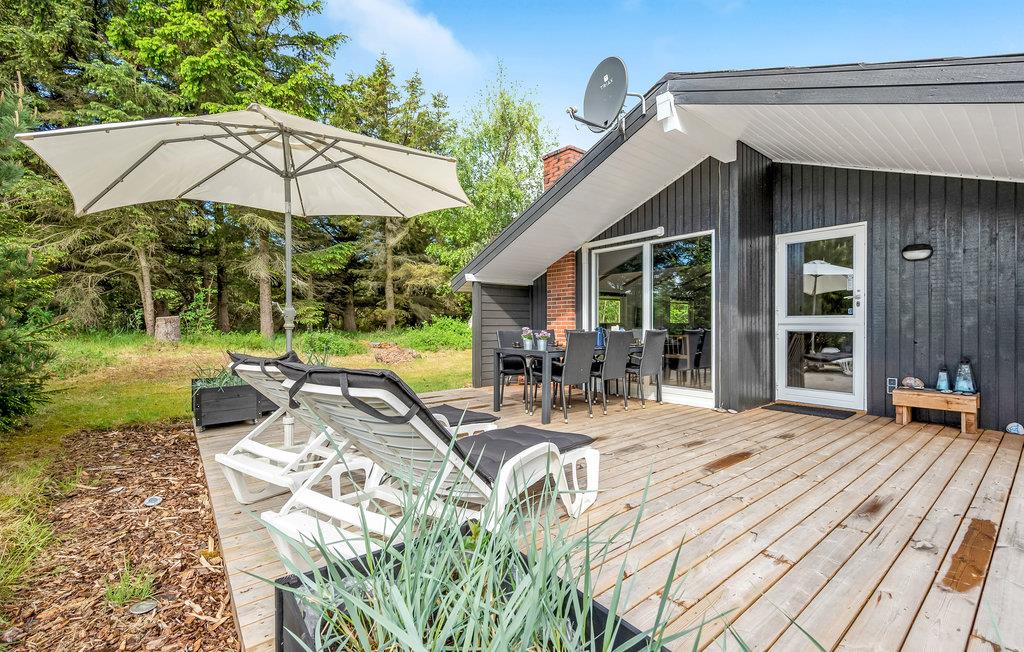 Hyggeligt feriehus nær Ringkøbing Fjord med sauna og solrig terrasse for en afslappende ferie.